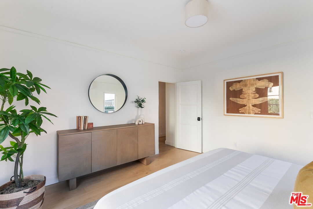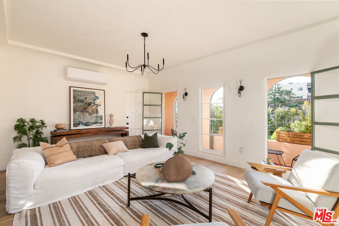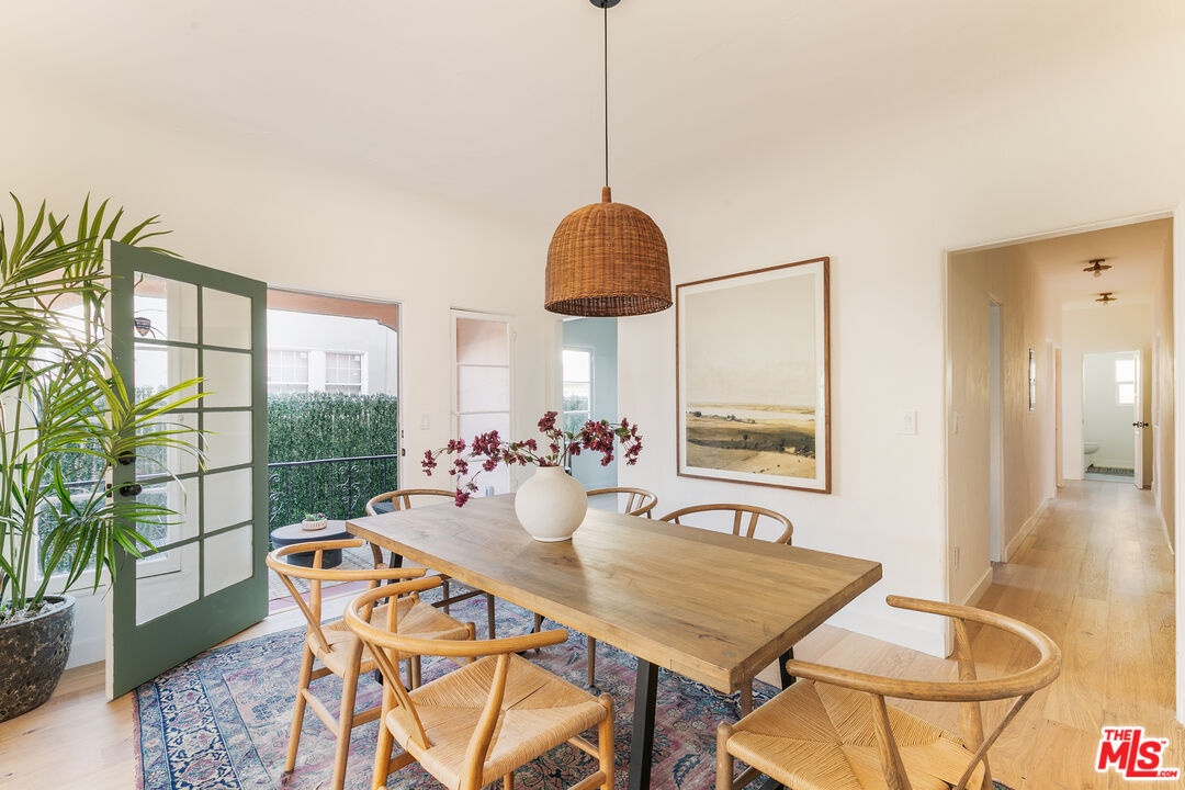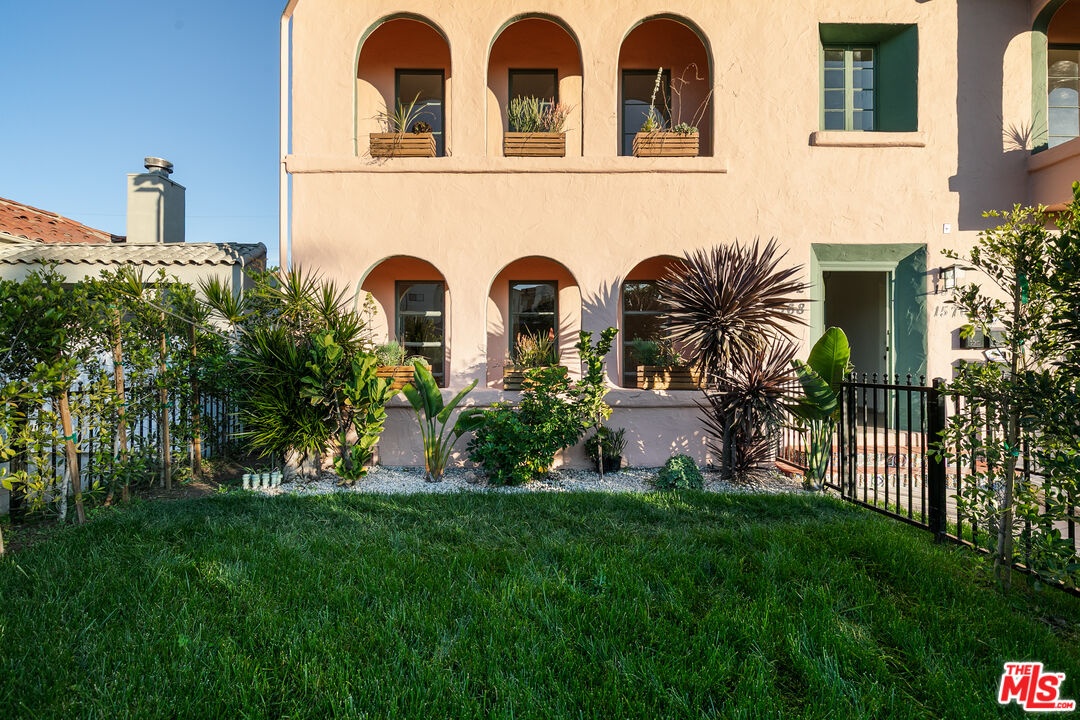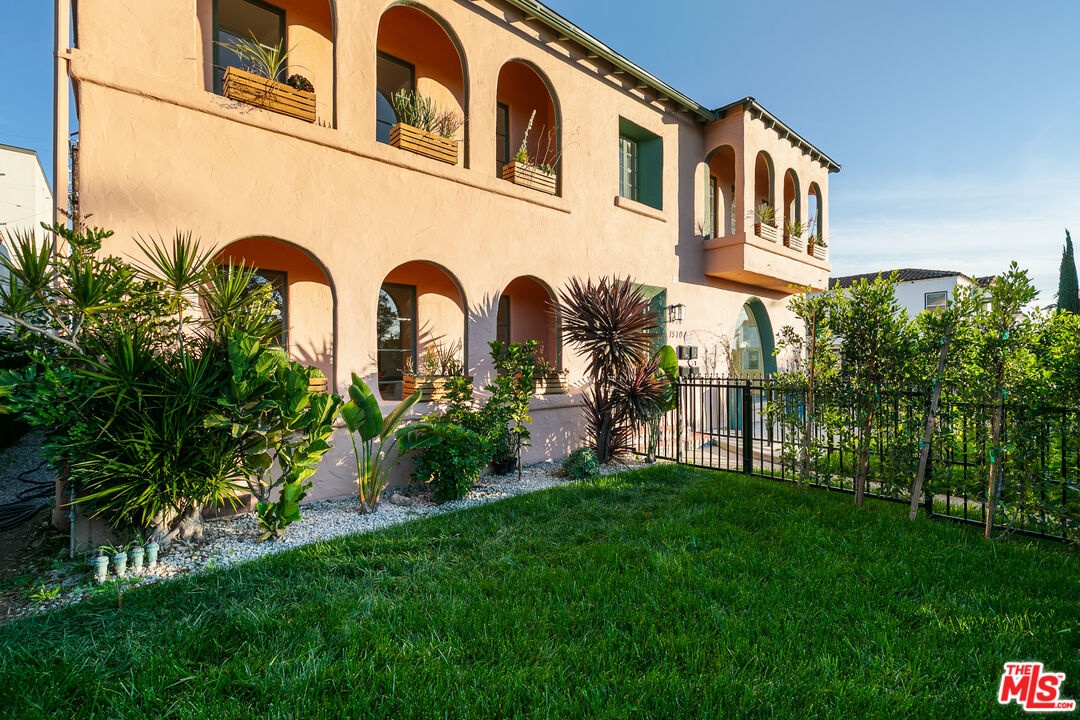 Discover the charm and grace of this thoughtfully renovated Spanish Colonial Revival, ideally situated on a light-filled corner lot. This 2-bed, 2-bath residence blends timeless character with modern comfort in all the right ways. From the moment you arrive, the architecture enchants with its warm stucco exterior, French doors leading to two private patios, one off the living room and the other off the dining room, and a hedged-in front yard that belongs exclusively to the unit, offering exceptional privacy and outdoor living. Inside, the sun-drenched layout is rich with historic detailing and generous scale. The living room flows into the dining room, while the kitchen features ample cabinetry, and a separate pantry/mud room that provides abundant storage and everyday functionality. Both bathrooms have been tastefully updated with finishes that elevate the space without overshadowing its heritage. System upgrades include HVAC, a new roof, and permitted updates to electrical, plumbing, and foundation providing peace of mind and lasting value. Secure parking is included, and the location in Faircrest Heights recognized as one of the "10 Best Districts You've Never Heard Of" by both Los Angeles Magazine and Business Insider offers historic architecture, vibrant community life, and central access to Beverly Hills, The Grove, Cedars-Sinai, La Cienega Park, and some of LA's best dining and shopping. This is a rare opportunity to own a piece of Los Angeles history restored with intention and designed to inspire.