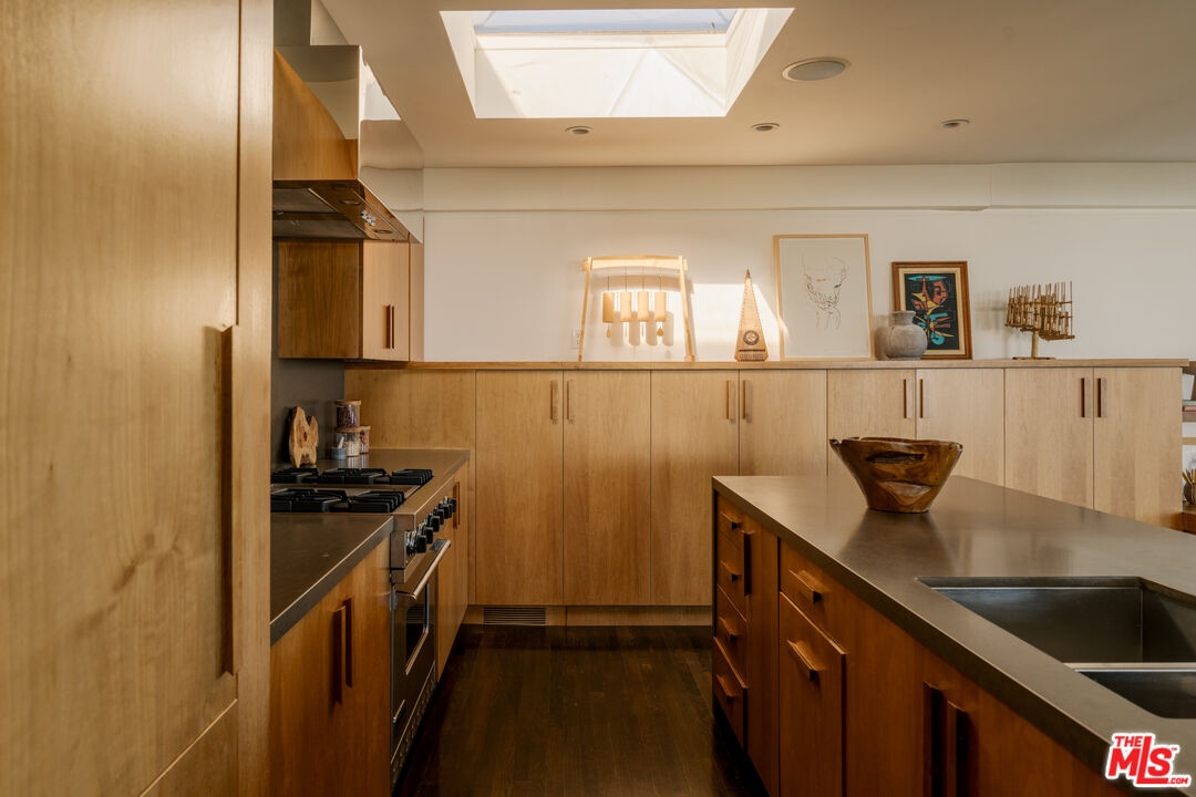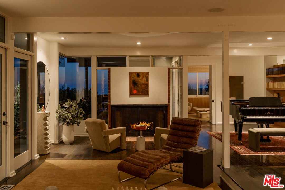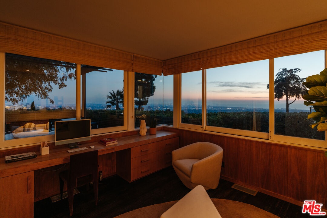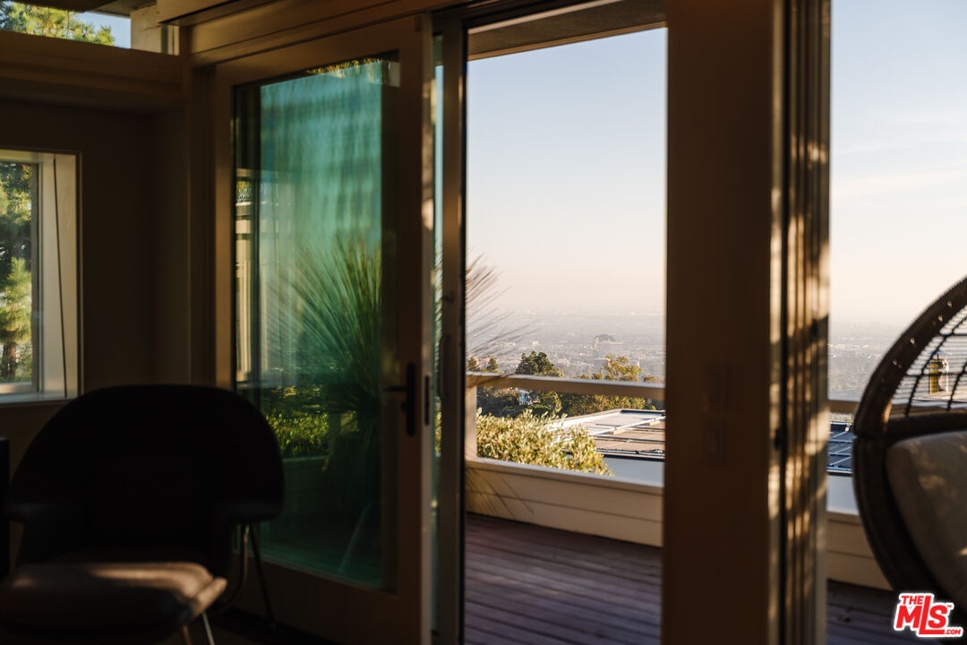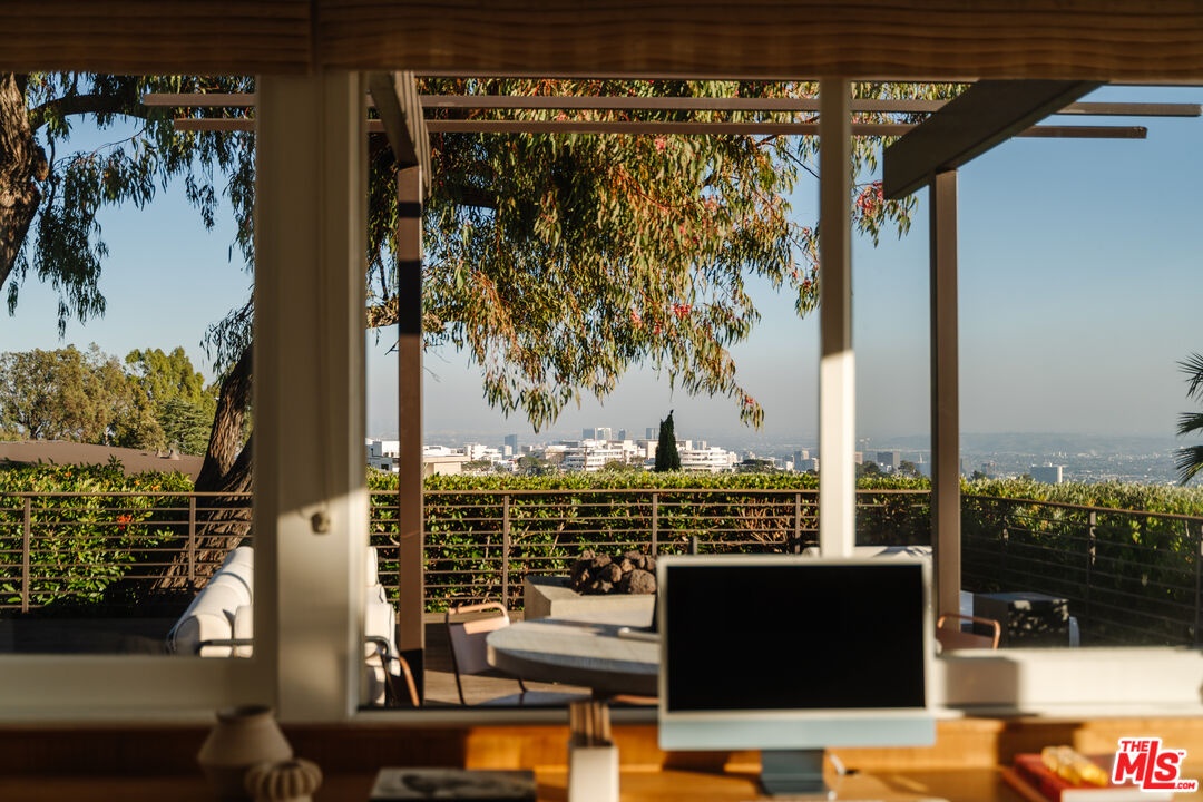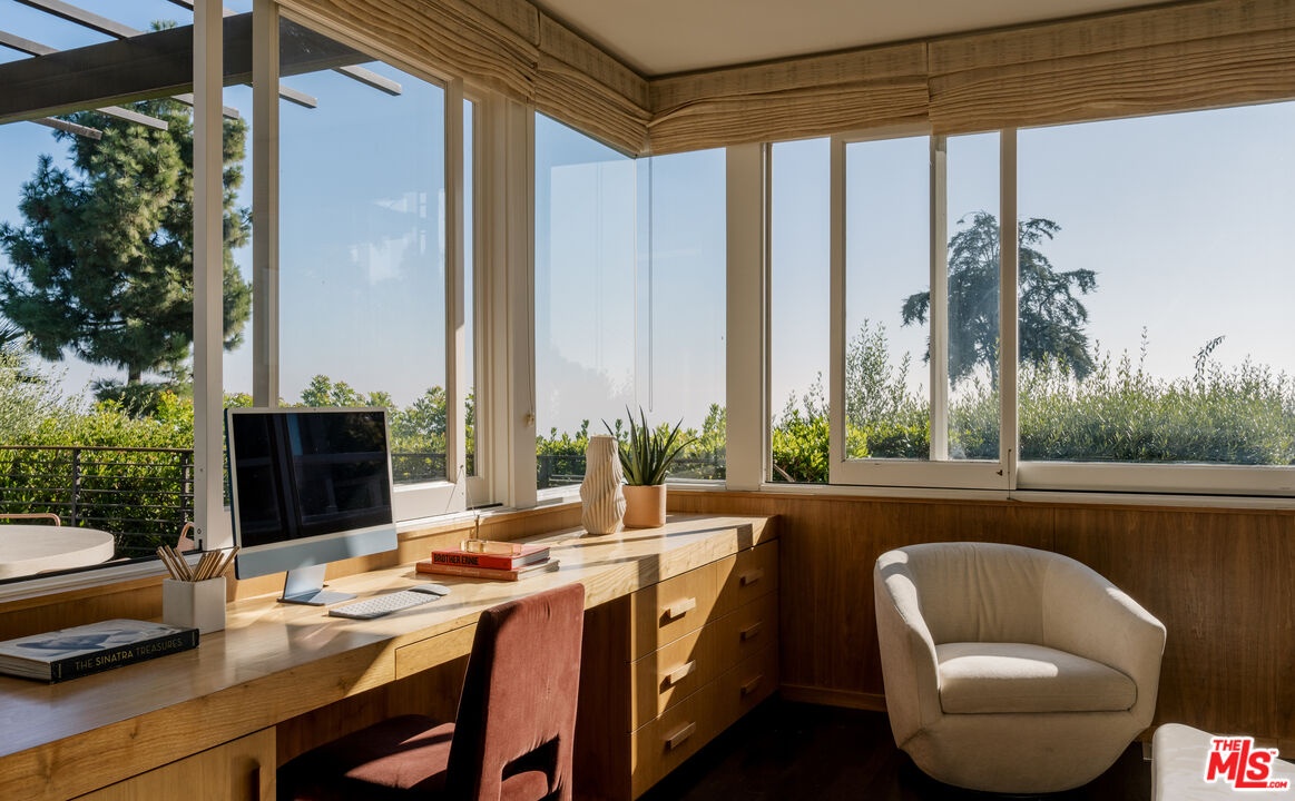 Perched in the architectural enclave of Crestwood Hills, this reimagined Mid-Century Modern sanctuary captures sweeping ocean, city, and mountain vistas from nearly every vantage point. Designed for those who value privacy, the home sits discreetly tucked away from the street, welcoming you into an airy open floor plan where walls of glass immediately frame the dramatic panorama beyond. Thoughtfully remodeled with sophistication and attention to detail, the residence blends timeless mid-century lines with contemporary refinement. The main living spaces transition effortlessly from the entry to the office/third bedroom and into the primary suitecomplete with its own balconycreating a sense of seamless flow anchored by natural light and captivating scenery. Just off the entry, a secondary bedroom is bathed in light from multiple exposures and enjoys serene views of a water feature and mature landscaping just beyond the sliding window, complemented by an additional upper window and an elegant en-suite bathroom. A true indoor-outdoor experience defines the home: French doors and expansive sliders open to view terraces ideal for entertaining or unwinding above the city lights. Unobstructed glass corners dissolve the boundary between interior and landscape, creating the sensation of reaching out and touching the horizon. Each of the three bedrooms and three stylishly updated baths reflects quality craftsmanship and a curated design sensibility. Moments above Sunset Boulevard and just minutes to Brentwood Village, the shops on San Vicente, and the iconic Brentwood Country Mart, this residence delivers a rare combination of architectural pedigree, modern comfort, and unmatched convenience. A refined retreat with unforgettable views, this is Crestwood Hills living at its most inspired.