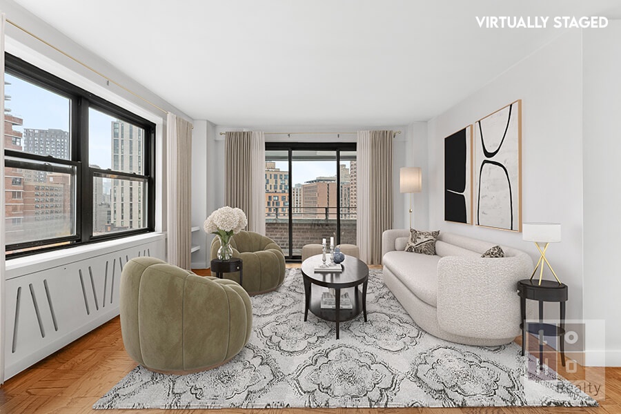 Bright, airy, and beautifully positioned in Seward Park, this one-bedroom home with a private balcony offers the perfect blend of comfort, space, and iconic New York views. The expansive living room—framed by six windows—enjoys dual north and west exposures, filling the space with natural light and showcasing stunning vistas of both the Empire State Building and the Freedom Tower.