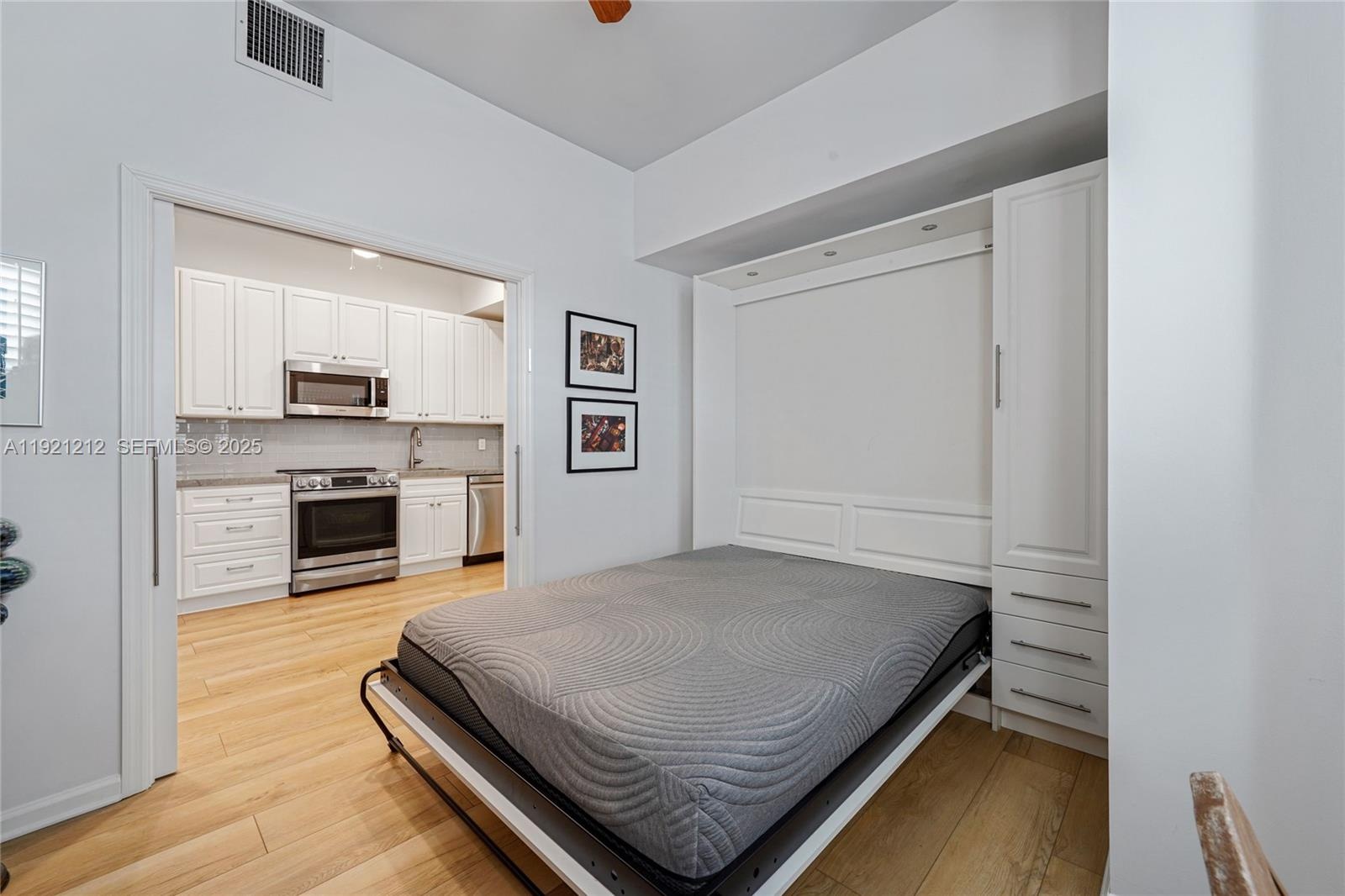 The open-concept kitchen features stainless-steel Bosch and LG appliances, elegant stone countertops, and deep, plentiful cabinetry, perfect for both everyday living and entertaining. Enjoy Art Deco–inspired bathrooms, crown moldings, and large custom closets throughout. Additional features include a private balcony, private secured parking, secured lobby entrance, and a private service entrance. The building has successfully passed its structural integrity inspection, with no special assessments pending. All routine building maintenance is fully funded.