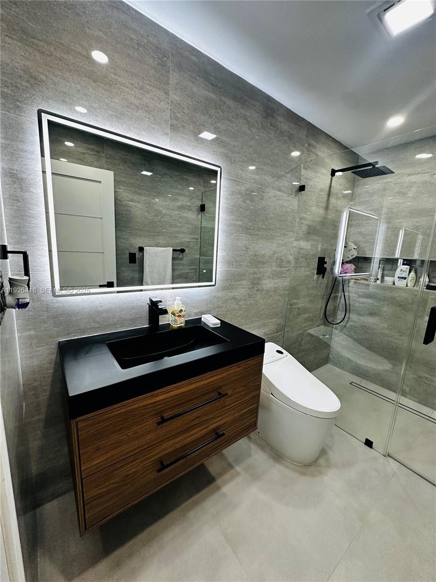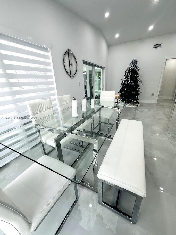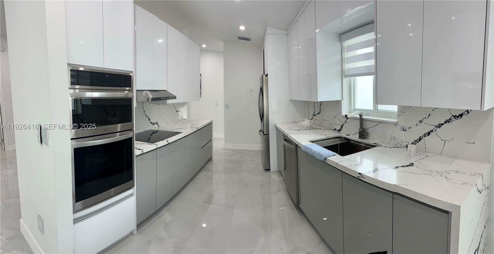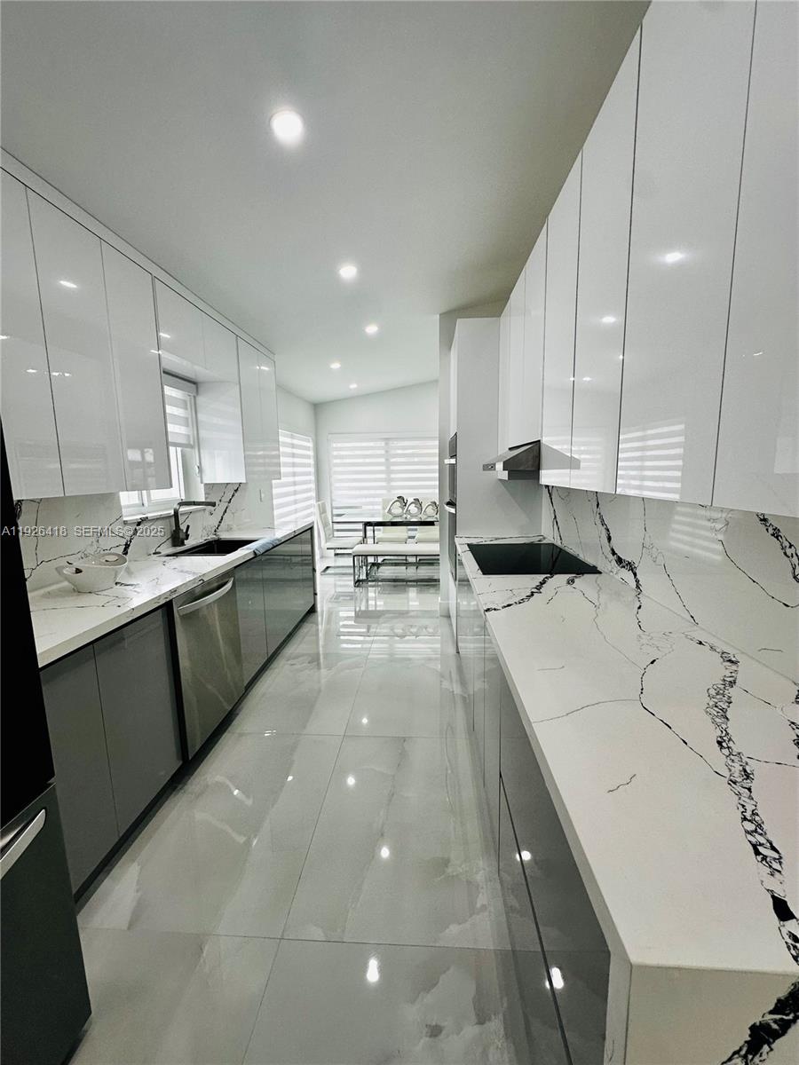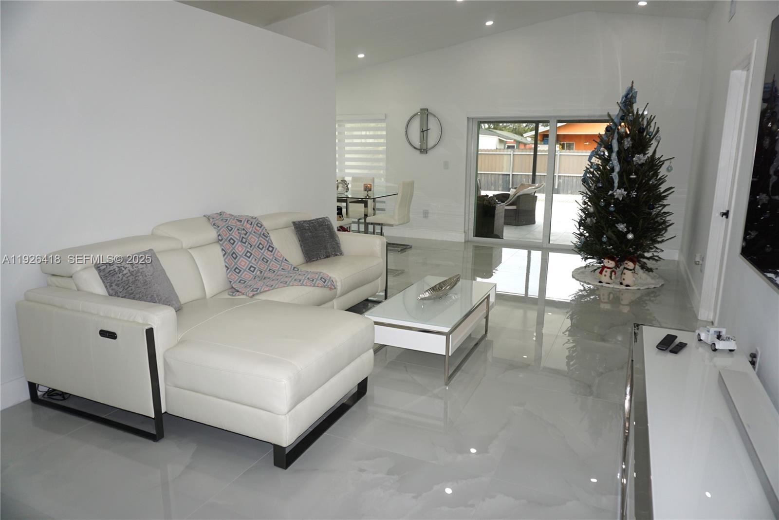 Discover this gorgeous home offering modern finishes, open concept living, and exceptional value; meticulously upgraded, every detail makes it a truly move-in ready opportunity. This is "a must-see" for buyers seeking modern style and outstanding quality features in a completely remodeled home! Featuring brand new ceramic flooring, stylish kitchen with quartz countertops, wood cabinets with glossy finish, new appliances including cooktop and range hood. Both bathrooms have been fully remodeled with floor-to-ceiling porcelain tile, sleek modern wall-mounted vanities, intelligent toilets, and beautifully glazed showers for a luxurious spa-like feel. Combining modernity and elegance, outside the home also impresses with its new long-lasting concrete driveway, a wide left side hallway secured by a lovely aluminum gate, all hurricane impact windows and doors, and recently installed gutters. The exterior AC unit has been recently replaced. This property impresses at every turn. The interior has been decorated with motorized zebra blinds and smart rescinded lighting for convenient connection to a virtual assistant. The outdoor area is perfect for entertainment and relaxation with aluminum roofed terrace, a shed for storage and one additional exterior room with a toilet and pipes ready for a 3rd bathroom. Prime location with quick access to major commuter routes like US-1 and Turnpike, nearby to shopping, dining and groceries. Don't miss this opportunity, this gem won't last.