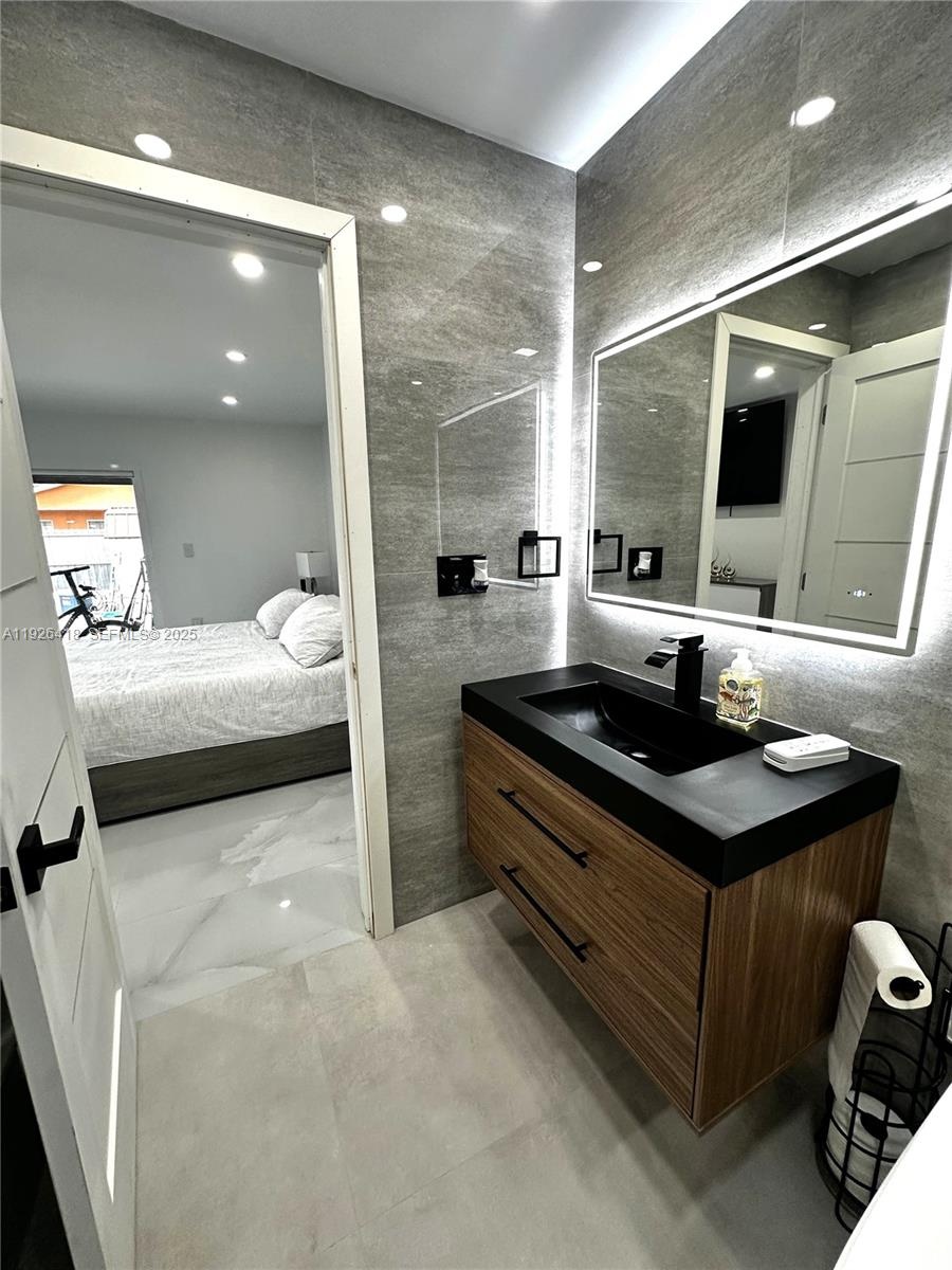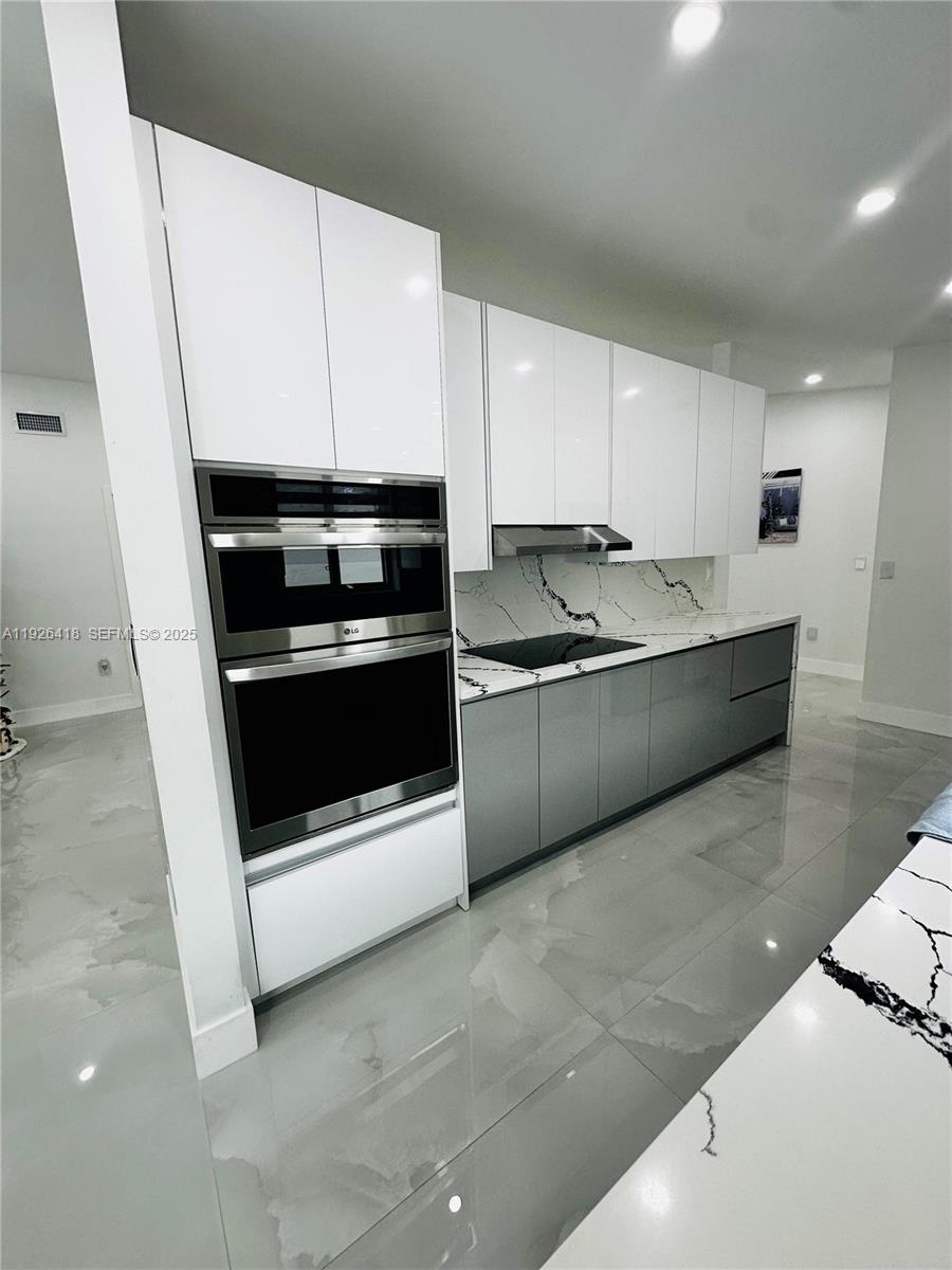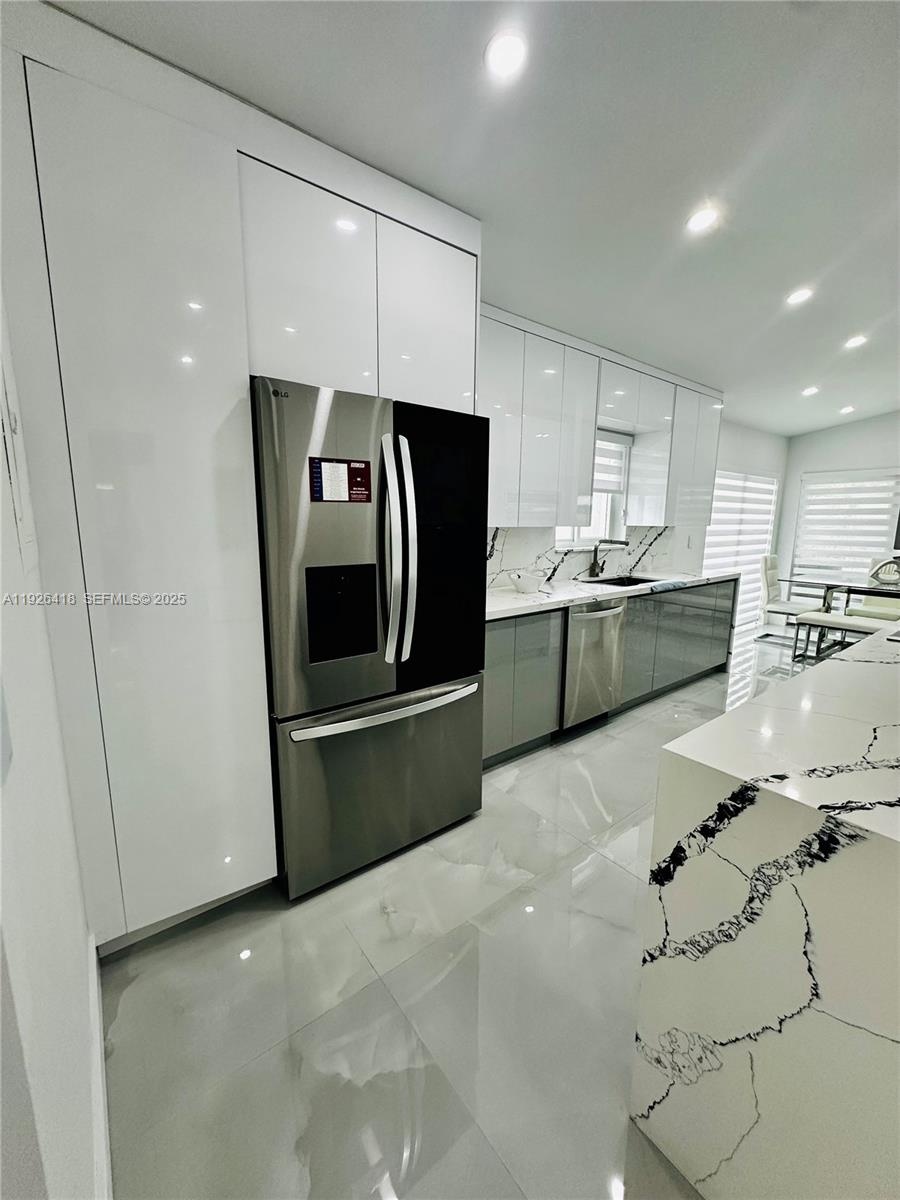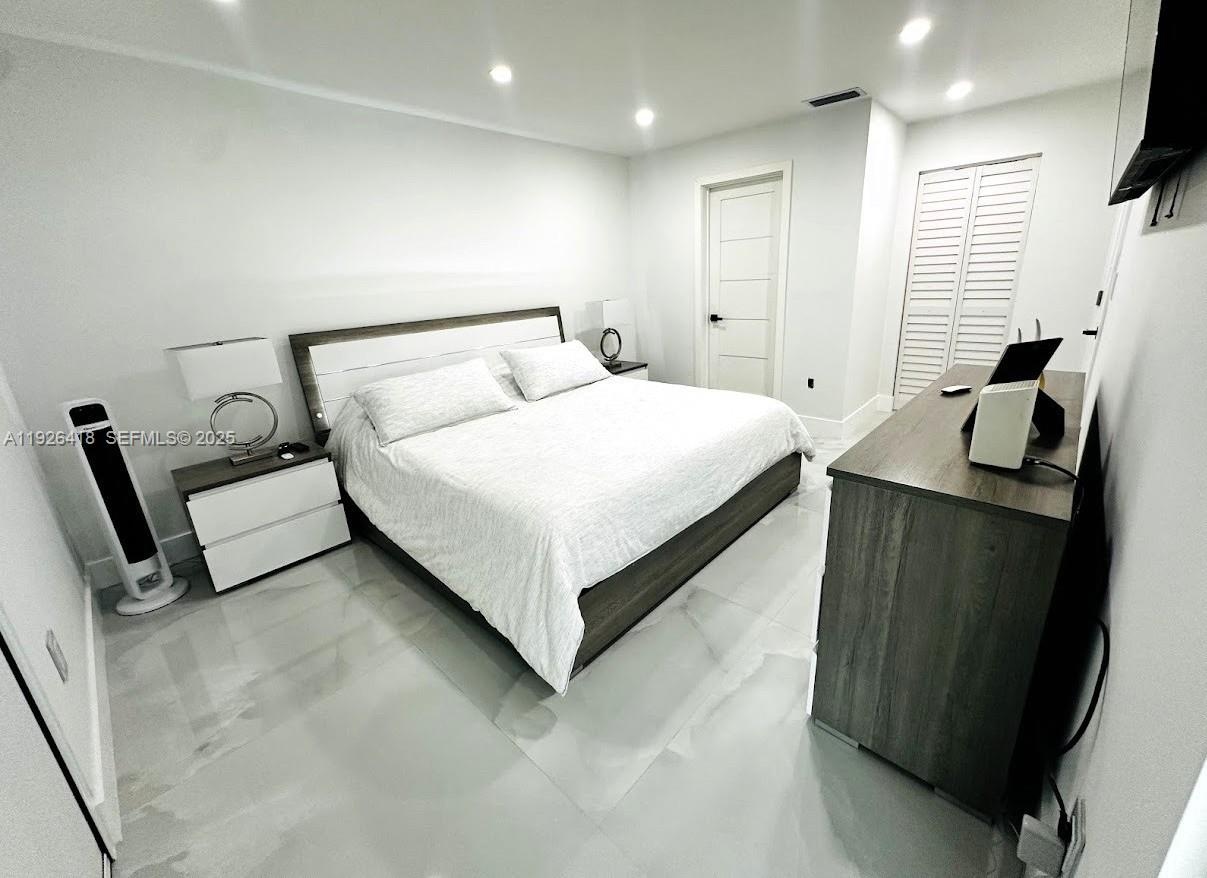 Discover this gorgeous home offering modern finishes, open concept living, and exceptional value; meticulously upgraded, every detail makes it a truly move-in ready opportunity. This is "a must-see" for buyers seeking modern style and outstanding quality features in a completely remodeled home! Featuring brand new ceramic flooring, stylish kitchen with quartz countertops, wood cabinets with glossy finish, new appliances including cooktop and range hood. Both bathrooms have been fully remodeled with floor-to-ceiling porcelain tile, sleek modern wall-mounted vanities, intelligent toilets, and beautifully glazed showers for a luxurious spa-like feel. Combining modernity and elegance, outside the home also impresses with its new long-lasting concrete driveway, a wide left side hallway secured by a lovely aluminum gate, all hurricane impact windows and doors, and recently installed gutters. The exterior AC unit has been recently replaced. This property impresses at every turn. The interior has been decorated with motorized zebra blinds and smart rescinded lighting for convenient connection to a virtual assistant. The outdoor area is perfect for entertainment and relaxation with aluminum roofed terrace, a shed for storage and one additional exterior room with a toilet and pipes ready for a 3rd bathroom. Prime location with quick access to major commuter routes like US-1 and Turnpike, nearby to shopping, dining and groceries. Don't miss this opportunity, this gem won't last.