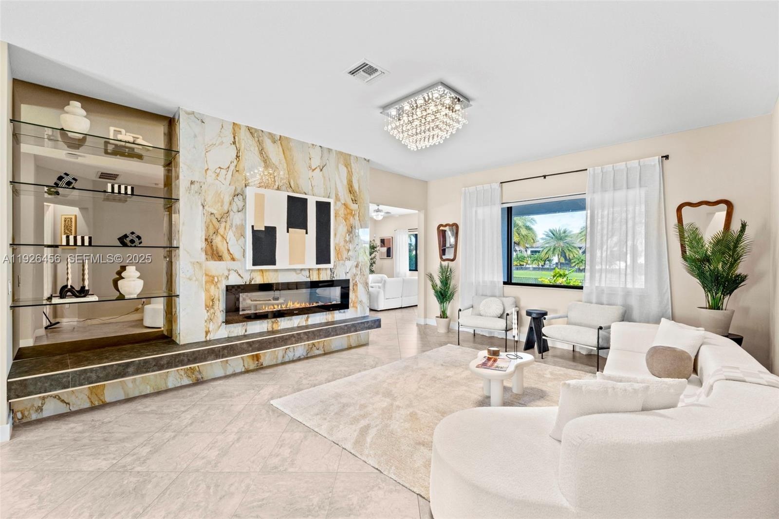 Experience elevated living in this rare Silver Stone model private pool and waterfront, perfectly nestled on one of Cascata’s most exclusive manned gated community. This expansive 5-bed, 5.5-bath residence offers exceptional versatility with a true Next Gen in-law suite, complete with a private entrance, features a kitchenette, living area, 1 bed, 1 bath, and its own separate private laundry stackable washer and dryer—ideal for extended family or guests. Step inside to an open-concept layout highlighted by a chef’s kitchen with premium stainless steel appliances, oversized island, and seamless flow into the main living space. Smart home upgrades features security system and cameras, and electric shades add modern convenience throughout. The ground-floor primary suite features a spa-inspired bathroom with double vanities, separate his and hers custom design built-in walk-in closets, and serene views of the backyard. This home is fully equipped with impact windows, a spacious 2-car garage with extra large driveway, and high-end finishes at every turn. Step outside to your private resort-style oasis—where everyday living feels like a getaway. The Dream Backyard with over three hundred thousand in upgrades showcases, a heated pool, spa, tranquil waterfall feature, and an impressive custom summer kitchen complete with grill, griddle, refrigerator,dual burners, sink, storage, pergola, and remote-controlled screens. This home is an intimate relaxation and unforgettable entertaining.