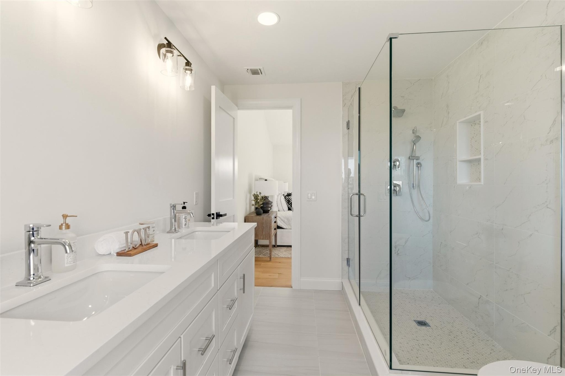 Brand new and just completed, this ultra-custom turnkey masterpiece represents the quintessential North Fork lifestyle. A masterfully crafted estate home uniting rustic authenticity with modern ultra-luxury on an exceptionally secluded, oversized mega lot. Tucked back 800 ft. from the road and immersed in nature with a canopy of mature trees and native plants, you will feel world’s away – yet you are right down the block from the famous Grana restaurant, numerous farmers markets, and world-class wineries! The home is dripping with luxury appointments: Arctic White Hardie plank exterior, black Pella Lifestyle windows, a dramatic open-concept, modern colonial first floor plan with 6-inch-wide plank white oak floors, a bespoke chef's level kitchen, a Cambridge quartz island with designer 2.5” mitered edge paired with a gorgeous full-height backsplash and double-stacked premium cabinetry. The second floor features a spacious primary bedroom suite with a magnificent spa bath as well as large secondary bedrooms, each with a walk-in closet. The massive lower level, featuring 10 ft. ceiling height, chic plank flooring, an exterior entrance, and three egress windows, is ready for your dream space idea. The property's vast grounds are also extraordinary, with a 20’ x 40’ heated saltwater pool, a custom-designed masonry patio and grilling station, and a built-in masonry fire pit, all of which overlook countless acres of open space. Available for immediate occupancy or secure the home now and close in the Spring, your choice. Will not last!