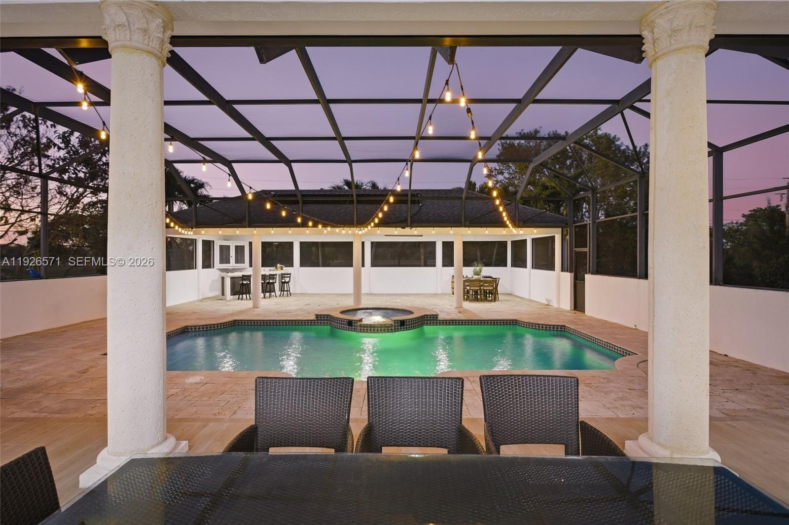 Outdoor living unfolds like a private resort. Enjoy a screened heated pool and jacuzzi, a spacious gazebo with full bar, and lush grounds enhanced by mature mango, avocado, and other fruit trees—a true sanctuary for those who appreciate nature and open space. Impact doors and windows provide peace of mind, while NO HOA ensures unmatched freedom and flexibility.