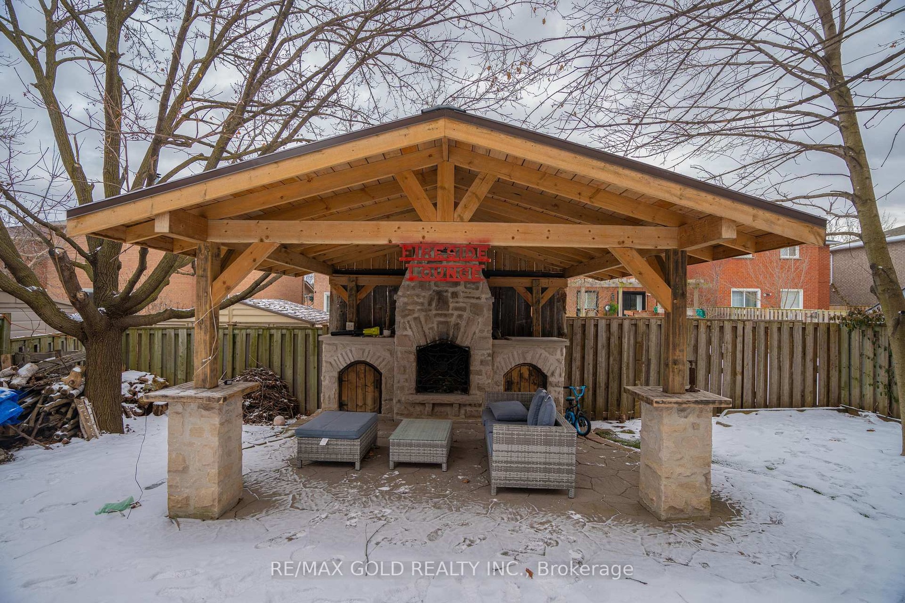 Beautiful 3 Bedroom and 3 Bathroom Family Home On A Quiet Cul-De Sac In Sought After Neighborhood. Walking Steps To Park and Heart Land Town Centre! Features A Custom Built Gazebo & Stone Fireplace For Memorable Gatherings in the Backyard. Open Concept. Bright & Spacious. Engineered Hardwood Throughout Main Floor. Master Bedroom with 4Pc Bath, Close To All Amenities, Schools, Public Transportation, Shopping, Hwy's And Many More..