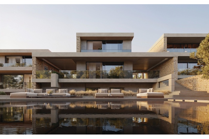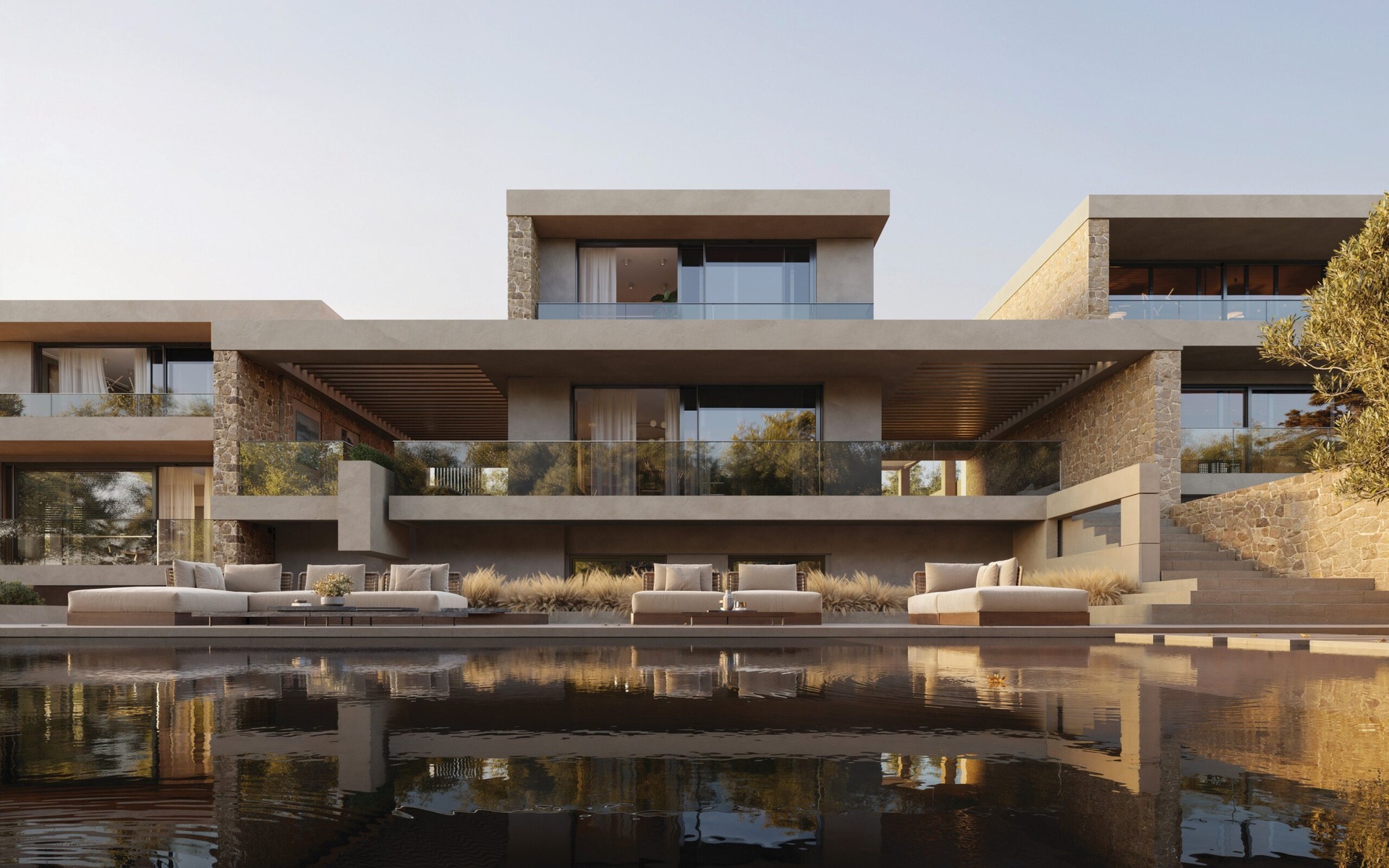 This prestigious complex comprises 15 luxury villas, each offering breathtaking sea and mountain views. Every villa features a private garden and