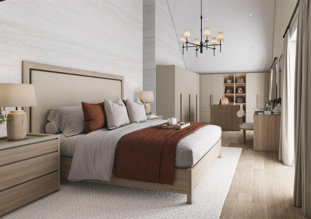 A showpiece master bedroom suite featuring a generous bedroom area, boutique-style dressing space and a beautifully finished en-suite