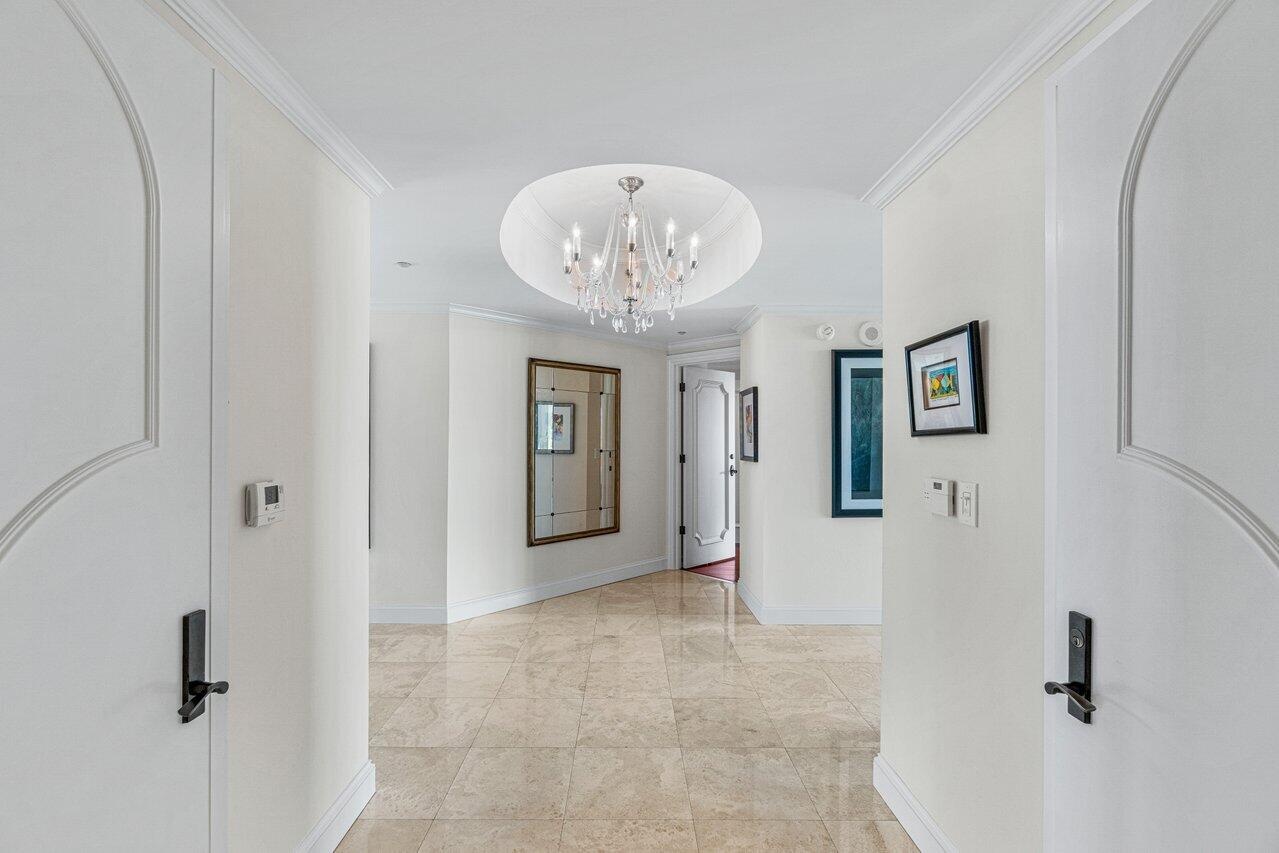 Step inside this light and bright Grand Siena model featuring 2 bedrooms and 2.5 baths with amazing sunrise and sunset views from 2 balconies. Elevator opens to your private foyer entrance, views are amazing , ocean and intracoastal with balconies to sit, relax and enjoy the Toscana Resort Lifestyle. Open Concept Kitchen to the dining room features a balcony with . views of the ocean ,3 resort style pools, award winning tropical landscaping, tennis courts. Living room and primary suite features a west balcony with views of the intracoastal . Marble tile , water filtration system. Amenities include 24 Hour security , valet , concierge, private beach pavilion, card room, party room, lounge, attendants at beach and pools providing chaises and water service. Toscana is a Resort Style Communit