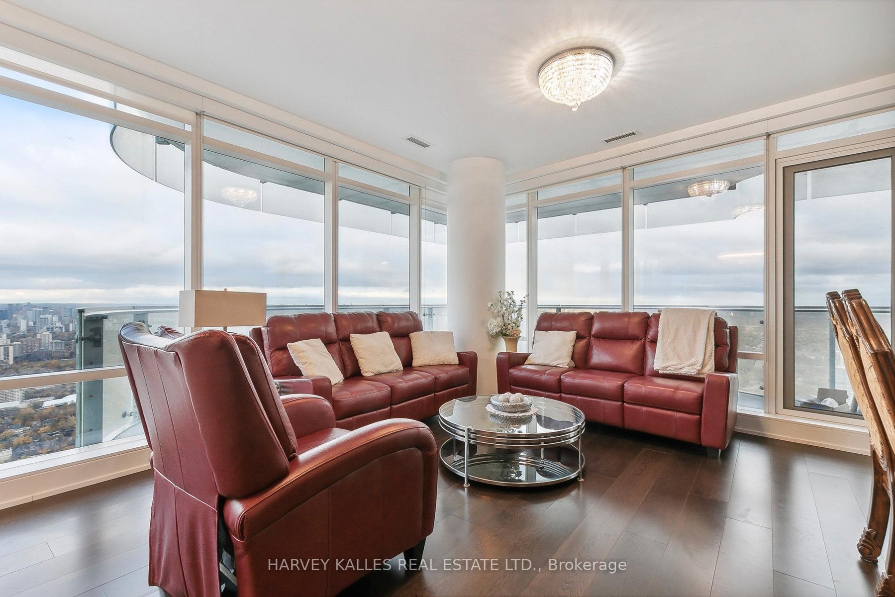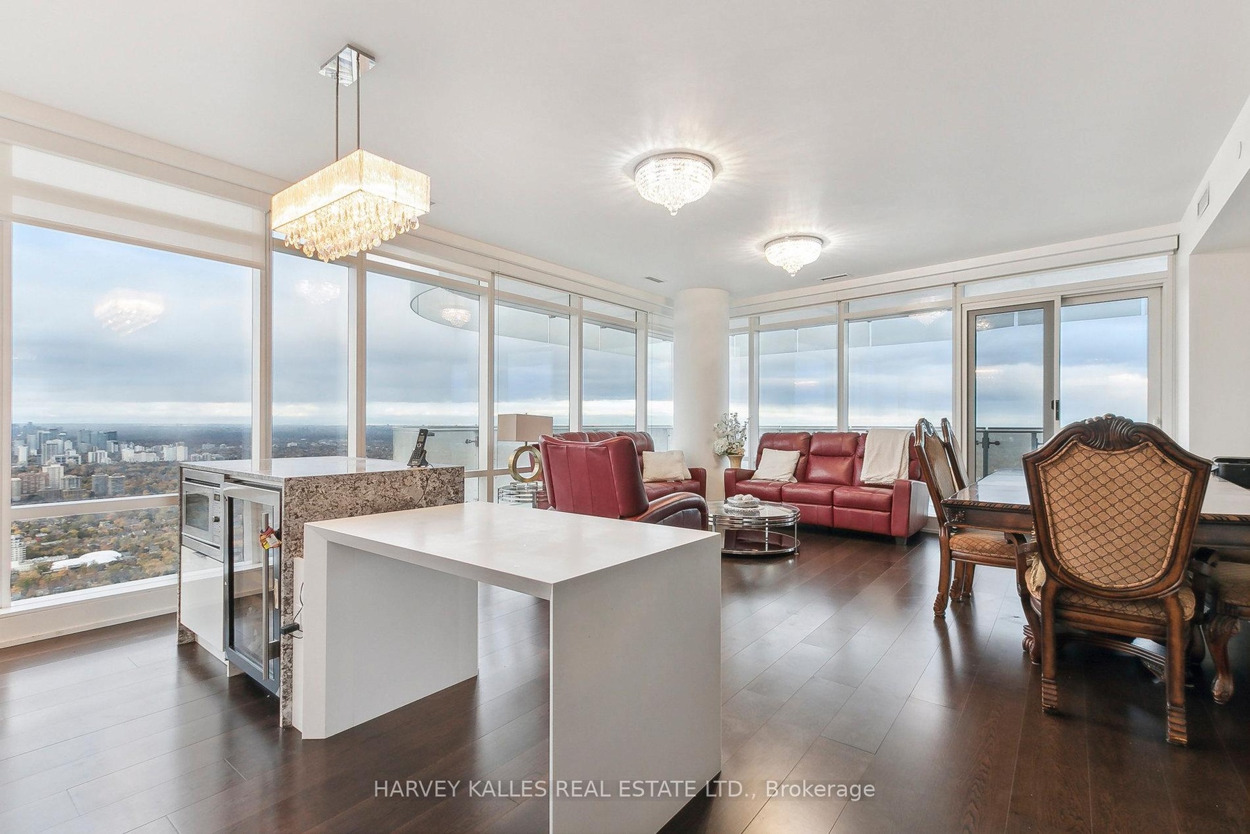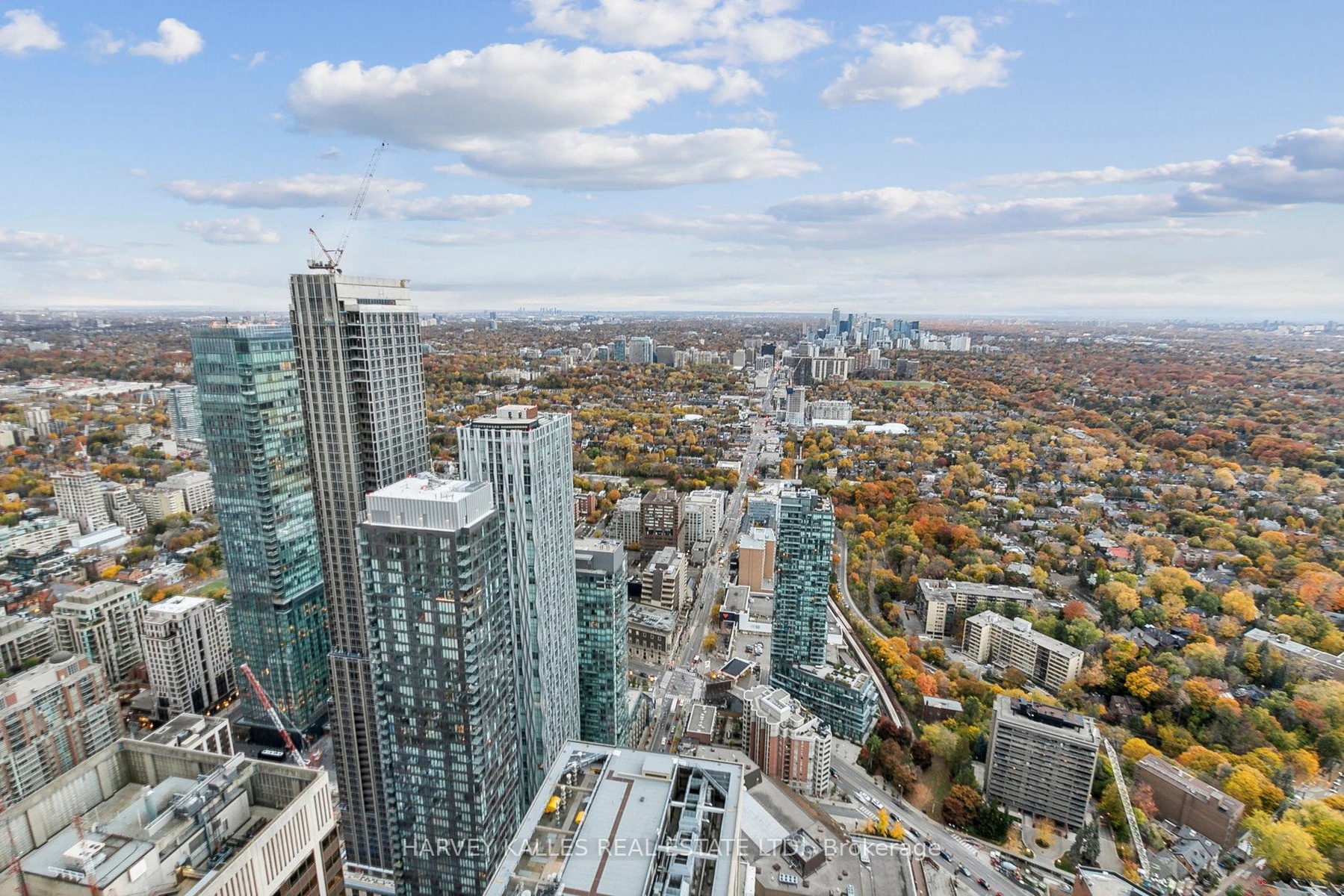 One Bloor Street East. The most iconic high end condominium in downtown Toronto. Grand 2+1 bedroom 3 bathroom corner residence on the 68th floor. **Partially furnished.(available unfurnished as well) 1440 square feet of luxurious living + massive wrap around balcony with breathtaking views of the City skyline and Lake Views. Direct access to Yonge/Bloor subway line. Many upgrades and custom cabinetry, hardwood floors, top of the line appliances, granite counters & more. Included 1 underground parking spot & 1 locker. **Partially furnished. Just move in!!!