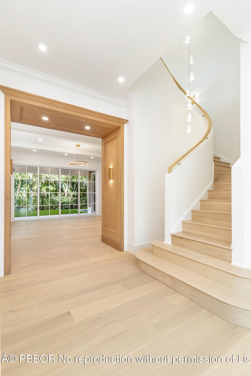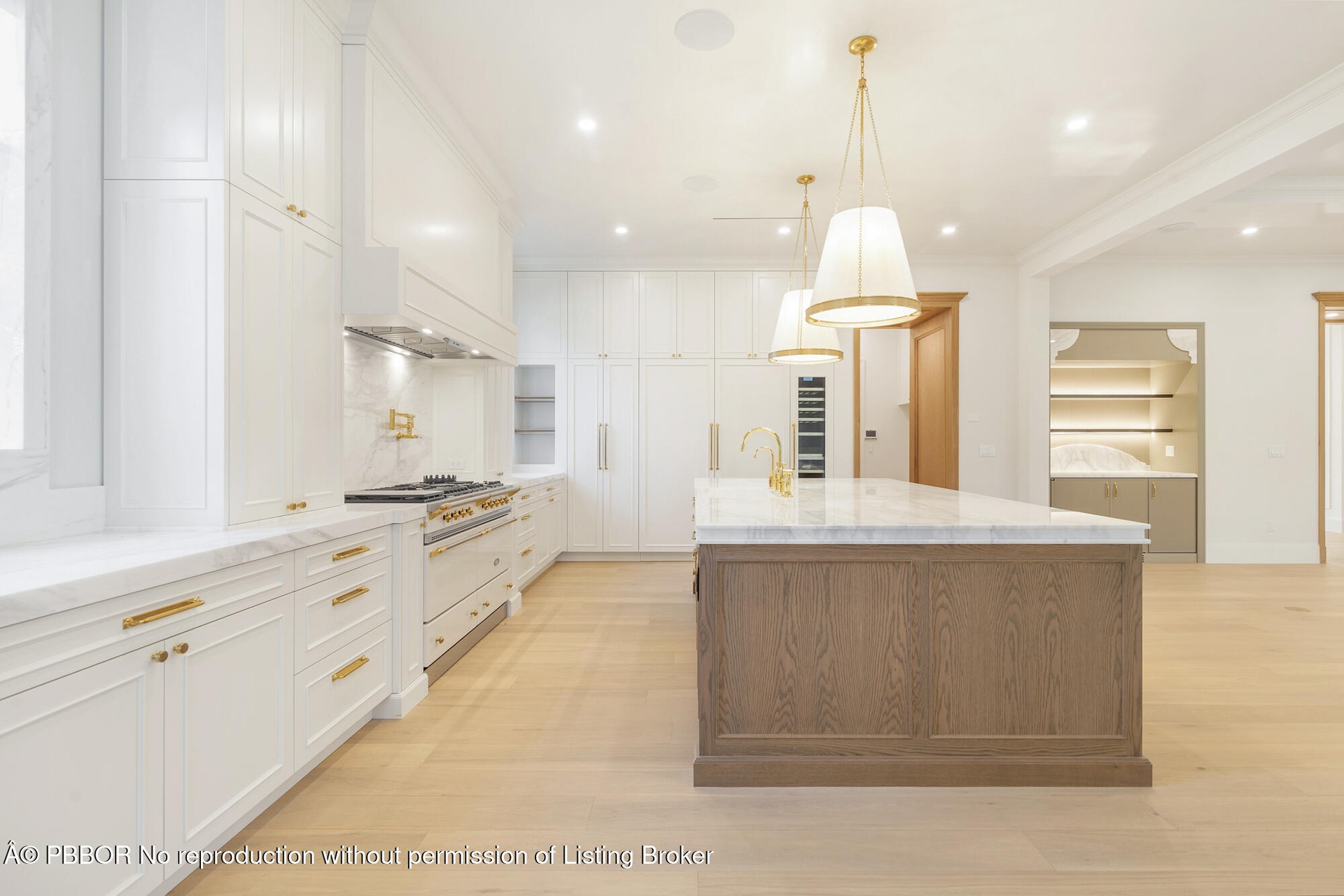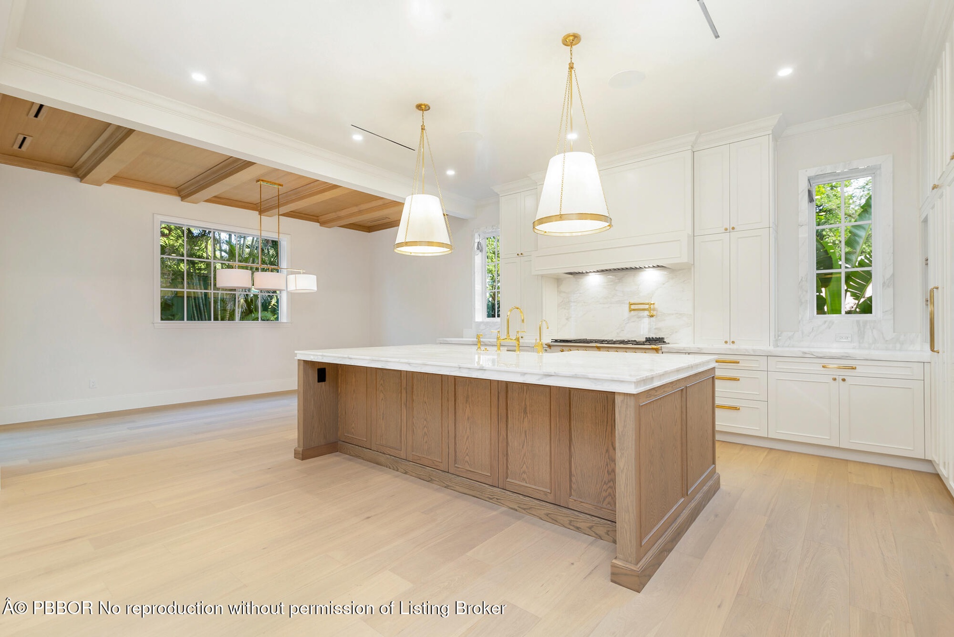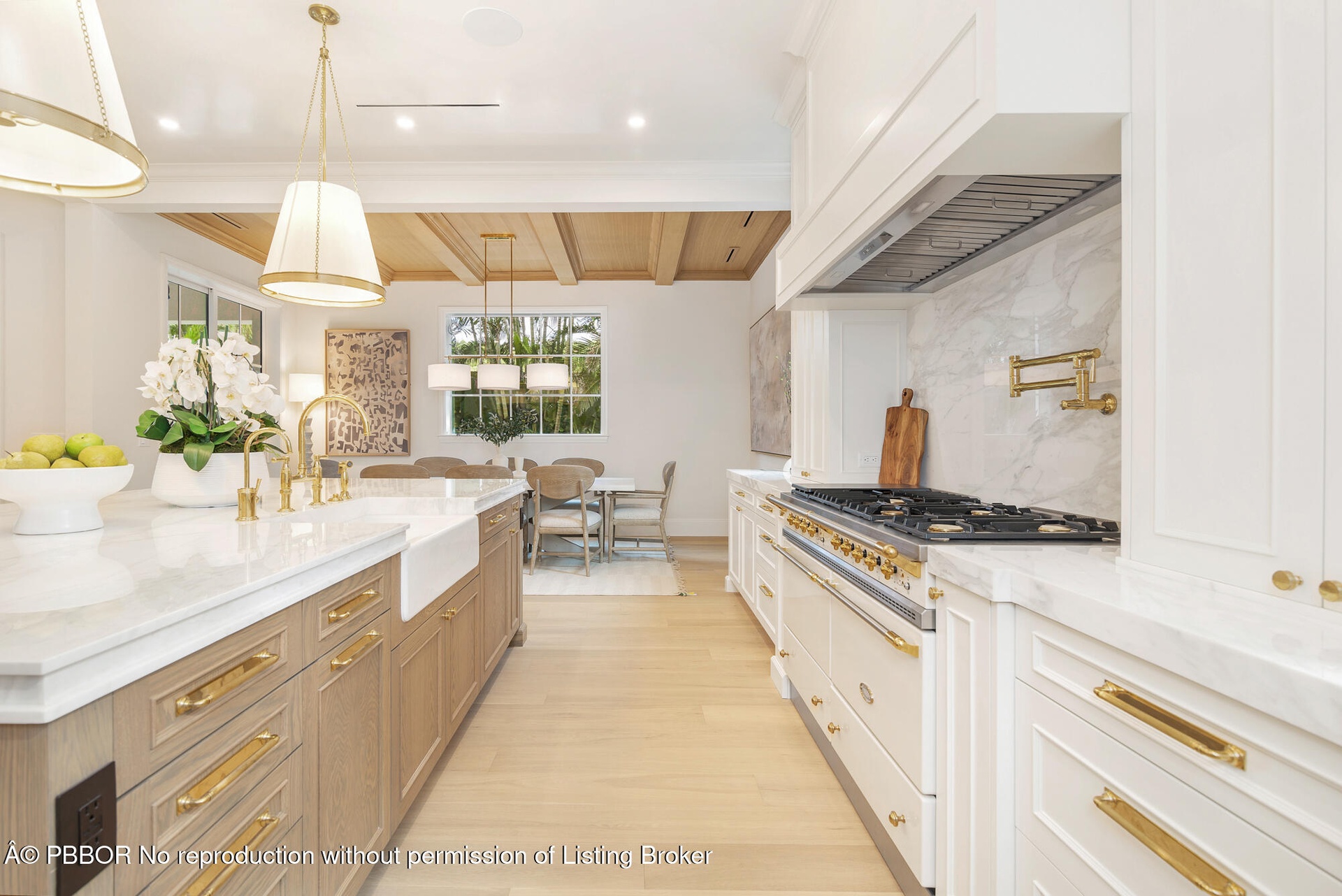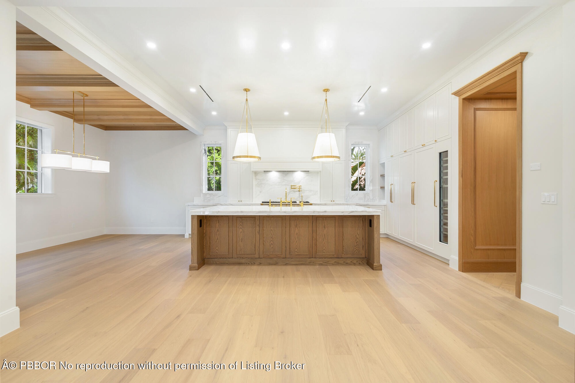Situated yards away from Flagler Drive and the Intracoastal Waterway rests this stunning new construction home. Featuring 5 bedrooms, 5 full bathrooms and 2 powder rooms, this 5,660 total square foot home was built and designed with extreme attention to detail. Walking in the home, your eyes immediately affix to the incredible millwork. Every inch of this home was designed for the most discerning buyer. The kitchen is a dream come true boasting marble countertops, custom made cabinets, Thermador appliances, a Lacanche Range and a butler's pantry with ample storage space. With a built-in back-lit bar and custom built in shelving, the open concept family/ living/ dining room is both cozy and luxurious.
