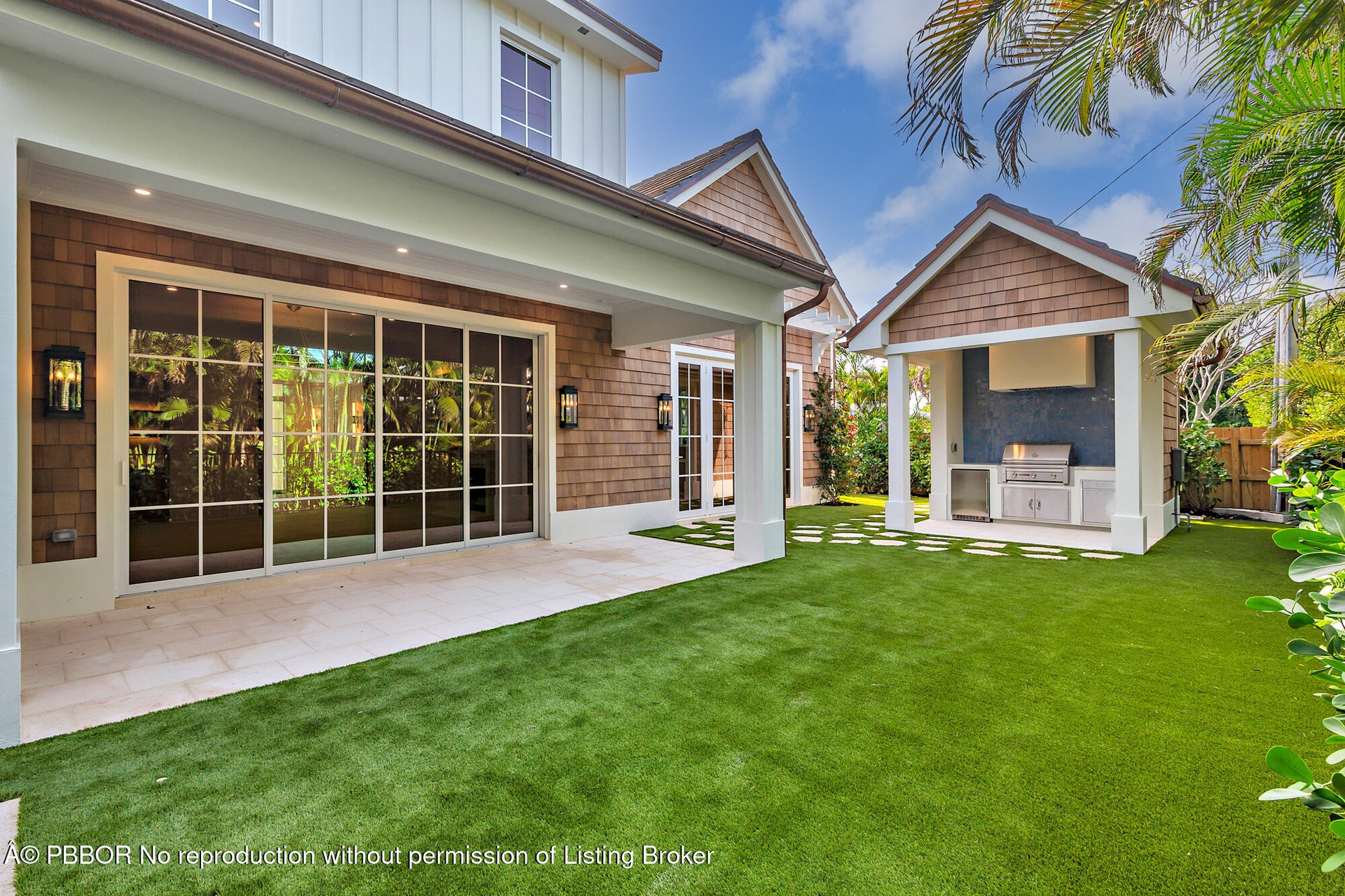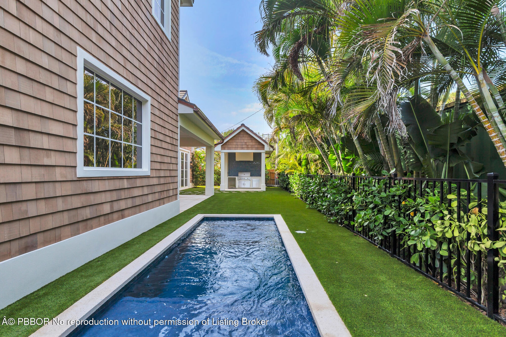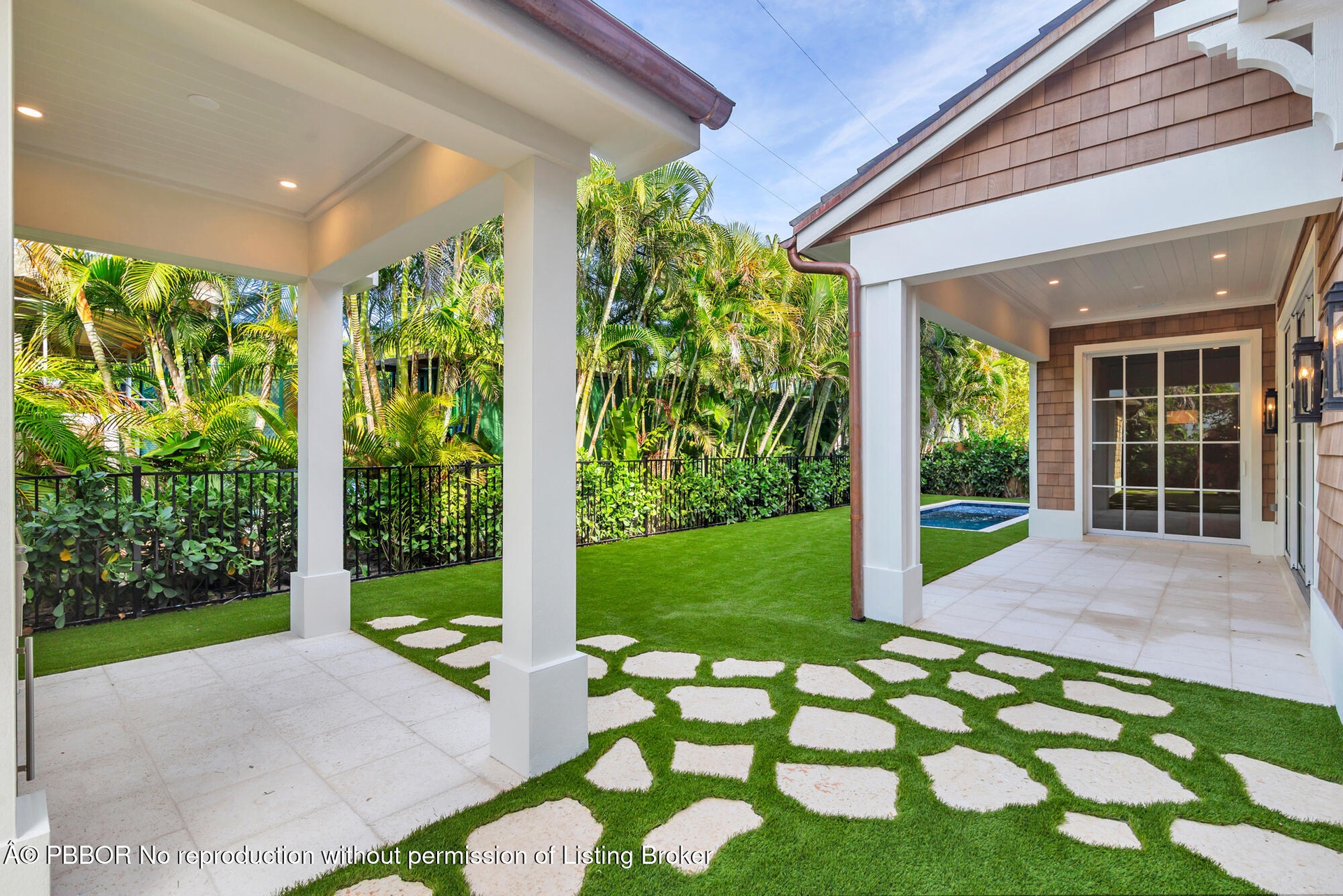 Step into your own private Florida oasis. This resort-style backyard is anchored by a sparkling pool framed by lush, mature landscaping for total privacy. A spacious covered loggia offers the perfect place to relax or entertain. The cabana provides an outdoor kitchen and a dedicated pool bath for convenience. Designed for year-round enjoyment, this outdoor retreat blends comfort, beauty, and coastal living at its finest.
