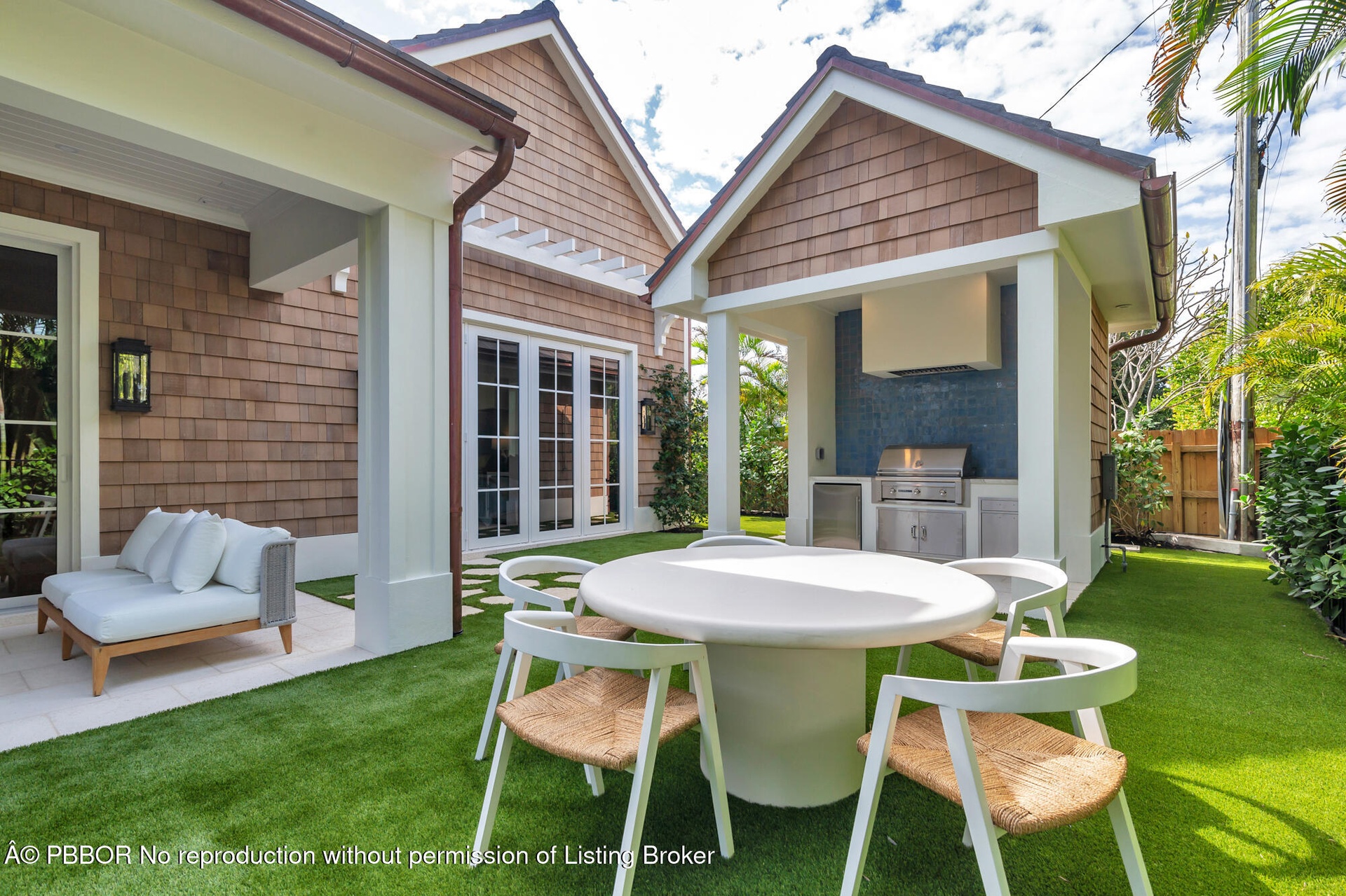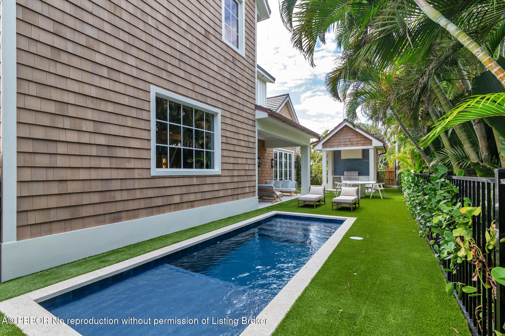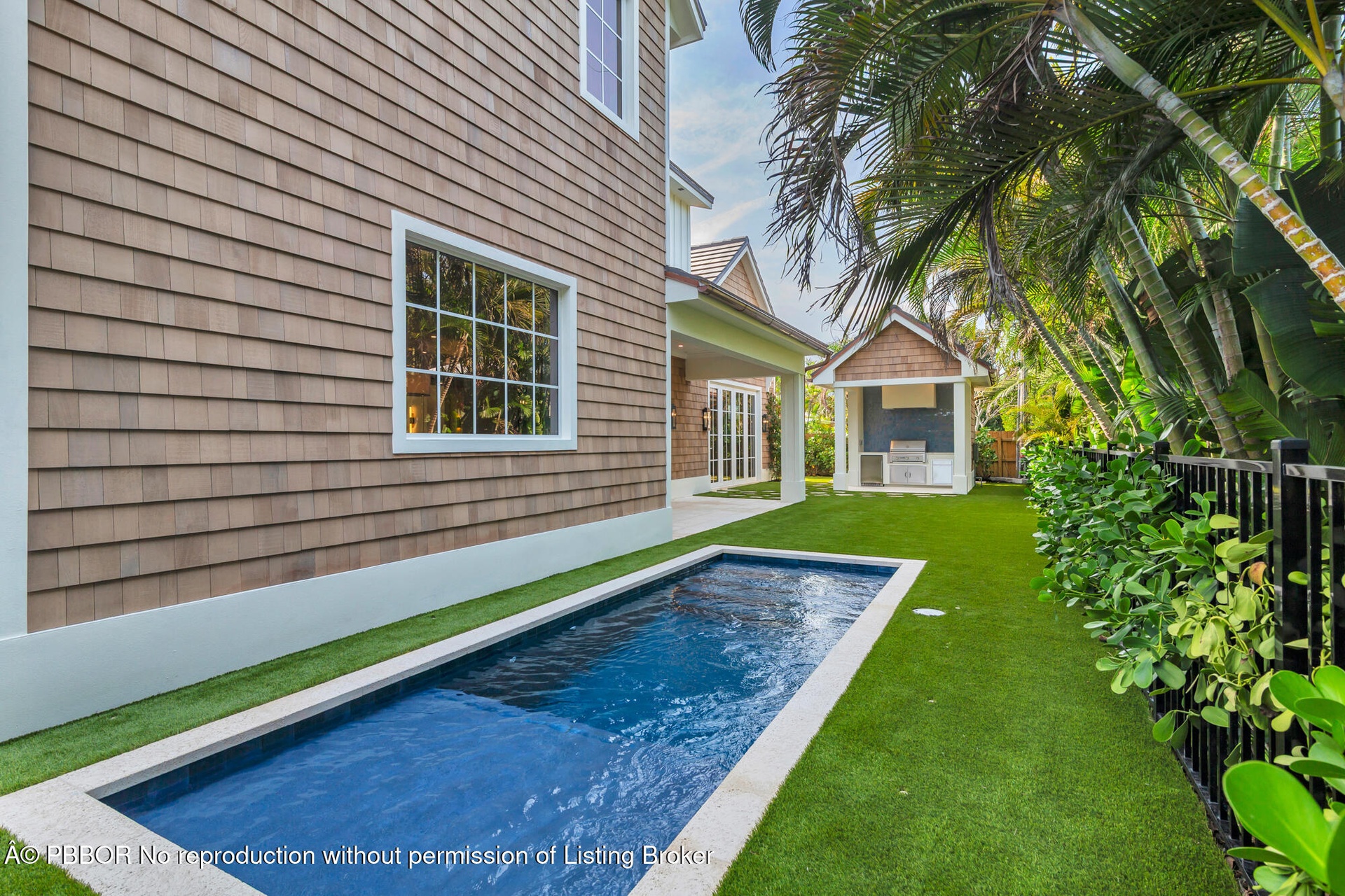 Step into your own private Florida oasis. This resort-style backyard is anchored by a sparkling pool framed by lush, mature landscaping for total privacy. A spacious covered loggia offers the perfect place to relax or entertain. The cabana provides an outdoor kitchen and a dedicated pool bath for convenience. Designed for year-round enjoyment, this outdoor retreat blends comfort, beauty, and coastal living at its finest.