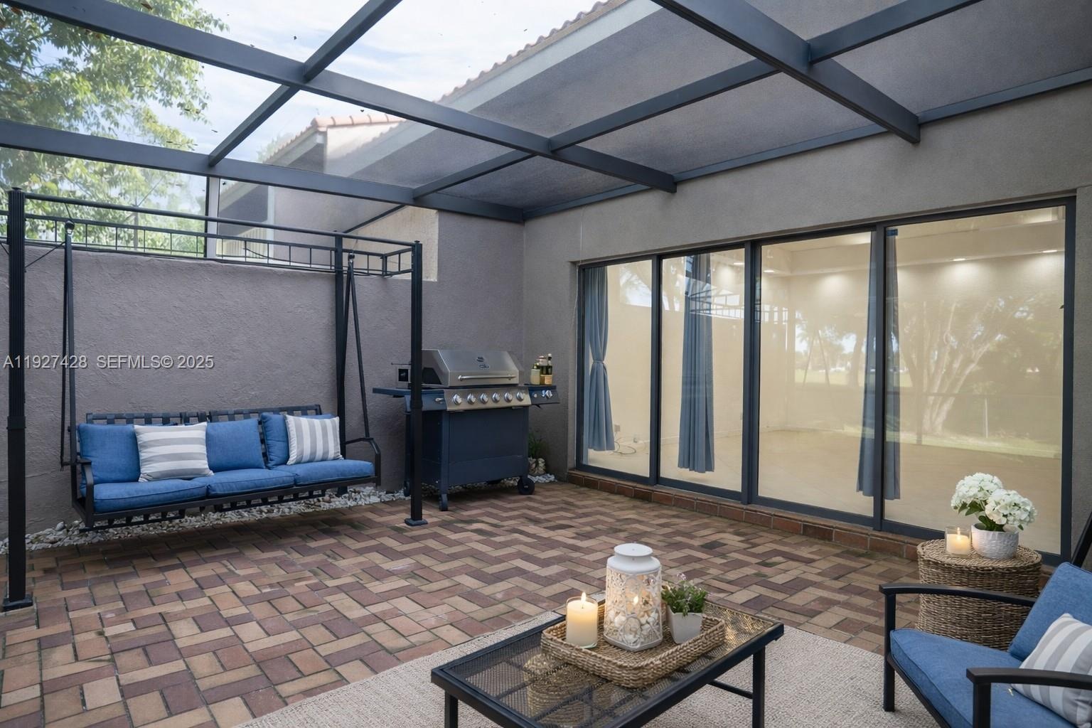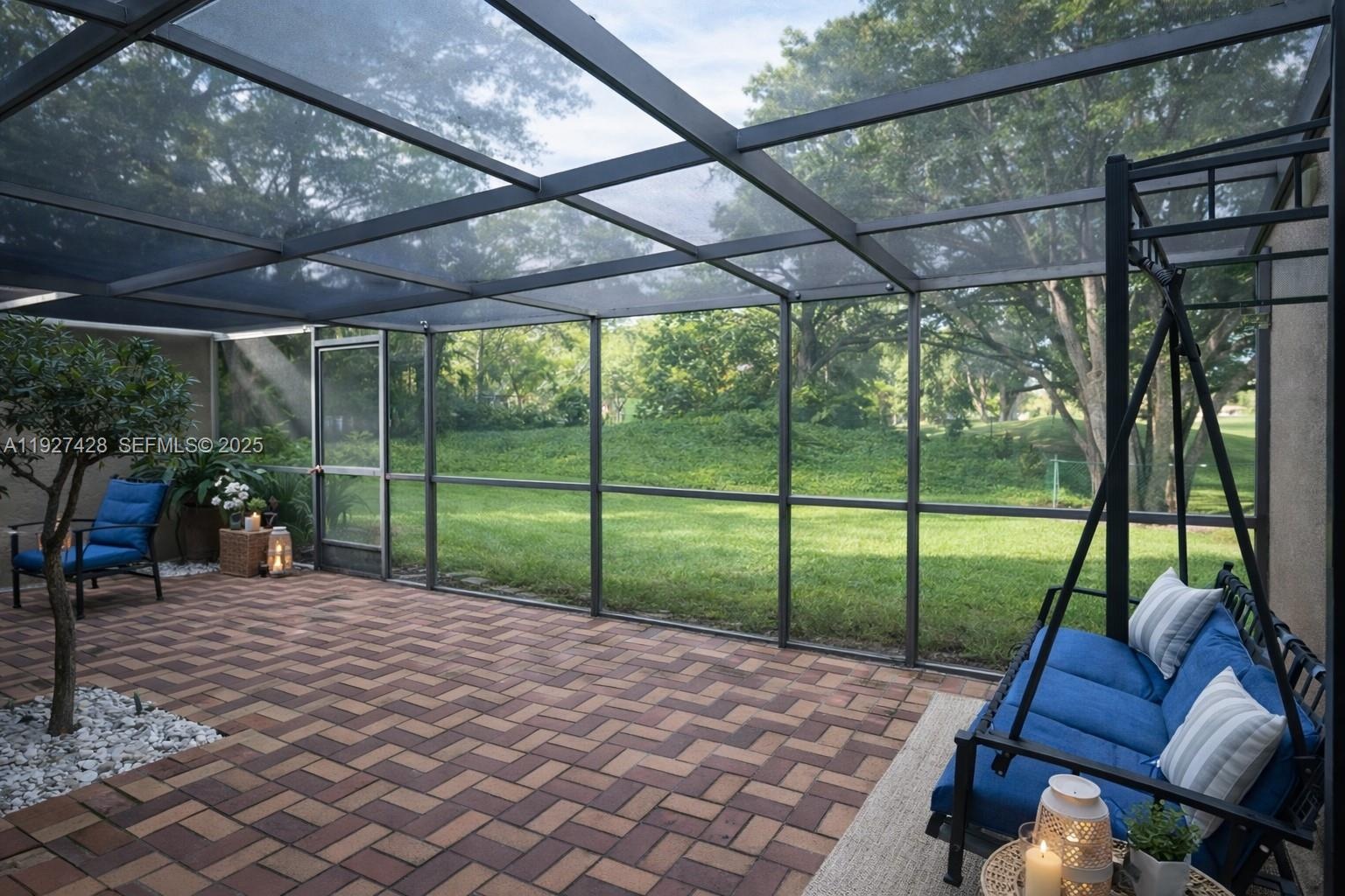 NEW ROOF!! Roofs were completed in 2023. Welcome to your dream home, situated on the golf course with stunning views. From the moment you enter, you’ll notice that every detail has been thoughtfully updated.The redesigned kitchen shines with fresh updates, making it both stylish and functional. Step outside to the patio or courtyard, create your own perfect retreat for morning coffee plus! Nothing has been overlooked,this home truly blends elegance, comfort, and move-in-ready convenience. Three full bedrooms and bathroom. Bedrooms have balconies or windows that allow views and sunshine throughout.This home is close to all major cities and roads. Upgrades: Beautiful wood on stairs, Laminated floor upstairs, knockdown wall, kitchen totally upgraded, new appliances, new dryer 2025, new plumbing and electric new in kitchen, Jacuzzi in master bathroom, patio and upstairs balcony (primary room) has peaceful view of golf course. Patio screened for calmy view of golf course and outside landscaping.The community is close to shopping, dining, airport in 15 minutes and entertainment. This is more than just a home, it’s a move-in-ready lifestyle where elegance meets comfort.