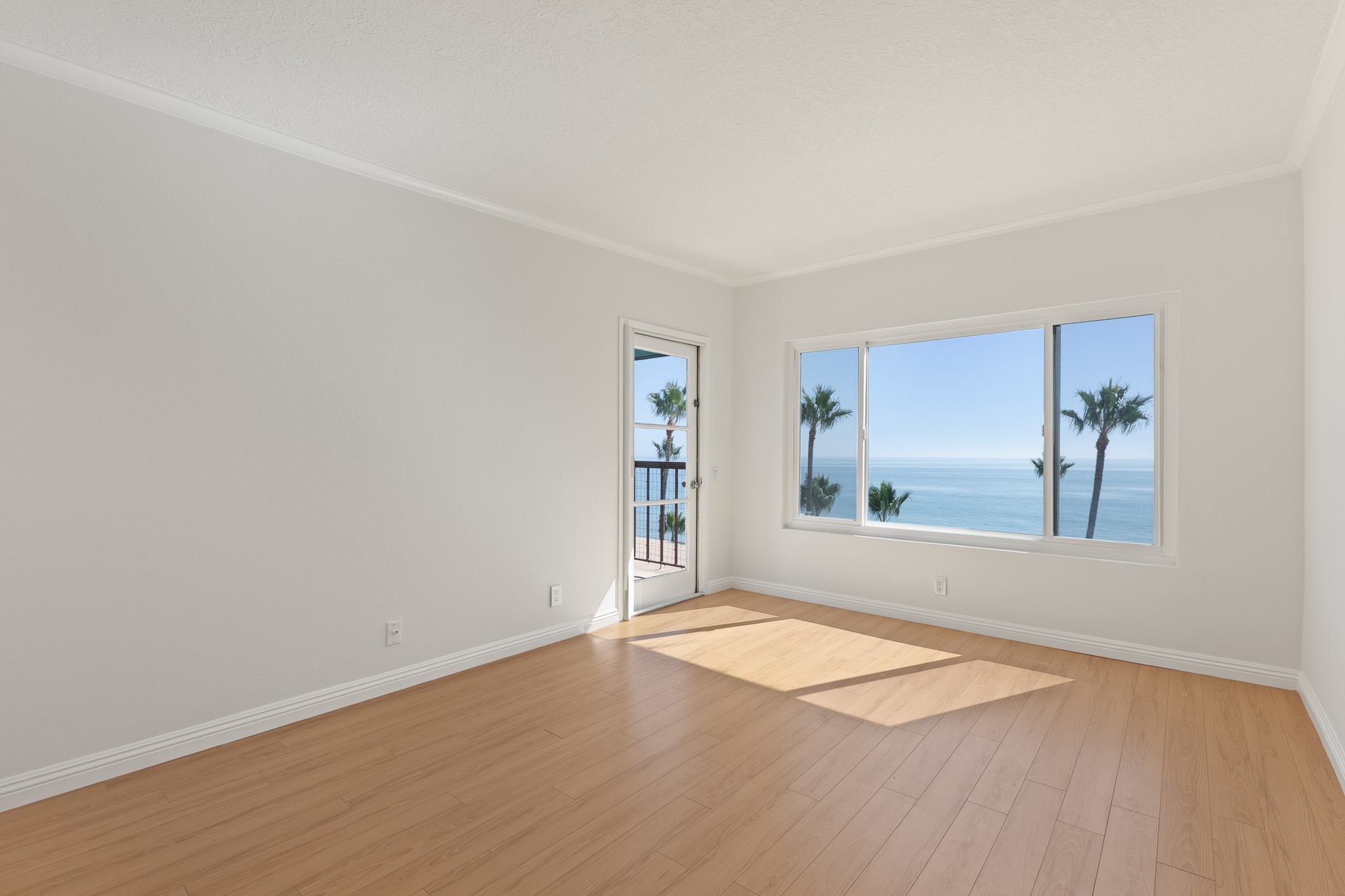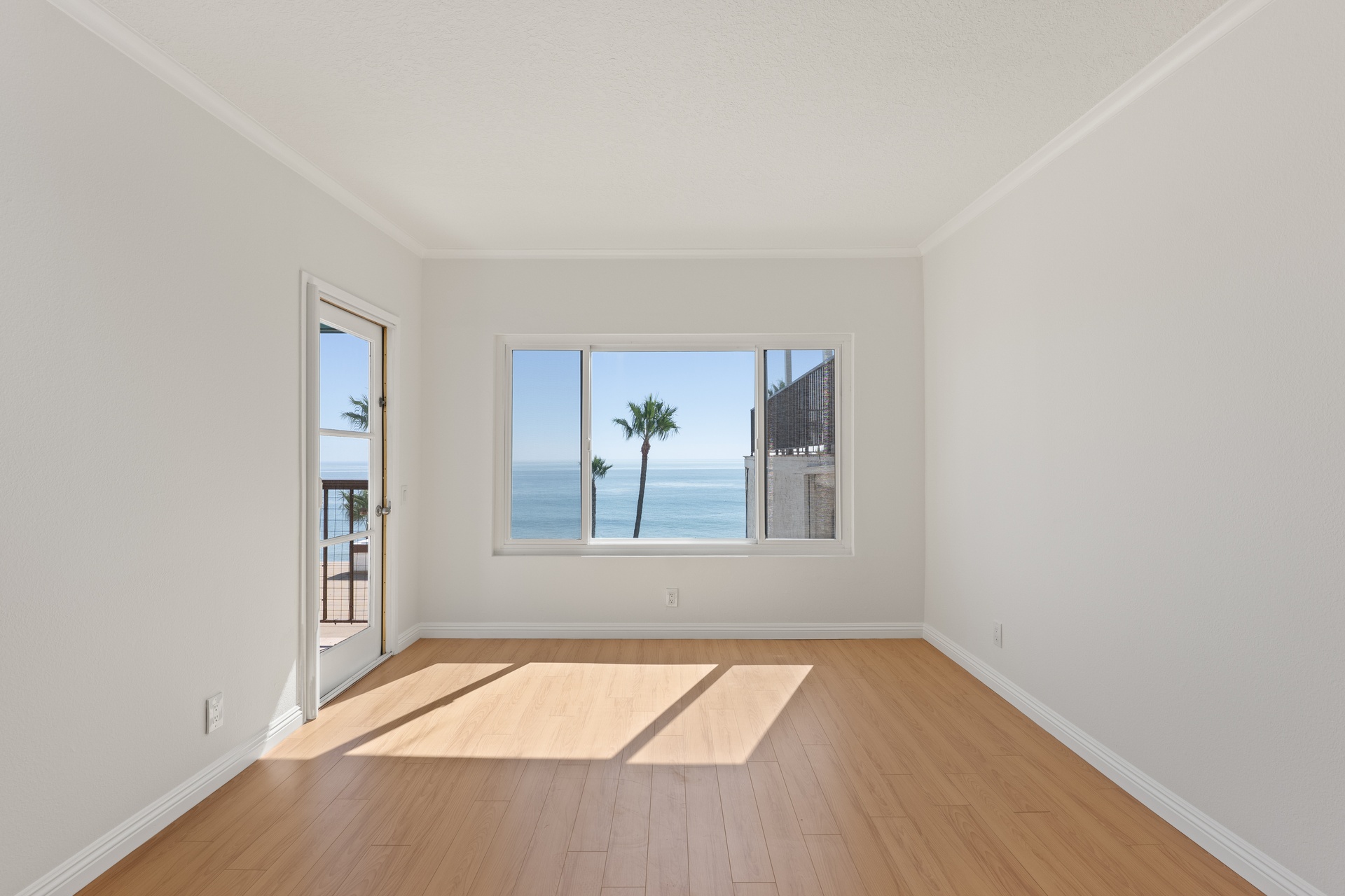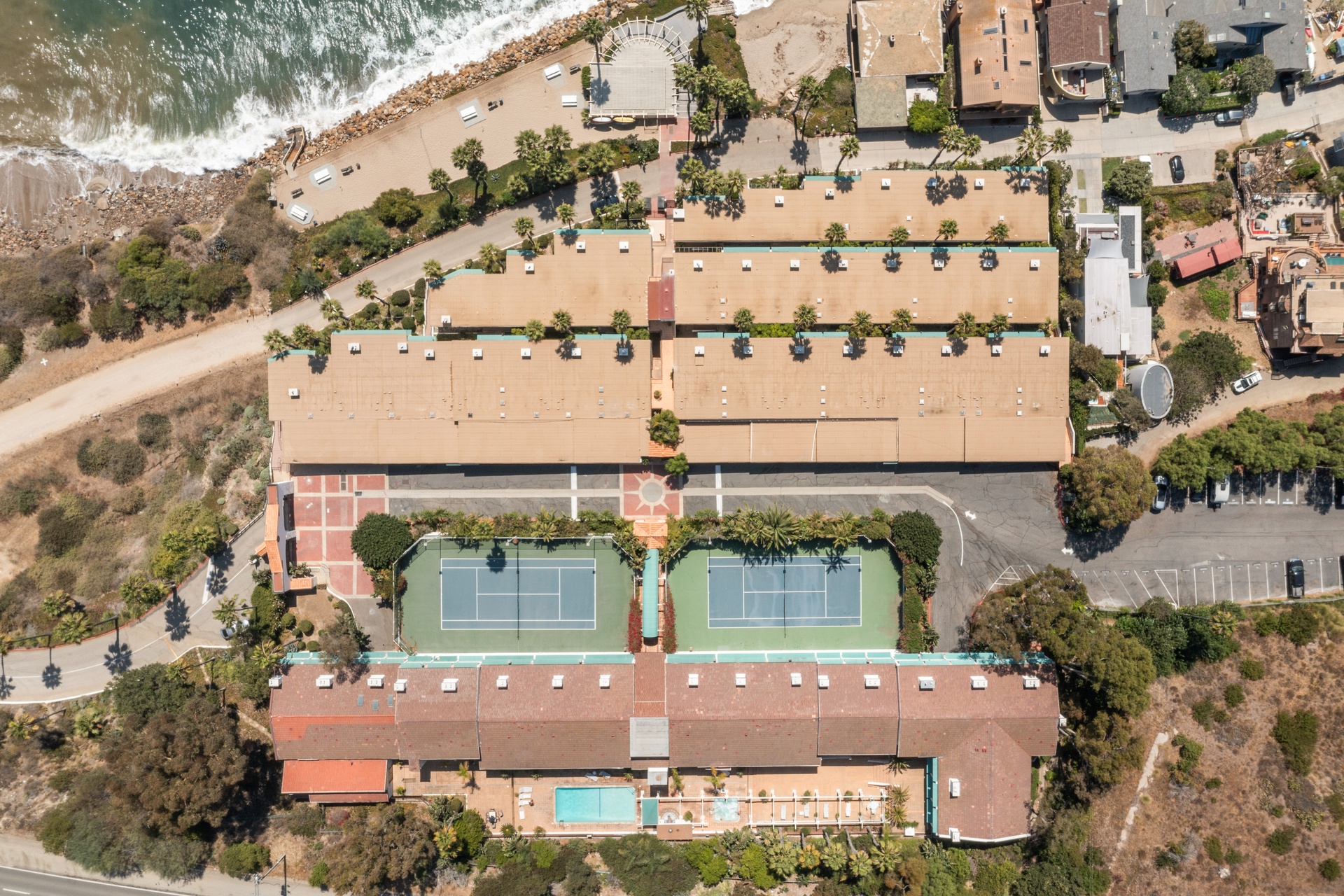 Welcome to a Prime Malibu Coastal Oasis | Ocean-View Resort Living -- Experience the art of seaside living in this impeccably presented one-bedroom, one-bath residence, where panoramic 180 degree ocean views and resort-style amenities define the pinnacle of Malibu luxury. Set within a prestigious guard-gated enclave with 24-hour surveillance and a staffed gatehouse, this ocean-view retreat embodies sophistication, privacy, and the effortless elegance synonymous with Malibu's coastline. The open-concept floor plan is designed to frame the Pacific at every angle, featuring a sun-filled living area with fireplace, mirrored wall, and seamless access to a private balcony overlooking the horizon-- a perfect spot for morning coffee, sunset wine, or simply listening to the soothing rhythm of the sea. The primary suite accommodates a king bed and offers both a walk-in closet and mirrored wardrobe, with direct balcony access revealing endless ocean vistas. A vanity area sits just outside the enclosed bath with a shower-tub combination, thoughtfully designed for both functionality and flow. The kitchen, complete with a bar counter, electric range, dishwasher, and microwave, opens gracefully to the dining area- ideal for casual entertaining or intimate dinners against a backdrop of ocean light. Ceiling fan and in-wall heating ensure year-round comfort. Community amenities rival a five-star resort: enjoy a heated pool and spa open until midnight, fitness center, sauna, clubhouse, and two tennis courts-- along with convenient elevator access connecting the pool and beach levels, ensuring effortless transitions throughout your stay. A private beach area with BBQs, shaded gazebos, volleyball court, and outdoor showers (at the pool, gym, and beach levels) completes the full Malibu coastal experience. A direct stairway to a world-famous surf break connects you to the sand and surf, inviting an active yet relaxing lifestyle defined by morning beach walks, sunbathing, ocean swims, and tranquil evenings under the stars. Additional highlights include two designated parking spaces (one subterranean and one upper-lot), ample guest parking, and a pet friendly community. Welcome to a turnkey, ocean-view escape within one of Malibu's most coveted beachfront communities. Act fast, this opportunity won't last long!