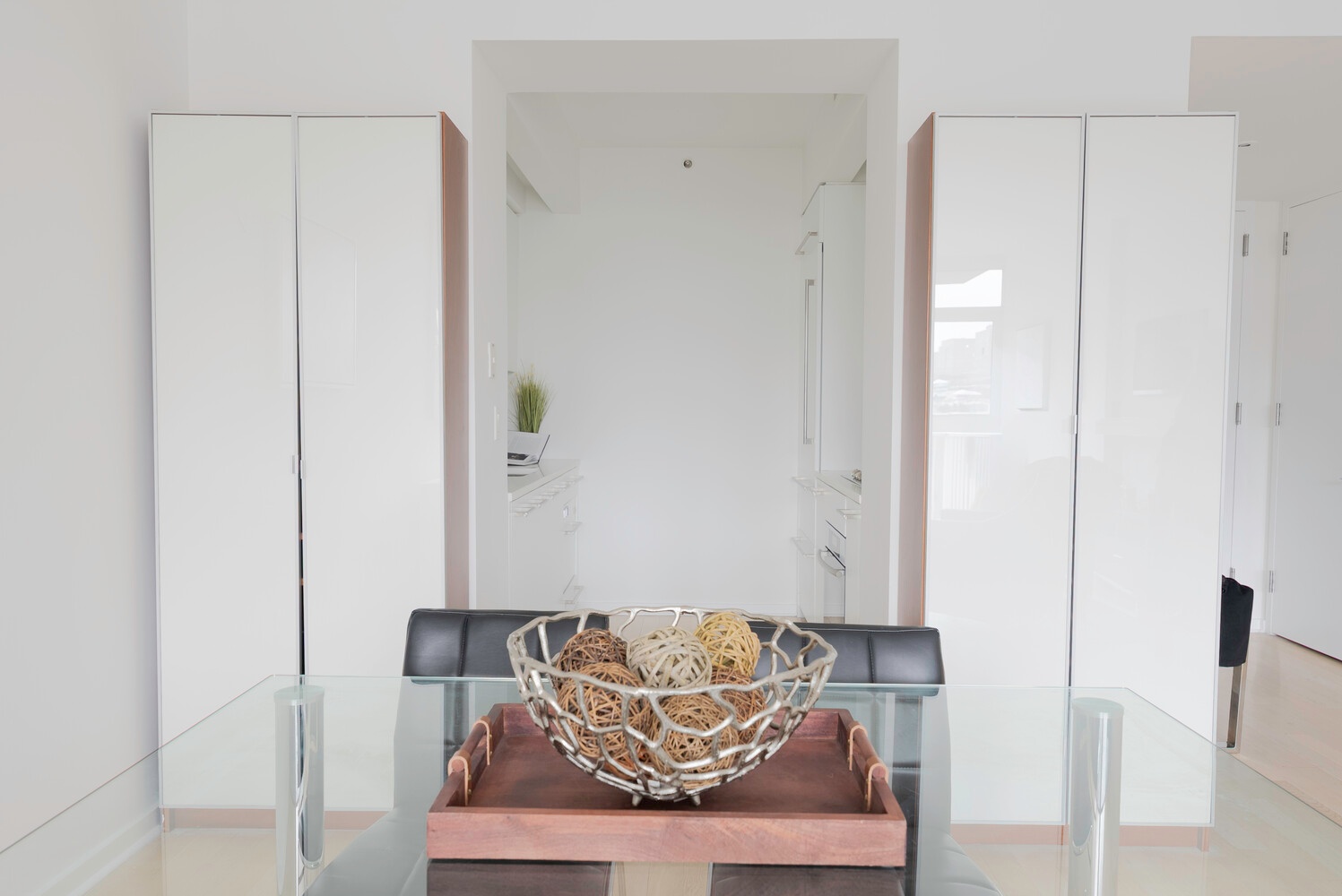 The chef's galley kitchen is masterfully appointed with Miele and Sub-Zero appliances, sleek cabinetry, and the distinctive modern sensibility that defines Philippe Starck's design philosophy. Whether you cook often or simply appreciate thoughtful craftsmanship, the layout offers both functionality and visual appeal.