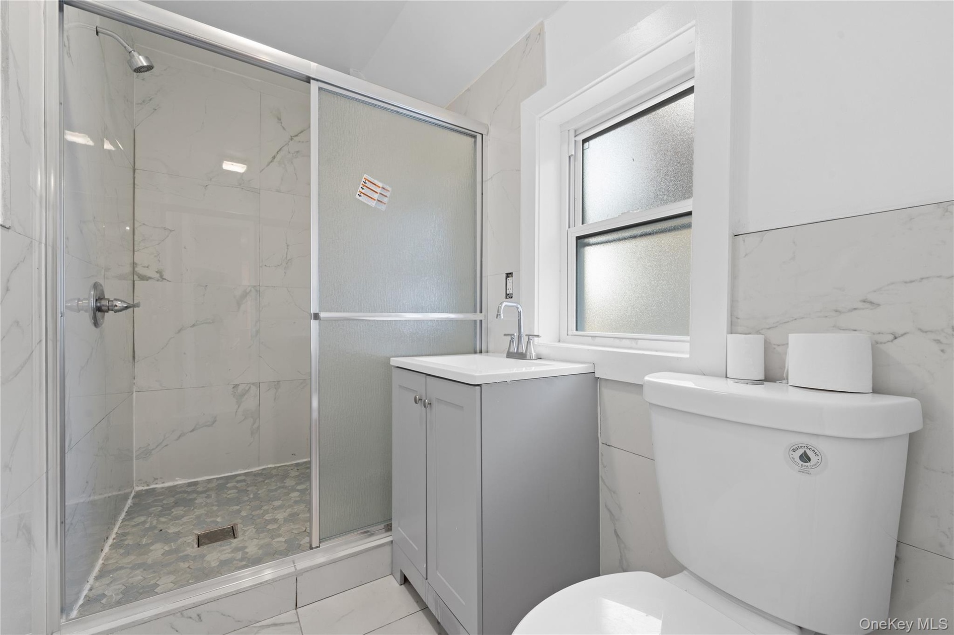 Upstairs, you’ll find three additional spacious bedrooms, each offering ample closet space. An oversized, fully renovated bathroom with contemporary wall and floor tile completes the second floor.