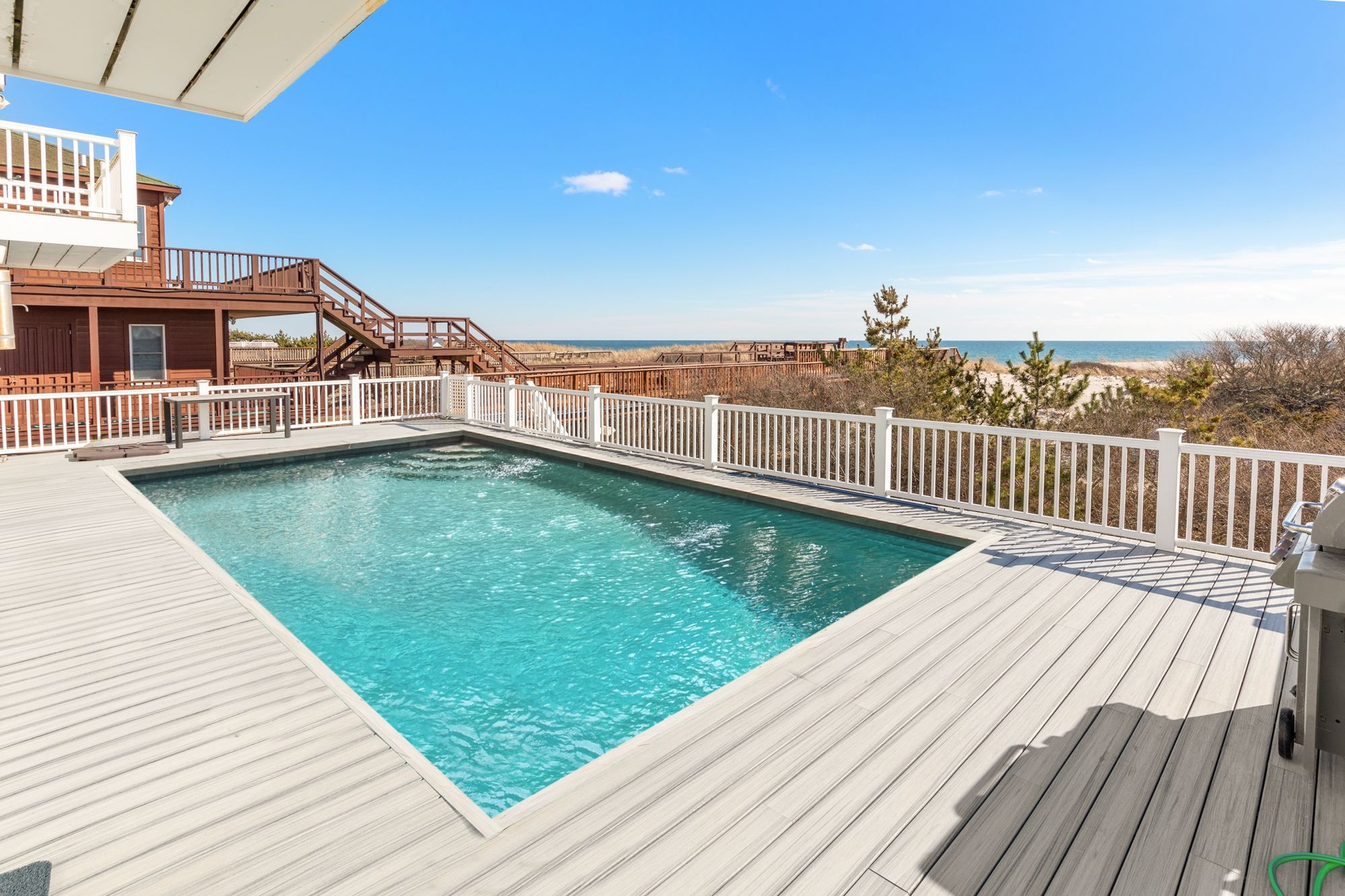The coolest and magical Beach House featuring 4 bedrooms, 3 1/2 baths, Open living area, gourmet kitchen, allure of the heated pool surrounded by large deck and relaxed beach vibe.