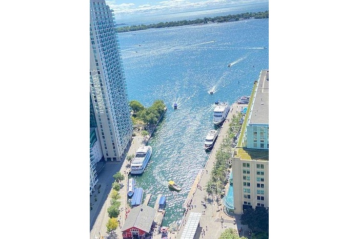 FURNISHED 2 bdrm, 2 bath suite - Fantastic Lake Views! This Furnished Suite is also available for a shorter term (1 mo minimum $3700 + hydro). Bring your suitcases and move right in - this suite is ready for you. Superlative Building Amenities including Indoor/Outdoor Pool, Bright Gym and Delightful Concierge. Restaurants, Queens Quay Terminal Building across the Street, Starbucks and TTC just outside the main entrance. No Smoking Please. Parking available at additional cost.