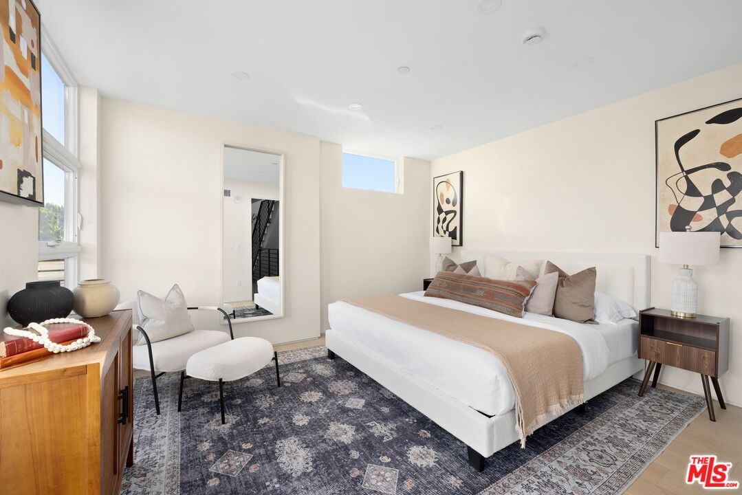 Presenting this 2025-built, front-facing townhome with a large private rooftop, expertly crafted with utmost quality and appointed with fine finishes throughout. Large picture windows welcome light into the spacious living room, as wood planks overhead add dimension and style to the space. Smooth polished concrete floors flow into the designer kitchen, complete with quartz countertops, subway tile backsplash, and state-of-the-art appliances including a Viking range with custom hood. Upstairs, the primary bedroom includes an en-suite bathroom with dual-sink vanity and oversized rainwater shower with ledge as well as a walk-in closet with built-ins. Convenient to the bedroom levels are two balconies as well as stackable laundry. From the private, dedicated rooftop, enjoy panoramic views of the Santa Monica Mountains and Hollywood Hills, the iconic Hollywood Sign, treetops, and vast, sweeping cityscape. Under calm California skies, relax and entertain guests, barbecue, and dine al-fresco. Parking is controlled-access and subterranean, and each townhome has solar. Welcome to a fresh lifestyle at The Ten11, a set of five newly completed townhomes located in prime West Hollywood just moments to shopping along Melrose, The Grove, Original Farmers Market, nightlife, restaurants, and more.