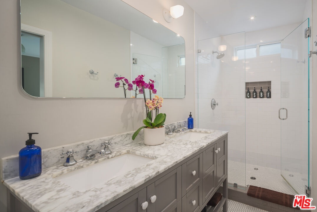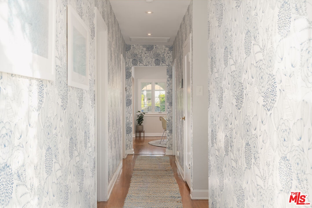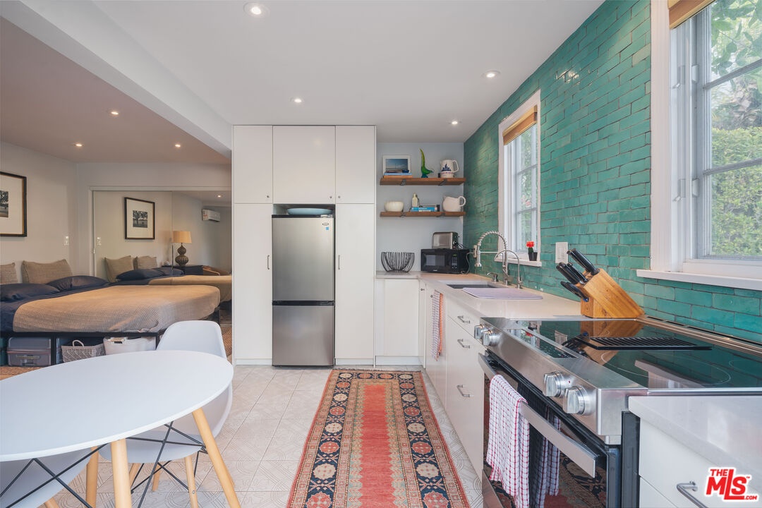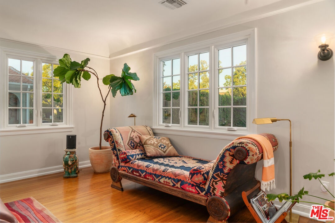 Welcome to 513 N. Mansfield, a beautifully renovated English country-style retreat that seamlessly blends modern luxury with timeless character. Gated and private, this inviting haven offers an extraordinary lifestyle in the heart of Hancock Park. Perfect for indoor/outdoor flow and effortless entertaining. The 3-bedroom, 2-bath main residence has been thoughtfully restored, preserving its original charm with an authentic Batchelder-tiled fireplace, rich wooden built-ins, arched doorways, and classic architectural detailing. A modern chef's kitchen with stainless steel appliances opens to the formal dining area, creating an ideal setting for both casual and elegant meals. The primary suite features a walk-in closet and a gorgeous new bathroom with dual sinks and a walk-in shower. Two additional bedrooms share a bright, newly renovated bathroom illuminated by a skylight. Light-filled living and dining spaces offer an effortless flow for everyday living and sophisticated gatherings. A fully renovated guest house adds exceptional versatility, complete with a kitchenette and an additional bathroom. Ideal for visitors, a home office, creative studio, or live-in help. The expansive grassy backyard is beautifully landscaped and anchored by a sparkling pool and spa, an idyllic backdrop for relaxing afternoons and memorable evenings under the California sky. Located in an unbeatable central Hancock Park location, you're moments from the city's best shops, cafes, and restaurants. Character-rich and stylishly updated, this is Los Angeles living at its finest.