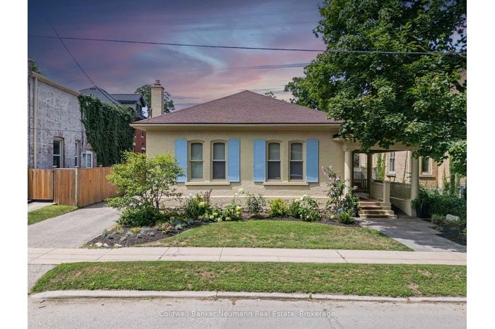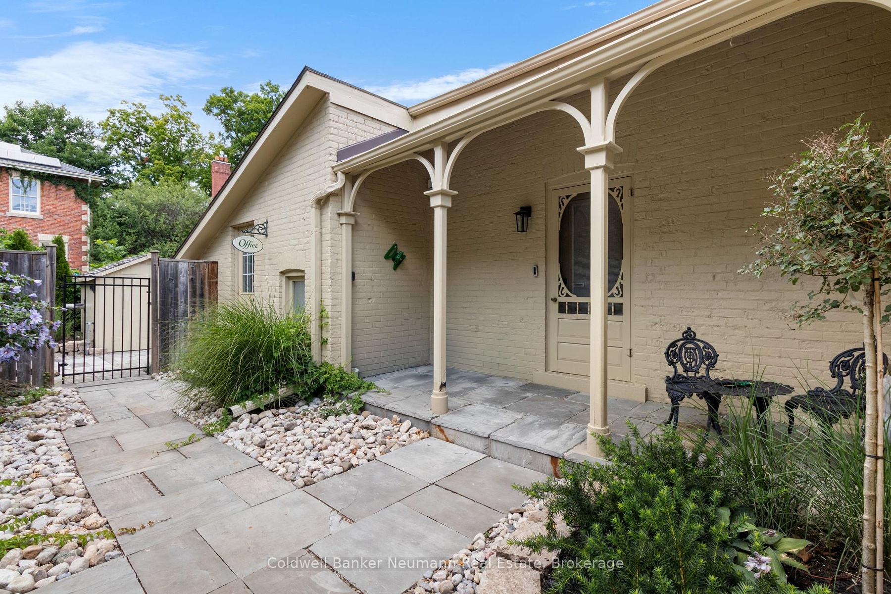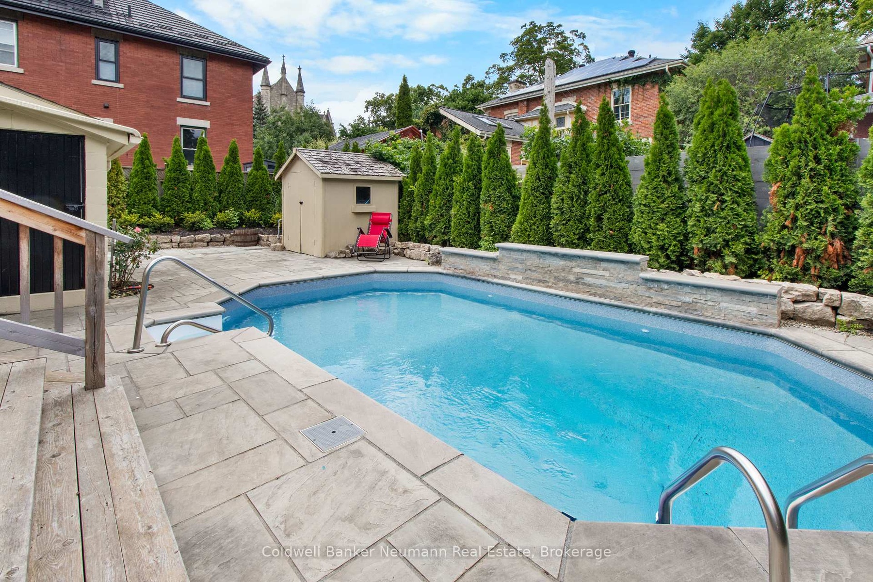*Fully Furnished**Captivating historical home nestled on a highly sought-after street in the heart of Downtown Guelph! Offering 2,342 sq ft of living space, this 1889-built residence has been beautifully maintained and thoughtfully updated with modern finishes throughout. As you arrive, the charming front porch with wheelchair-accessible entry welcomes you-a perfect spot to unwind and enjoy the picturesque, tree-lined streets. Inside, the character of this home's rich history shines through. Soaring 12 ft ceilings and oversized windows create an open, airy atmosphere, while elegant hardwood flooring, high baseboards, crown moulding, and custom millwork elevate every room. The fireplace, framed by custom built-ins, provides the ideal ambience for cozy family time. The stunning kitchen showcases striking granite countertops, high-end stainless-steel appliances and a skylight that fills the space with natural light. A breakfast bar adds the perfect spot for casual dining or entertaining. Double doors lead directly to the backyard, offering a seamless flow between indoor and outdoor living. You'll find three generous bedrooms. The primary suite features a large window and a luxurious ensuite complete with an oversized vanity, double sinks, glass shower, and heated floors. Designed with functionality in mind, the home includes built-in closets, a dedicated office space with a 2-piece bath and separate entrance provides excellent flexibility for working from home. The backyard is a private oasis featuring a spacious deck, serene views of the inground pool with a soothing water feature, and mature trees wrapped by a tall wooden fence for added privacy-an ideal setting for relaxing or entertaining. Located in prime Downtown Guelph, you're steps away from charming boutiques, restaurants, bakeries, nightlife, and the GO Station. A short walk brings you to Exhibition Park and Royal City Park with scenic trails along the river. This property is truly a gem!