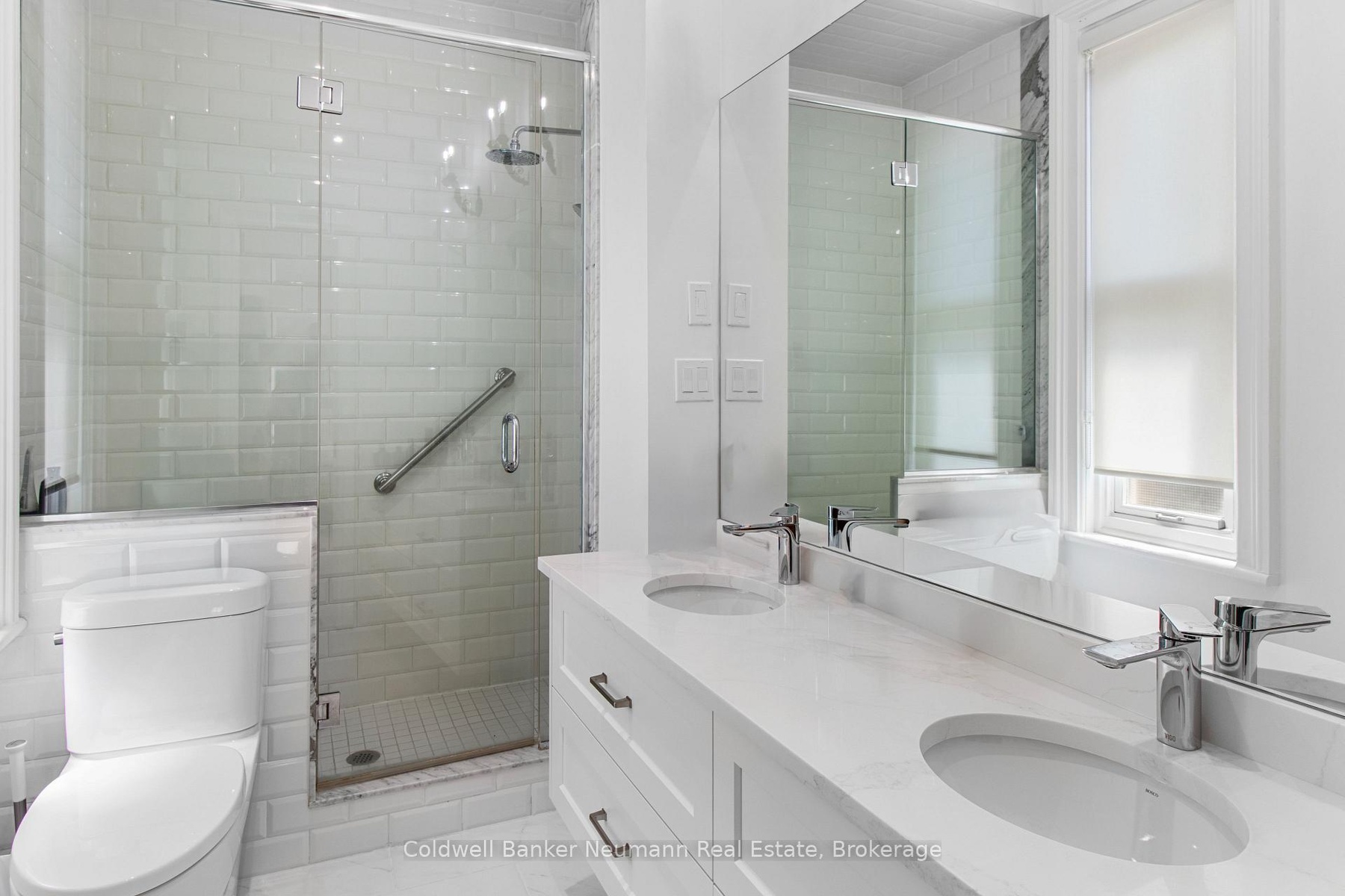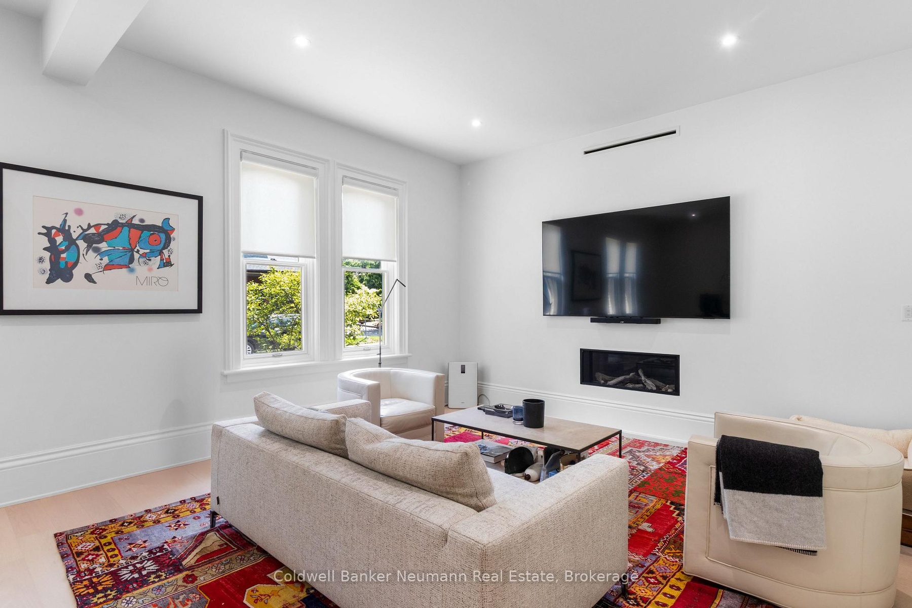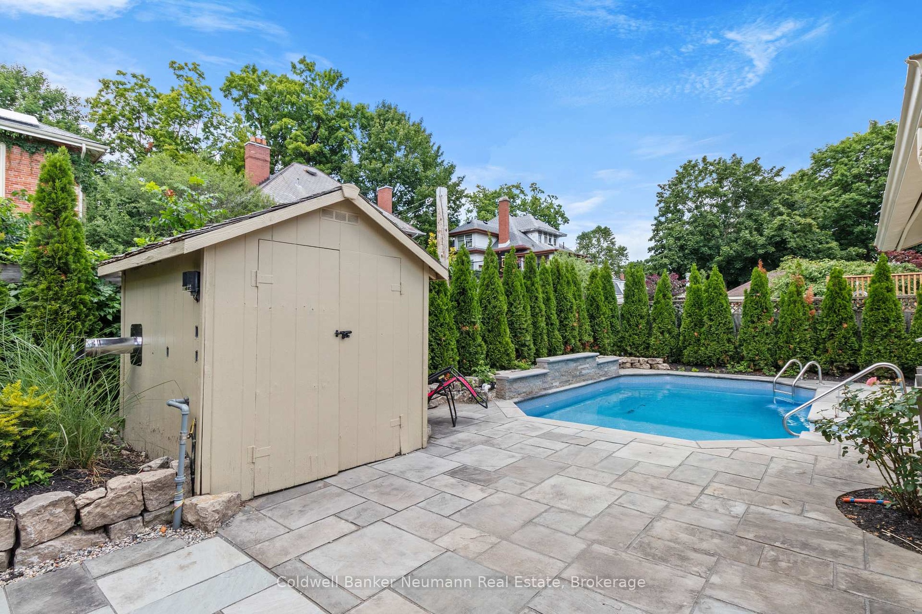 *Fully Furnished**Captivating historical home nestled on a highly sought-after street in the heart of Downtown Guelph! Offering 2,342 sq ft of living space, this 1889-built residence has been beautifully maintained and thoughtfully updated with modern finishes throughout. As you arrive, the charming front porch with wheelchair-accessible entry welcomes you-a perfect spot to unwind and enjoy the picturesque, tree-lined streets. Inside, the character of this home's rich history shines through. Soaring 12 ft ceilings and oversized windows create an open, airy atmosphere, while elegant hardwood flooring, high baseboards, crown moulding, and custom millwork elevate every room. The fireplace, framed by custom built-ins, provides the ideal ambience for cozy family time. The stunning kitchen showcases striking granite countertops, high-end stainless-steel appliances and a skylight that fills the space with natural light. A breakfast bar adds the perfect spot for casual dining or entertaining. Double doors lead directly to the backyard, offering a seamless flow between indoor and outdoor living. You'll find three generous bedrooms. The primary suite features a large window and a luxurious ensuite complete with an oversized vanity, double sinks, glass shower, and heated floors. Designed with functionality in mind, the home includes built-in closets, a dedicated office space with a 2-piece bath and separate entrance provides excellent flexibility for working from home. The backyard is a private oasis featuring a spacious deck, serene views of the inground pool with a soothing water feature, and mature trees wrapped by a tall wooden fence for added privacy-an ideal setting for relaxing or entertaining. Located in prime Downtown Guelph, you're steps away from charming boutiques, restaurants, bakeries, nightlife, and the GO Station. A short walk brings you to Exhibition Park and Royal City Park with scenic trails along the river. This property is truly a gem!