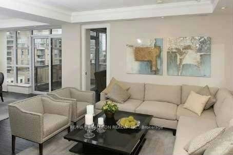 Furnished rental. Ultra luxurious contemporary masterpiece overlooking Yorkville. Corner 2-bedroom suite with exquisite finishes throughout. Poggenpohl kitchen loaded With Miele appliances & Sub-Zero Fridge. Valet parking, 24 Hr concierge, indoor pool, 2-storey fitness area, sauna, whirlpool, 3rd floor rooftop deck/garden, party/meeting room, and guest suites, . Gas fireplace & Hunter Douglas window coverings. See attached floor plan. One (1) year minimum term. No short term rentals allowed.