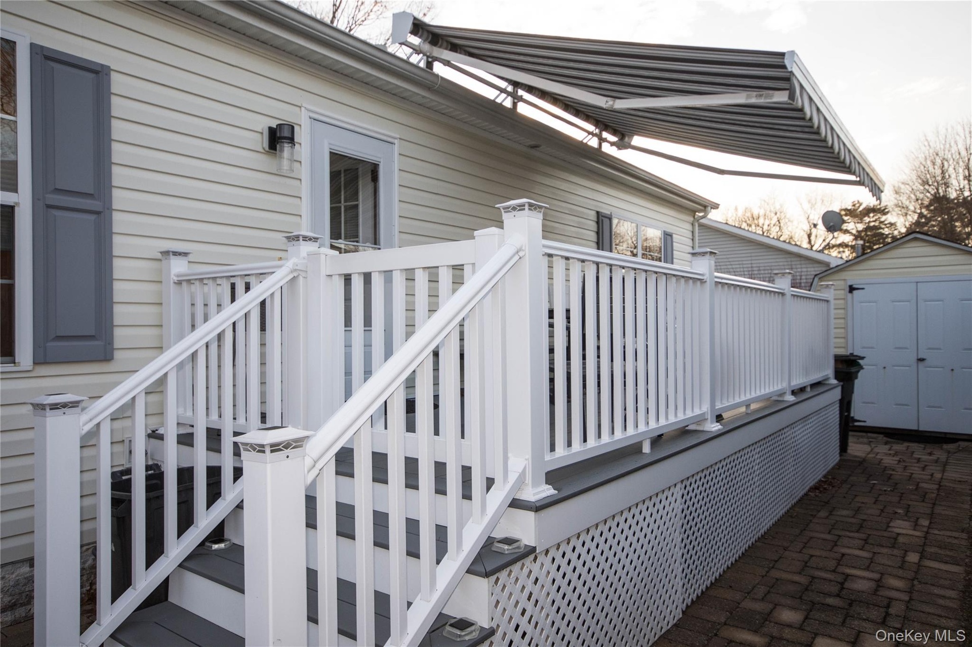 This home also offers a range of desirable features, including a front screened-in porch, a spacious trex decking, with awning and a lower patio for outdoor enjoyment. An efficient central air system ensures year-round comfort, while the sprinkler system keeps your landscaping lush and inviting. For added convenience, a shed provides extra storage space, and the crawl space basement offers even more room for your belongings.