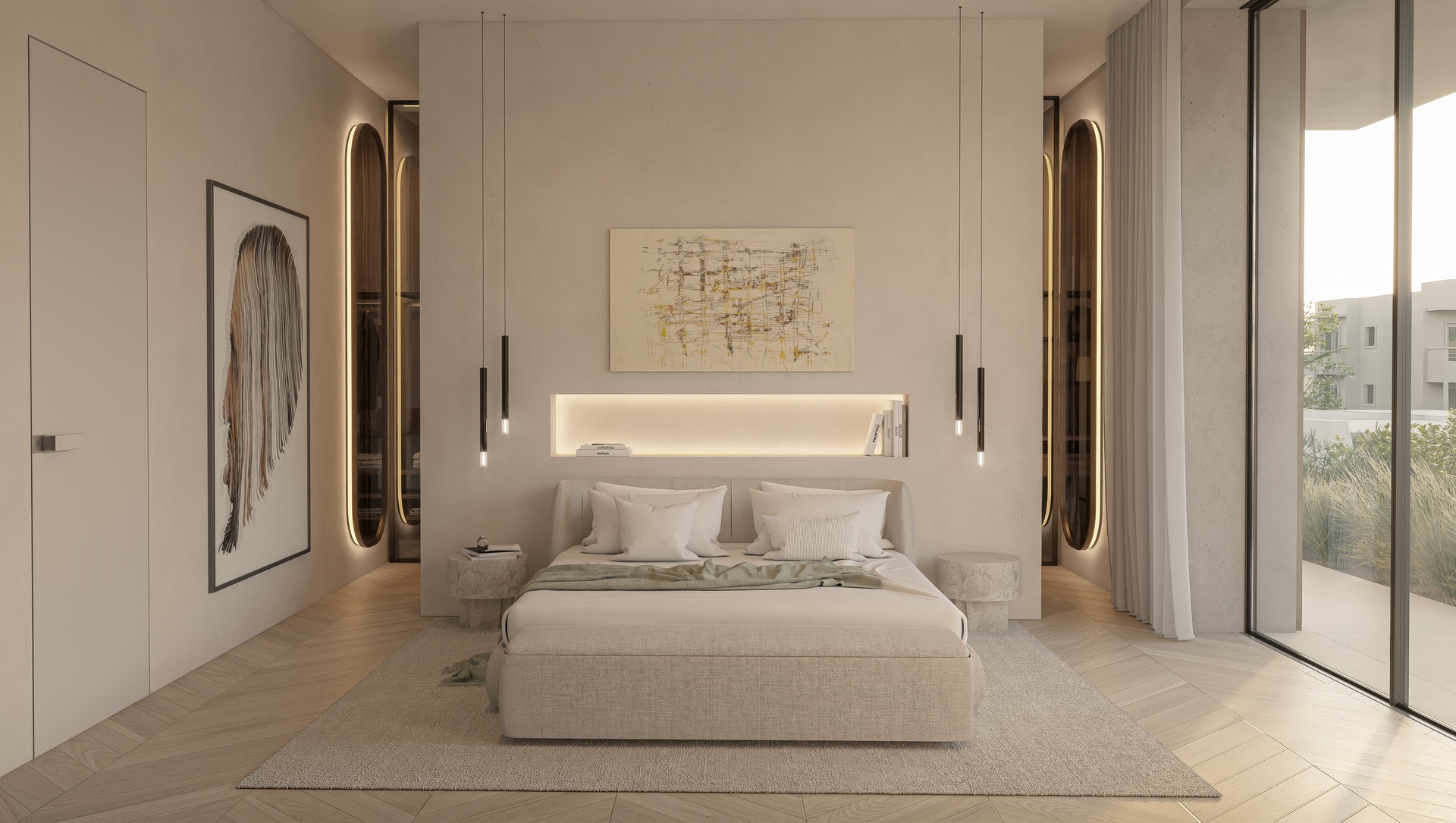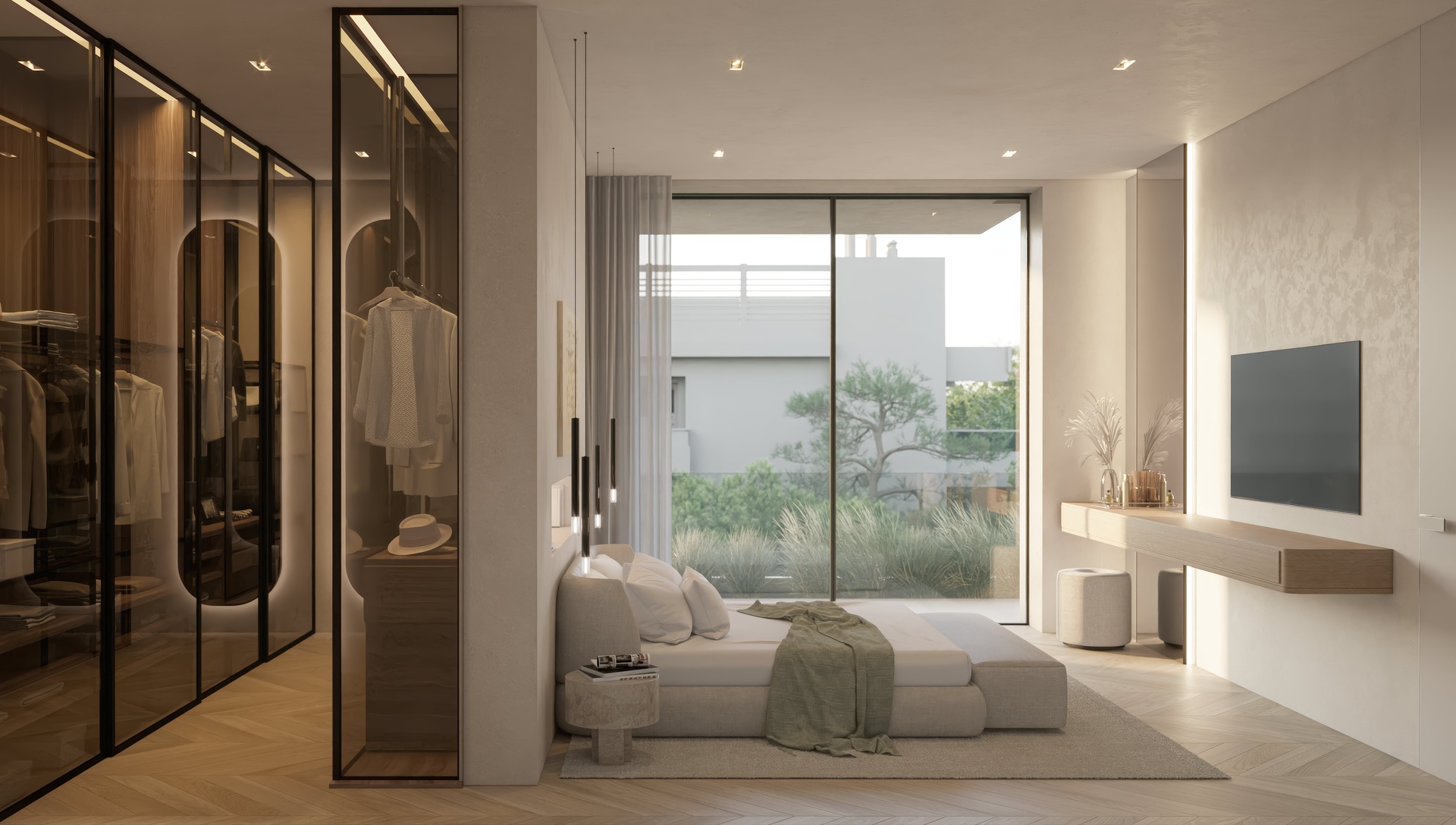 The penthouse unfolds across generous interior spaces with open-plan living, dining, and kitchen areas, enhanced by floor-to-ceiling glazing that floods the residence with natural light. Seamless transitions lead to large private terraces, thoughtfully landscaped and designed for year-round enjoyment.