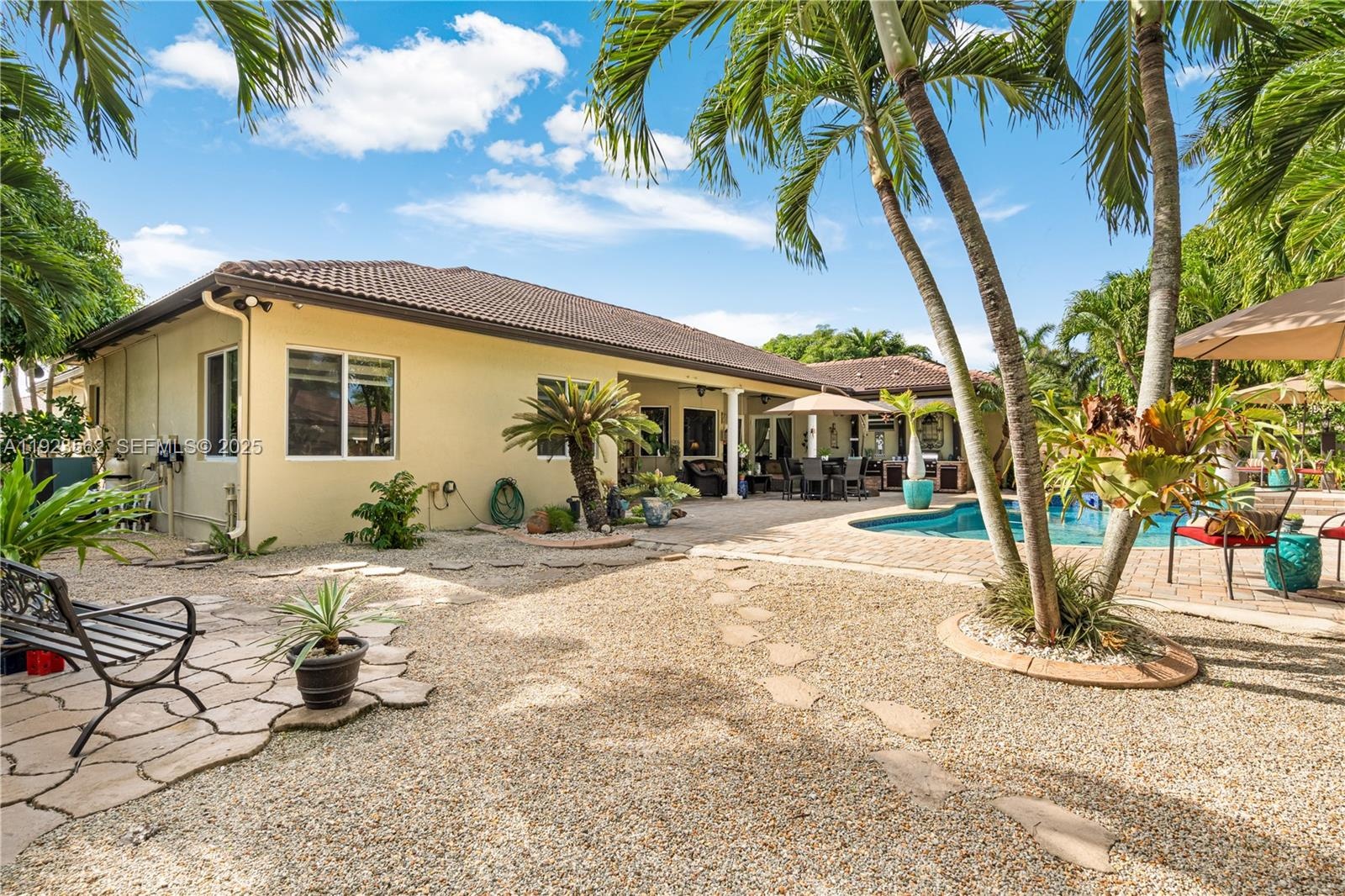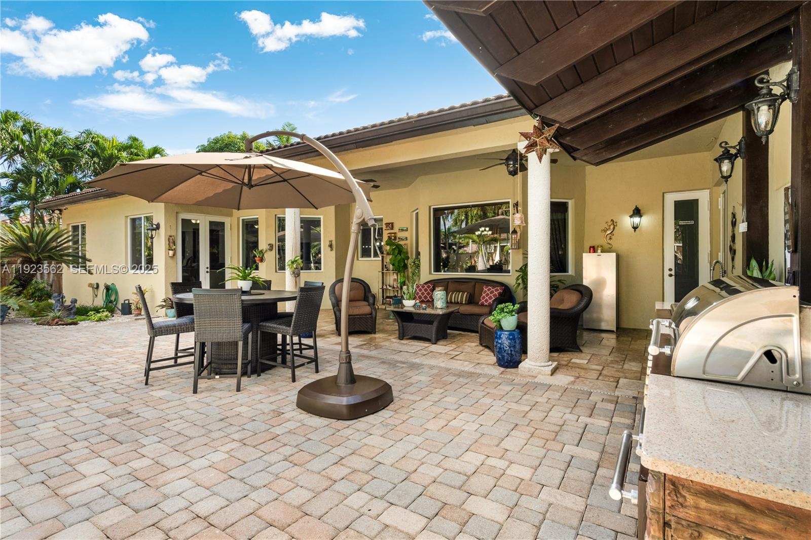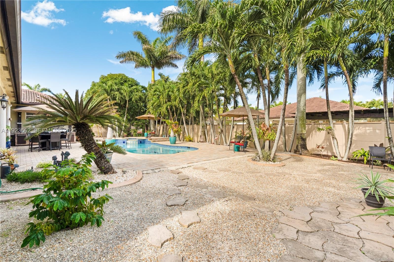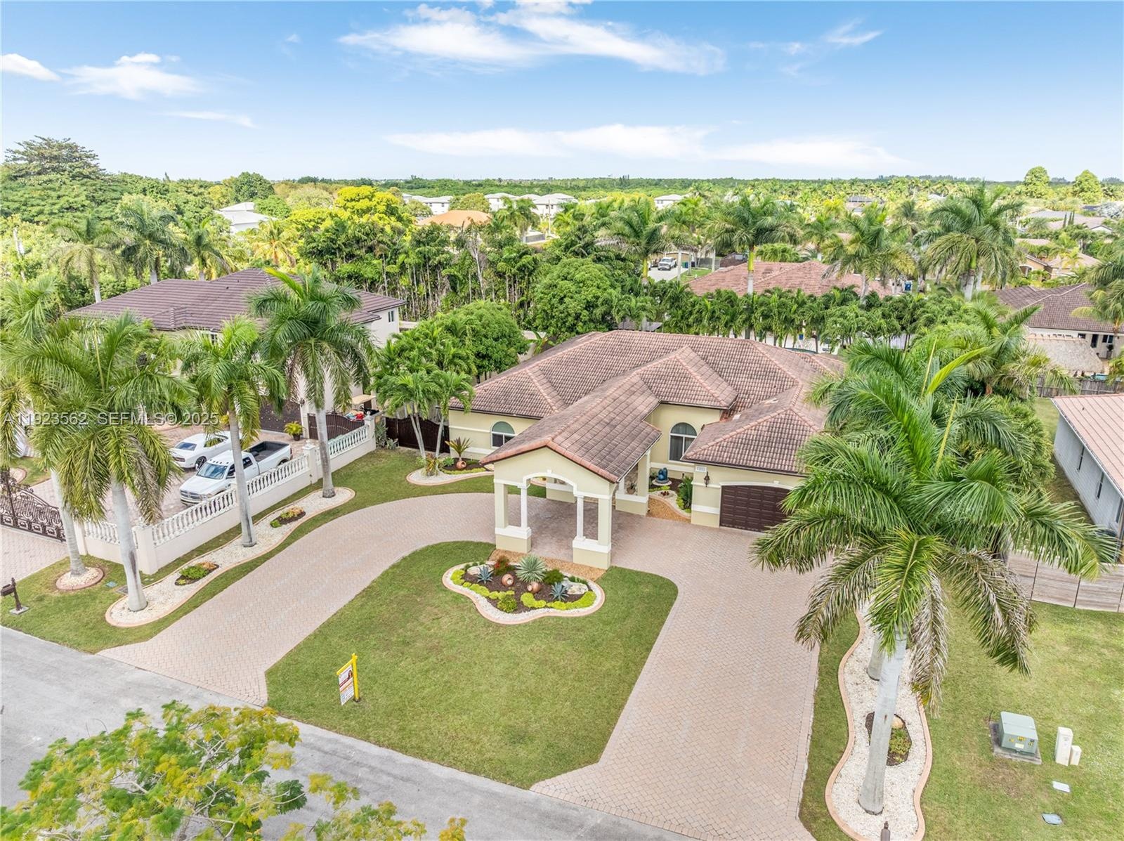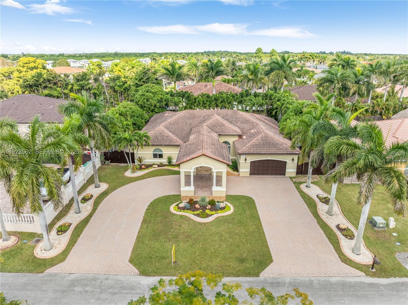Beautiful home situated on a spacious 16,025 s/f lot featuring a circular driveway, porte cochere, and a 2-car garage. This property offers 4 bedrooms and 3 bathrooms across 4,579 total s/f, plus an additional 1/1 apartment. Upgrades include impact windows and doors, porcelain floors, and a kitchen equipped with granite countertops and wood cabinetry. The home also features 2 central A/C units and 4 mini-splits. Enjoy a heated saltwater pool with spa in a family-friendly neighborhood. No HOA.