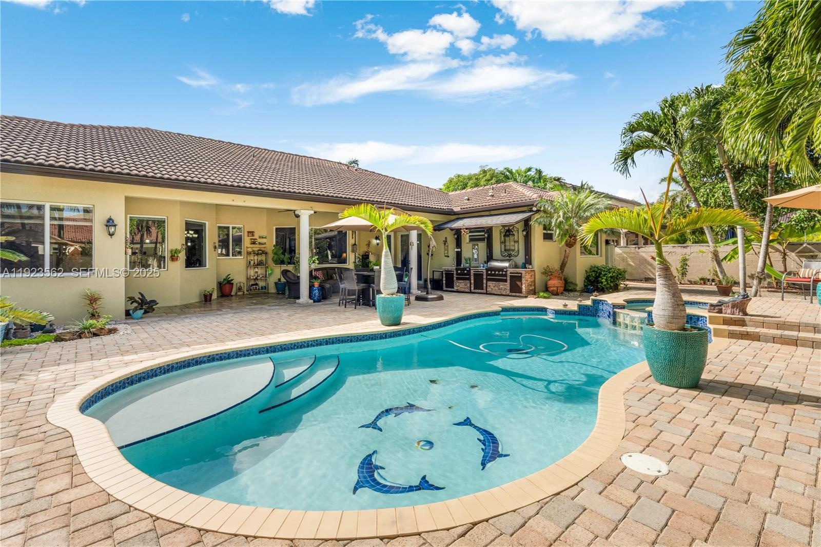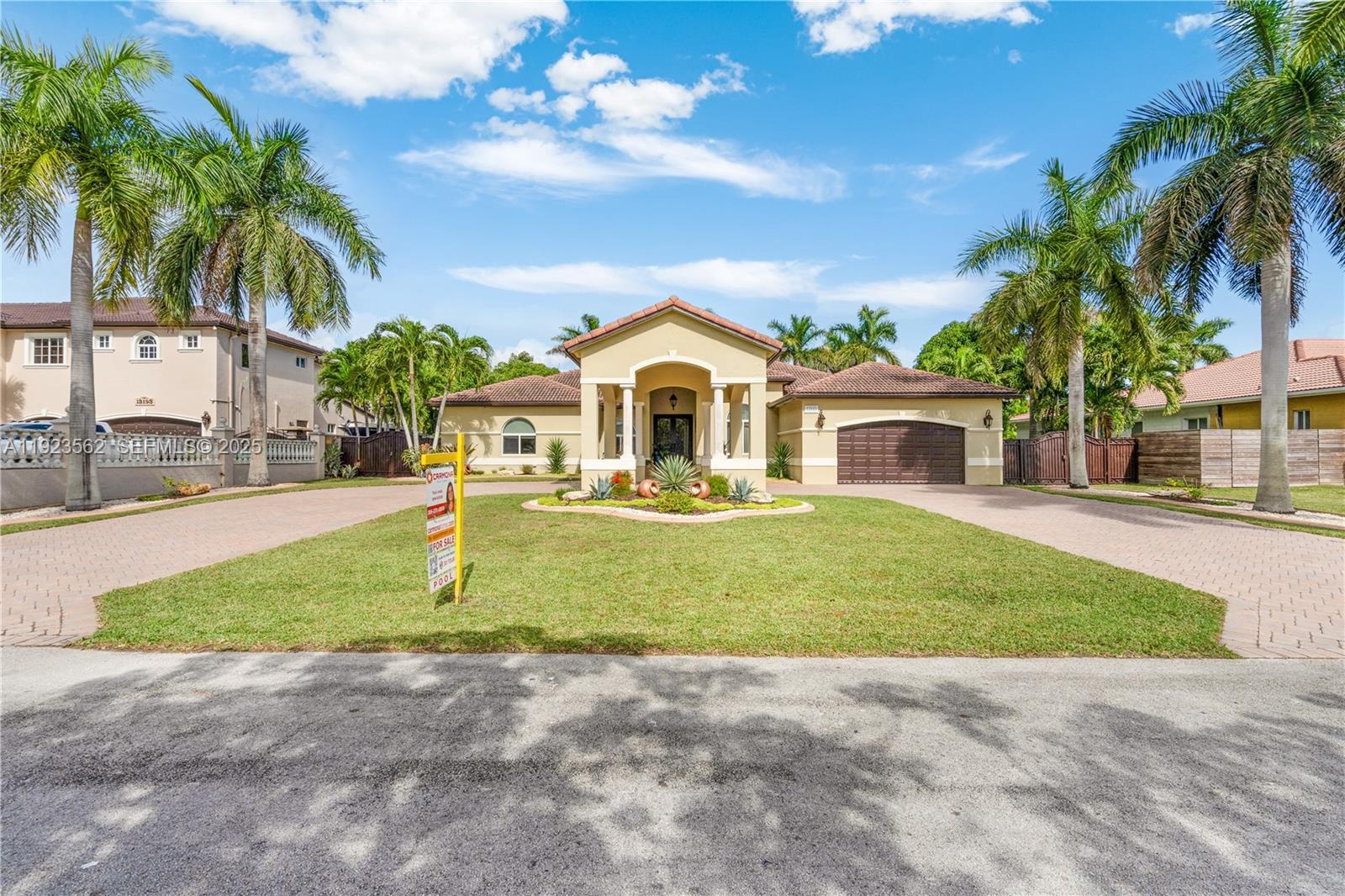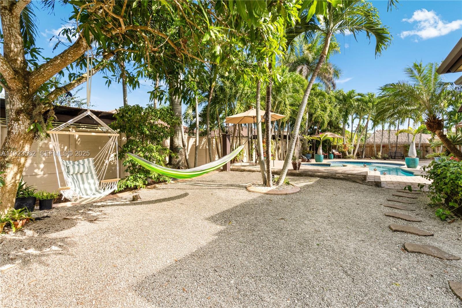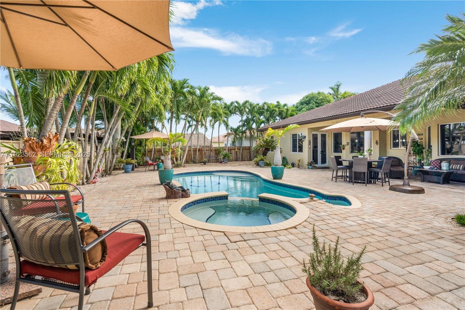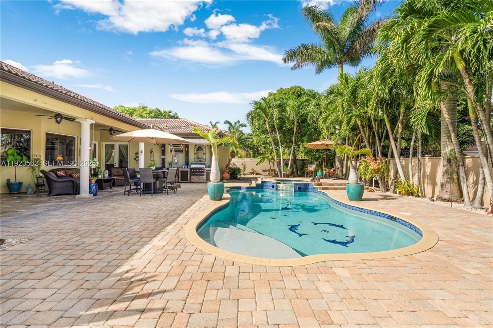 Beautiful home situated on a spacious 16,025 s/f lot featuring a circular driveway, porte cochere, and a 2-car garage. This property offers 4 bedrooms and 3 bathrooms across 4,579 total s/f, plus an additional 1/1 apartment. Upgrades include impact windows and doors, porcelain floors, and a kitchen equipped with granite countertops and wood cabinetry. The home also features 2 central A/C units and 4 mini-splits. Enjoy a heated saltwater pool with spa in a family-friendly neighborhood. No HOA.