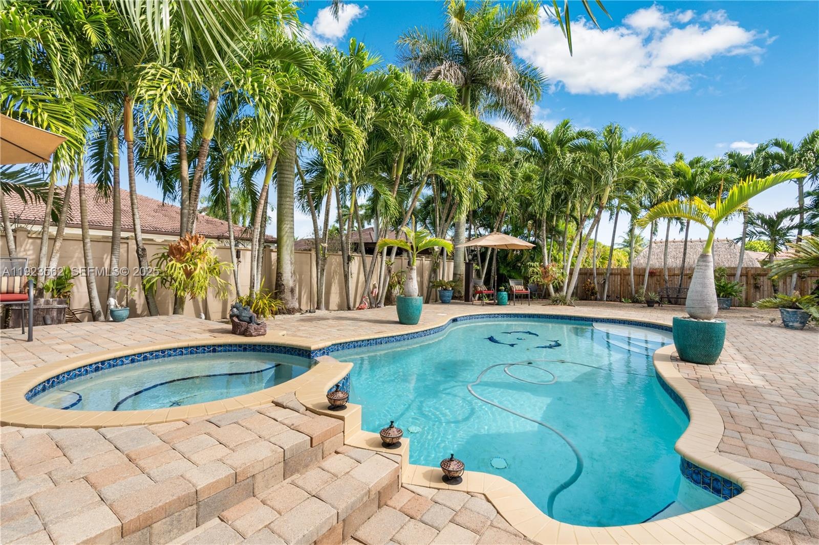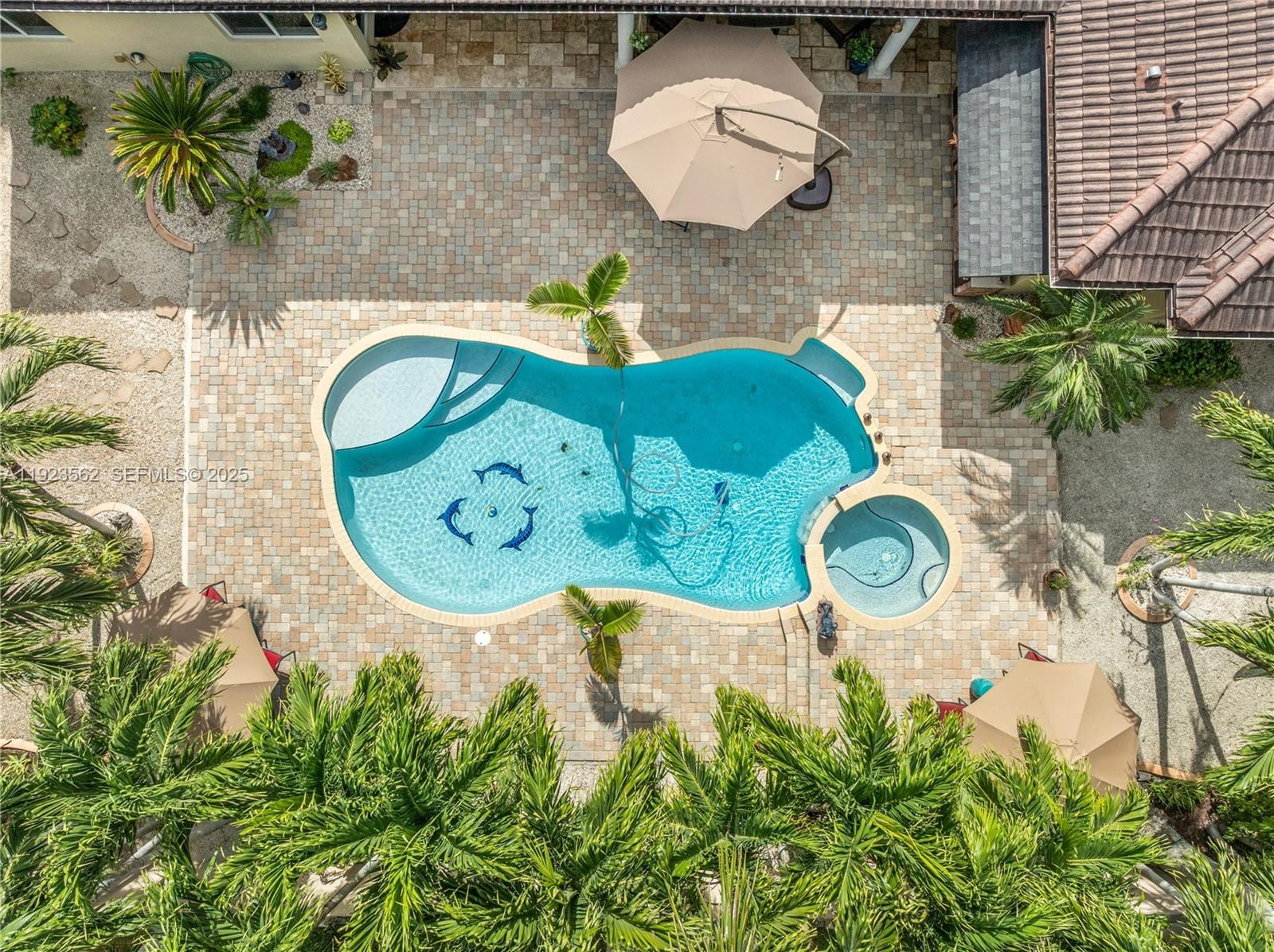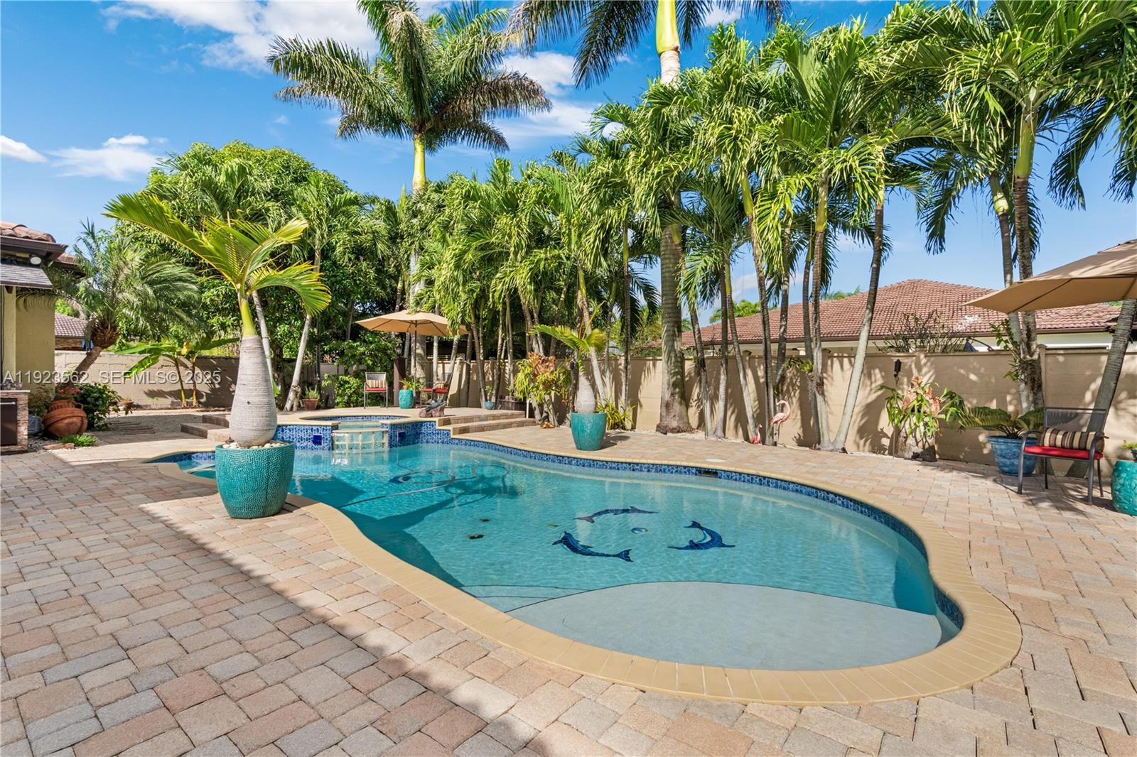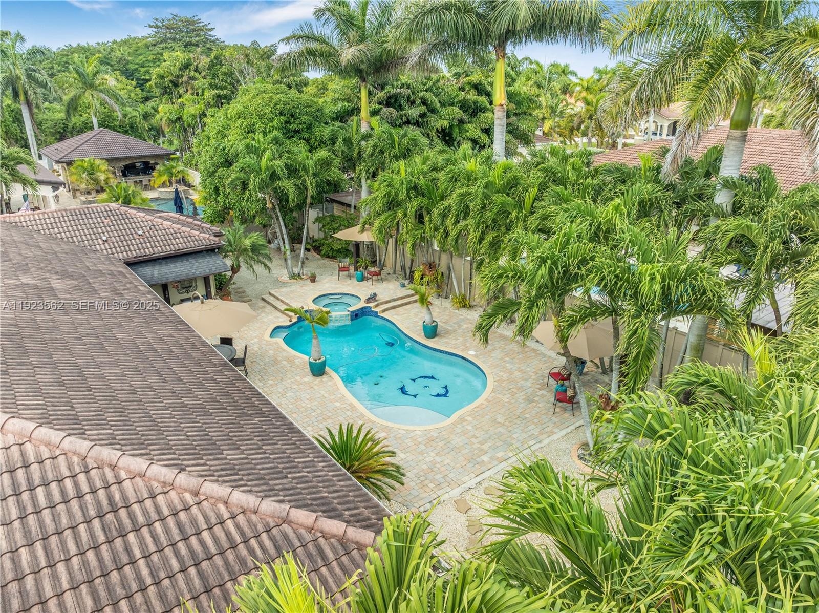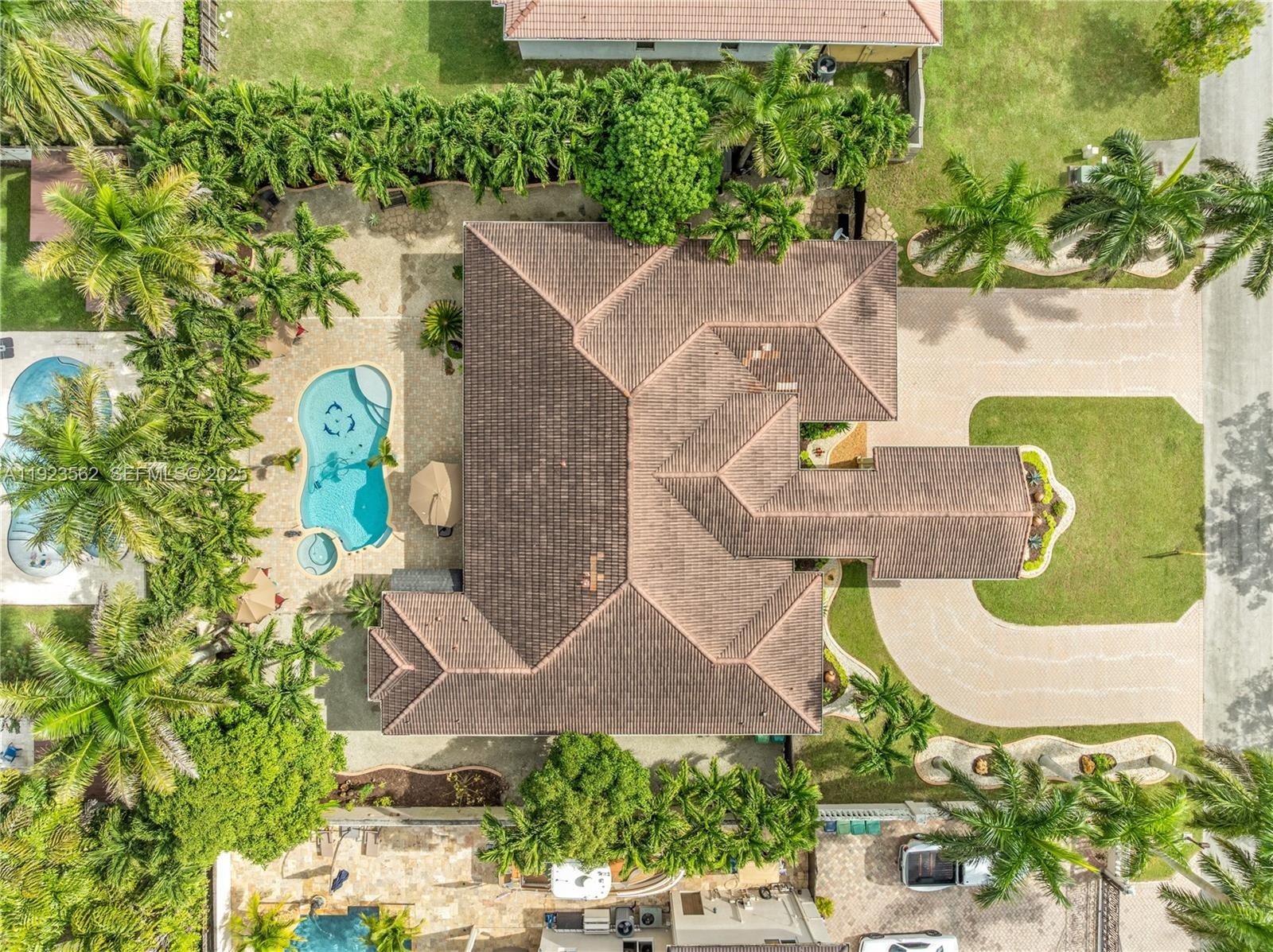 Beautiful home situated on a spacious 16,025 s/f lot featuring a circular driveway, porte cochere, and a 2-car garage. This property offers 4 bedrooms and 3 bathrooms across 4,579 total s/f, plus an additional 1/1 apartment. Upgrades include impact windows and doors, porcelain floors, and a kitchen equipped with granite countertops and wood cabinetry. The home also features 2 central A/C units and 4 mini-splits. Enjoy a heated saltwater pool with spa in a family-friendly neighborhood. No HOA.