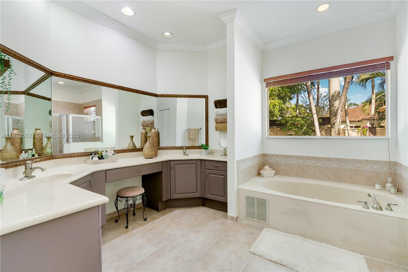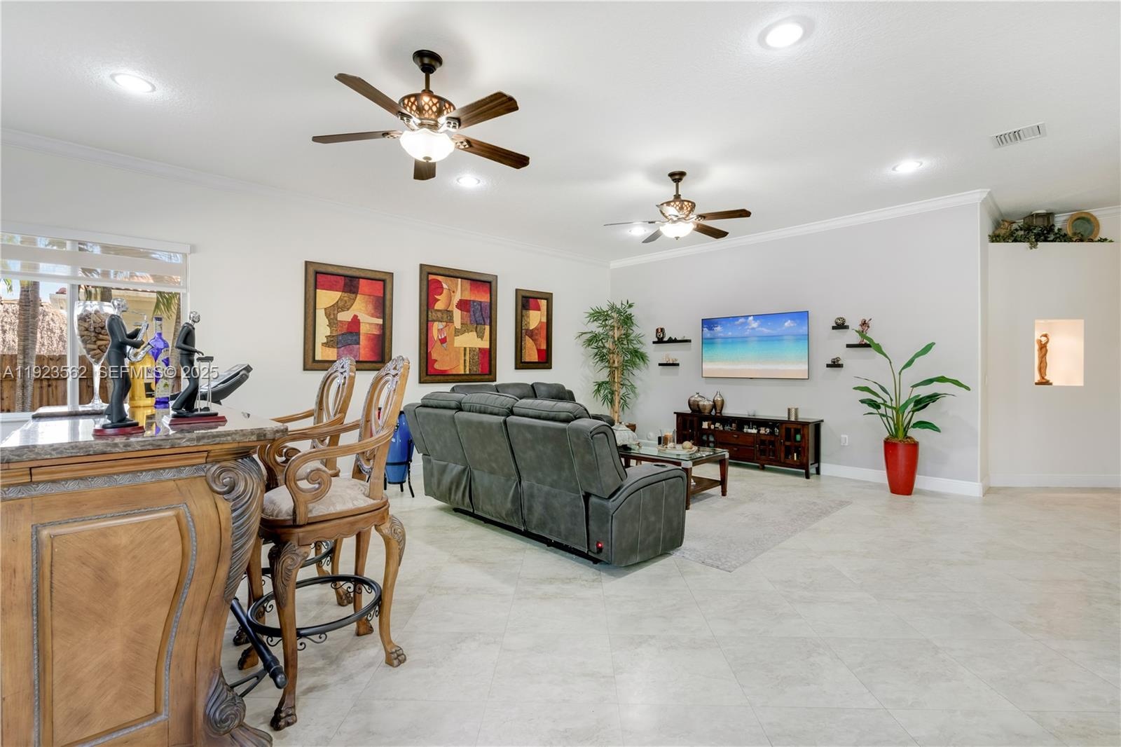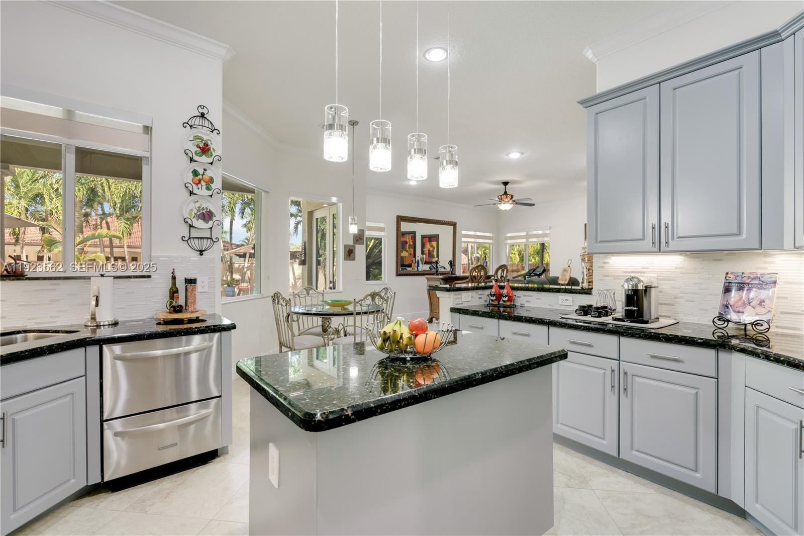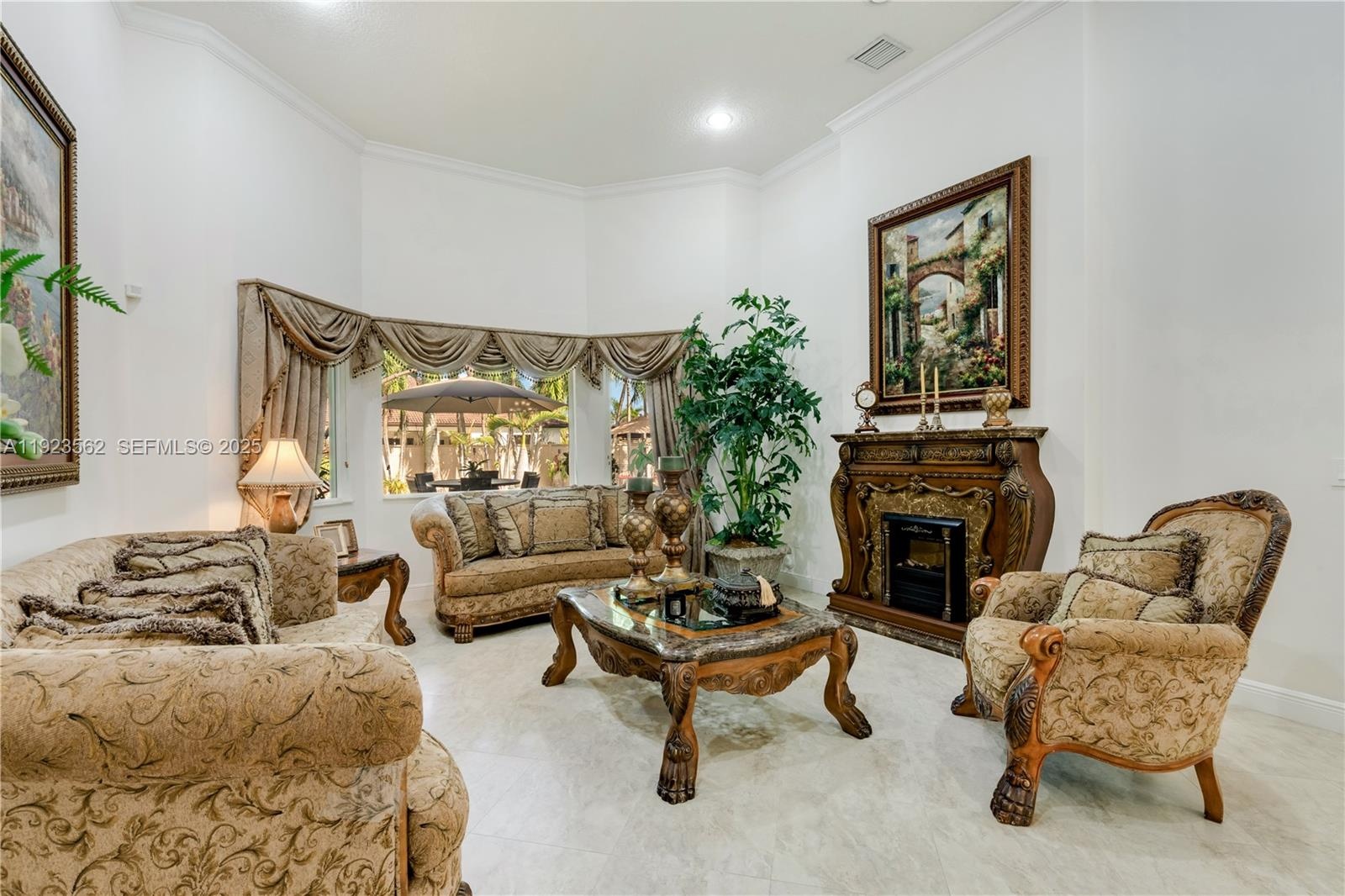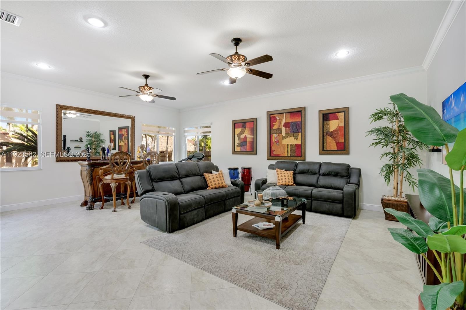 Beautiful home situated on a spacious 16,025 s/f lot featuring a circular driveway, porte cochere, and a 2-car garage. This property offers 4 bedrooms and 3 bathrooms across 4,579 total s/f, plus an additional 1/1 apartment. Upgrades include impact windows and doors, porcelain floors, and a kitchen equipped with granite countertops and wood cabinetry. The home also features 2 central A/C units and 4 mini-splits. Enjoy a heated saltwater pool with spa in a family-friendly neighborhood. No HOA.