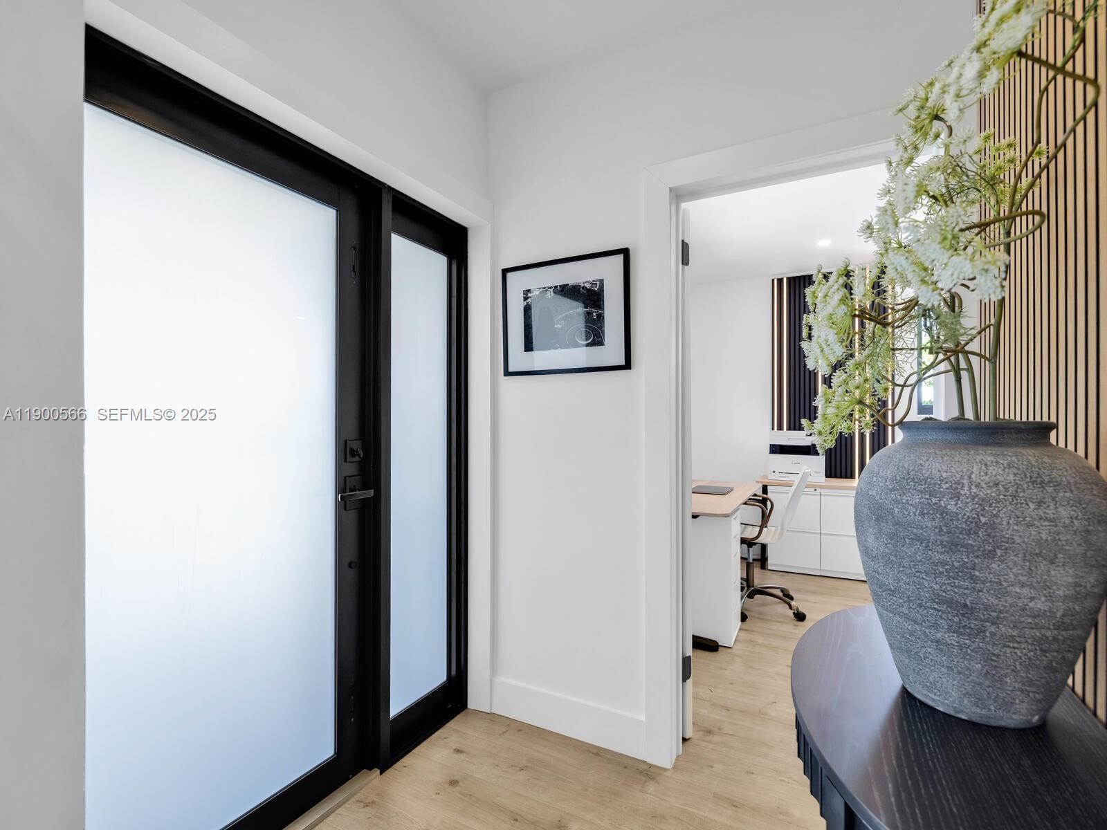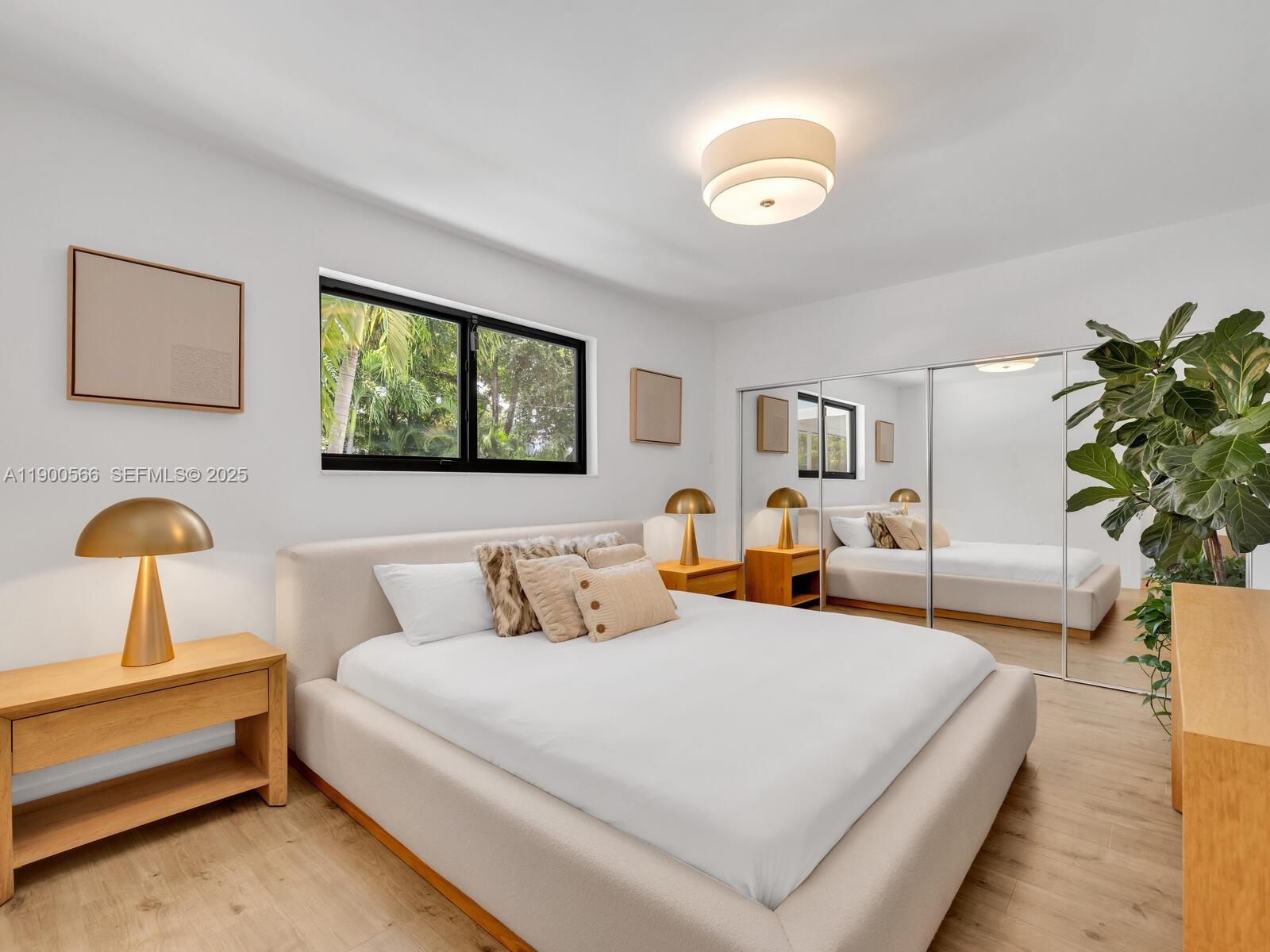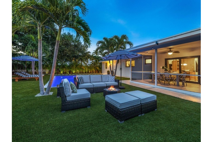 Tucked away behind a stately privacy hedge is Biscayne Park’s best kept secret— a just-renovated midcentury pool home retreat, dripping in high-end, luxe modern design. Welcome to Silver Palms! Enjoy fantastic resort-style living, complete with: open-flow living and dining; bright new eat-in quartzite waterfall kitchen with coffee station and high-end appliances; wide plank light oak wood floors; two double en-suite primary bedrooms; new modern designer baths; custom wood-slat paneling details; updated electrical, lighting, water heater, impact windows-doors; and premier tropical rear gardens with 30’x15' chilled-heated lap pool, Trex and porcelain decks, premium turf grass, and a beautiful screened-in porch. All with a spacious conversion-ready two-car garage and plenty of guest parking.