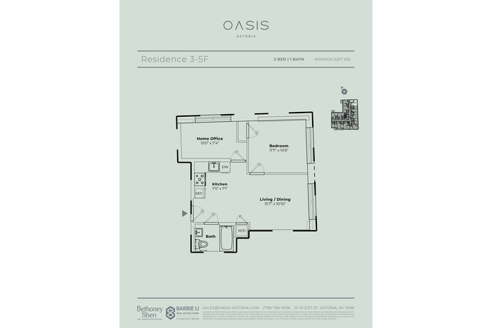 Experience modern sophistication and timeless design at Oasis Astoria. This impeccably designed 2-bedroom, 1-bathroom residence with home office showcases warm wood finishes, sleek stone accents, and soaring ceilings that create an inviting and refined ambiance. The chef-inspired kitchen is a true highlight, featuring a fully vented hood range, fully integrated high-end Bosch appliances, including a 5-burner gas range oven, refrigerator, and dishwasher, all enhanced by elegant quartz countertops and backsplashes. Thoughtful touches include in-unit stacked Bosch washer and dryer, a keyless smart lock entry, radiant heated bathroom floors, smart toilets, custom LED vanity mirrors, and many units with rare and luxurious 4-piece spa-like baths, elevating the home’s unique appeal.