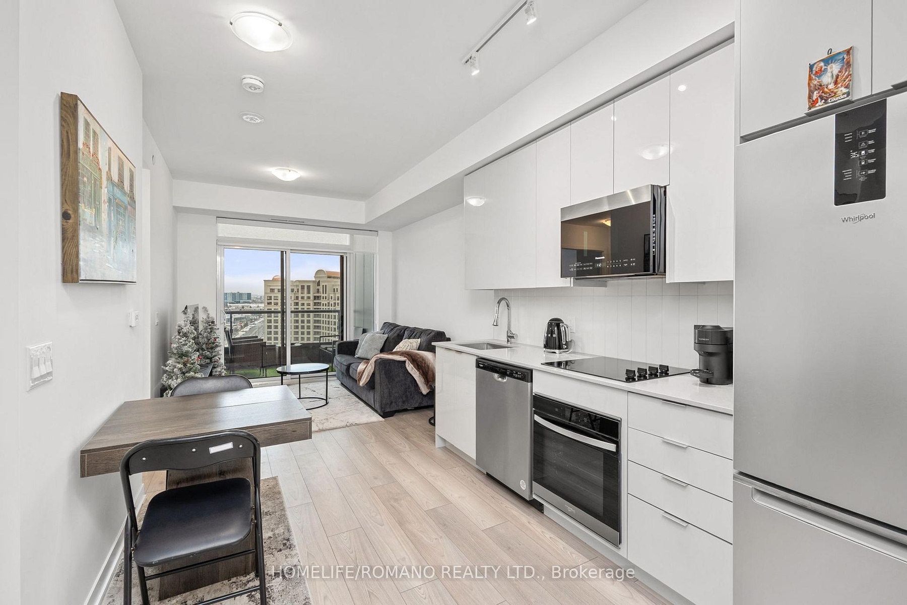 This is your Opportunity to Lease this bright and beautifully designed 1 + 1 bedroom suite at Abeja District 3, offering 550 sq ft of modern open concept living with 9ft ceilings and a stunning, unobstructed north-facing view. The open-concept kitchen features contemporary cabinetry, stone countertops, brand new stainless steel appliances, and a functional dining area. The spacious living room walks out to a private balcony where you can enjoy peaceful skyline views all day long! The den provides the perfect space for a home office, reading nook, or a second bedroom for guests. The bedroom includes a large window and generous closet space. Smooth ceilings, wide-plank flooring, in-suite laundry, and modern finishes throughout create a clean, and inviting atmosphere. Located in Vaughan's growing Jane & Rutherford hub, you are steps from Vaughan Mills Malls, parks, top-rated restaurants, and minutes to Vaughan Bus Terminal, Vaughan Metropolitan Centre Subway, Smart Centre, Smart VMC Bus Terminal, Highway 400/407., IKEA, Walmart, YMCA, Canada Wonderland, Cortellucci Vaughan Hospital, Rutherford GO Station, and so much more. Exceptional building amenities include a fitness centre, yoga room, concierge, co-working lounge, party room, and beautifully landscaped outdoor space.