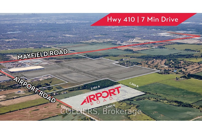 Unique ownership opportunity within a core GTA West market to own a shovel-ready site. Rapidly growing industrial submarke.t Direct connectivity to 400-series highway network. 60 acres available, 33 acres developable. The site is surrounded by world class occupiers and s located in an amenity rich area with an access to abundance of labour. Construction and development management are available.