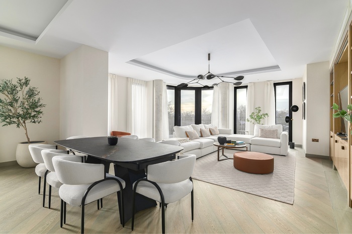 Created by award-winning architects Fenton Whelan, this residence epitomizes contemporary sophistication. Expansive floor-to-ceiling windows throughout capture abundant natural light and frame breathtaking vistas of Hyde Park, while the fluid architectural lines seamlessly integrate with the surrounding parkland. Impressive 9-10ft ceiling heights in principal rooms enhance the sense of space and grandeur.