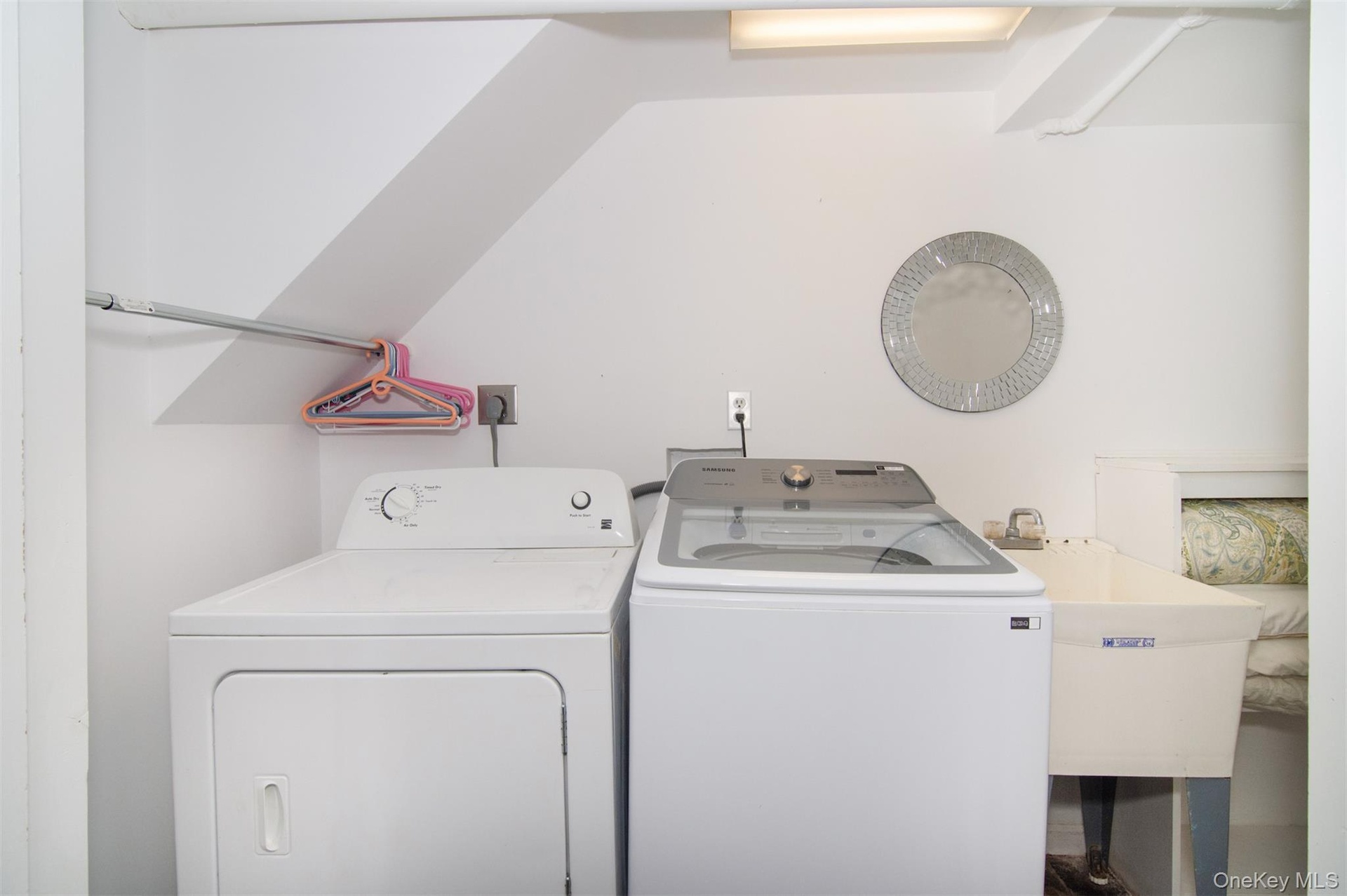 Upstairs, the primary bedroom offers four closets and an en-suite bath. The second bedroom features a private terrace with sunset views and a cedar closet, while the third bedroom includes a walk-in closet with space for a study. A full hall bath completes this level. The finished walk-up attic (additional 663sq. ft) provides a versatile open-plan area with heating and cooling, new wall-to-wall carpeting, and a large walk-in closet—ideal as a fourth bedroom, playroom, or media room.