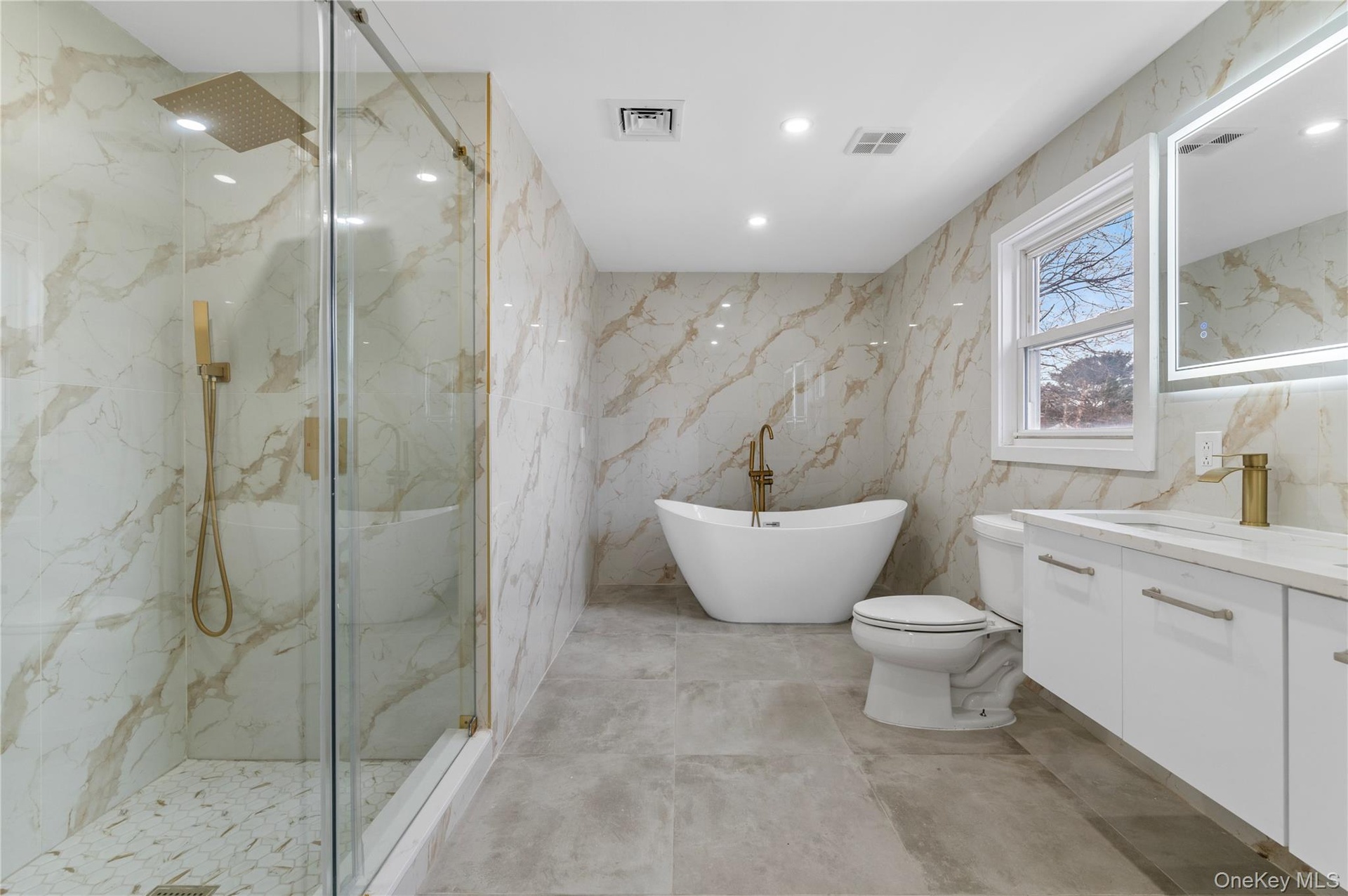 SIMPLY STUNNING!! This more than 3000 sqft living space plus addisional finished basement, meticulously gut-renovated residence is truly better than new, offering the perfect blend of comfort living and modern luxury. Step through the welcoming front porch into a sunlit foyer instantly setting the tone for the sophistication that defines the rest of the home. The main level features a beautifully open layout connecting the inviting living room, formal dining area, and a chef’s kitchen outfitted with top-of-the-line appliances with an 8 feet long center island. Just off the kitchen, a cozy breakfast nook overlooks the serene backyard and opens to a brand-new deck—ideal for morning coffee or effortless outdoor entertaining. Two spacious bedrooms and a stylish full bath complete the first floor, offering flexibility for guests or multigenerational living. Upstairs, discover three generously sized bedrooms, including a luxurious primary suite that serves as a true private retreat. The spa-inspired en-suite bath features a soaking tub, double vanity, and separate shower, accompanied by a walk-in closet to complete the sanctuary. Two additional spacious two en-suites complete the upper level, offering comfortable accommodations for your family. The fully finished basement provides outstanding flexibility for modern living and includes a beautifully bathroom—perfect for recreation, work, or guests. Outside, the fully fenced property provides a private, tranquil backdrop with an enormous deck. Additional highlights include a brand-new asphalt roof, new 6-inch glossy gutters, fully paid-off solar panels, 1 car plus garage with new driveway and high-end interior and exterior trim work, gas is avaiable—all contributing to the overall sense of thoughtful craftsmanship and refined elegance. Located just steps from the Willits Elementary School, H.B. Middle School, the library, and shopping, this home is truly a rare find. With its custom finishes, thoughtful design, and unmatched comfort, it offers a lifestyle of sophistication, convenience, and effortless living.