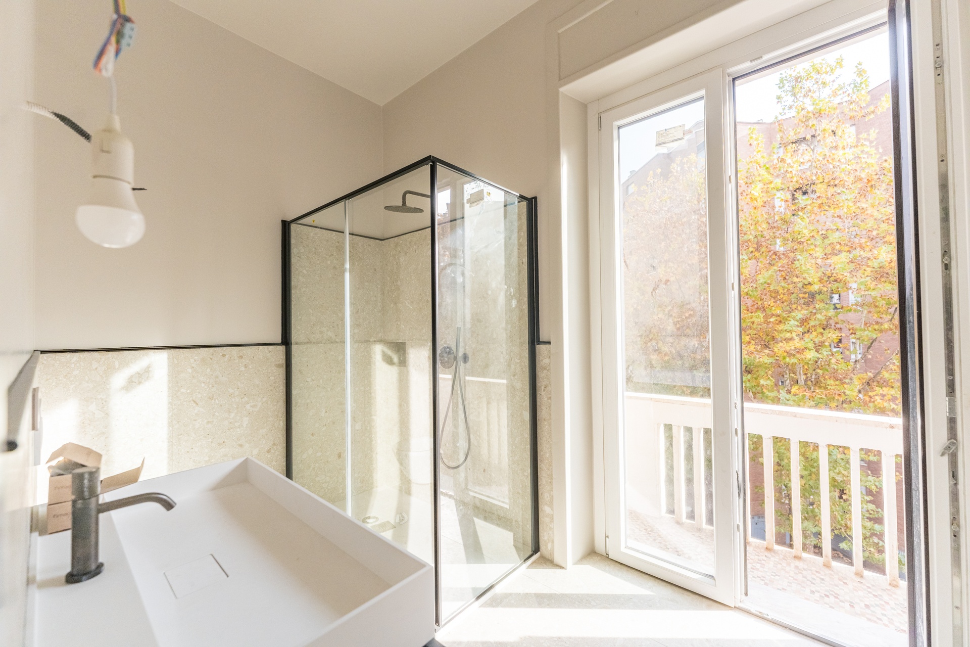 In the heart of NoLo (North of Loreto) – one of Milan’s most vibrant and up-and-coming districts – this beautifully renovated two-bedroom, two-bathroom apartment is located on the third floor of a charming early 20th-century building, with elevator and well-maintained common areas