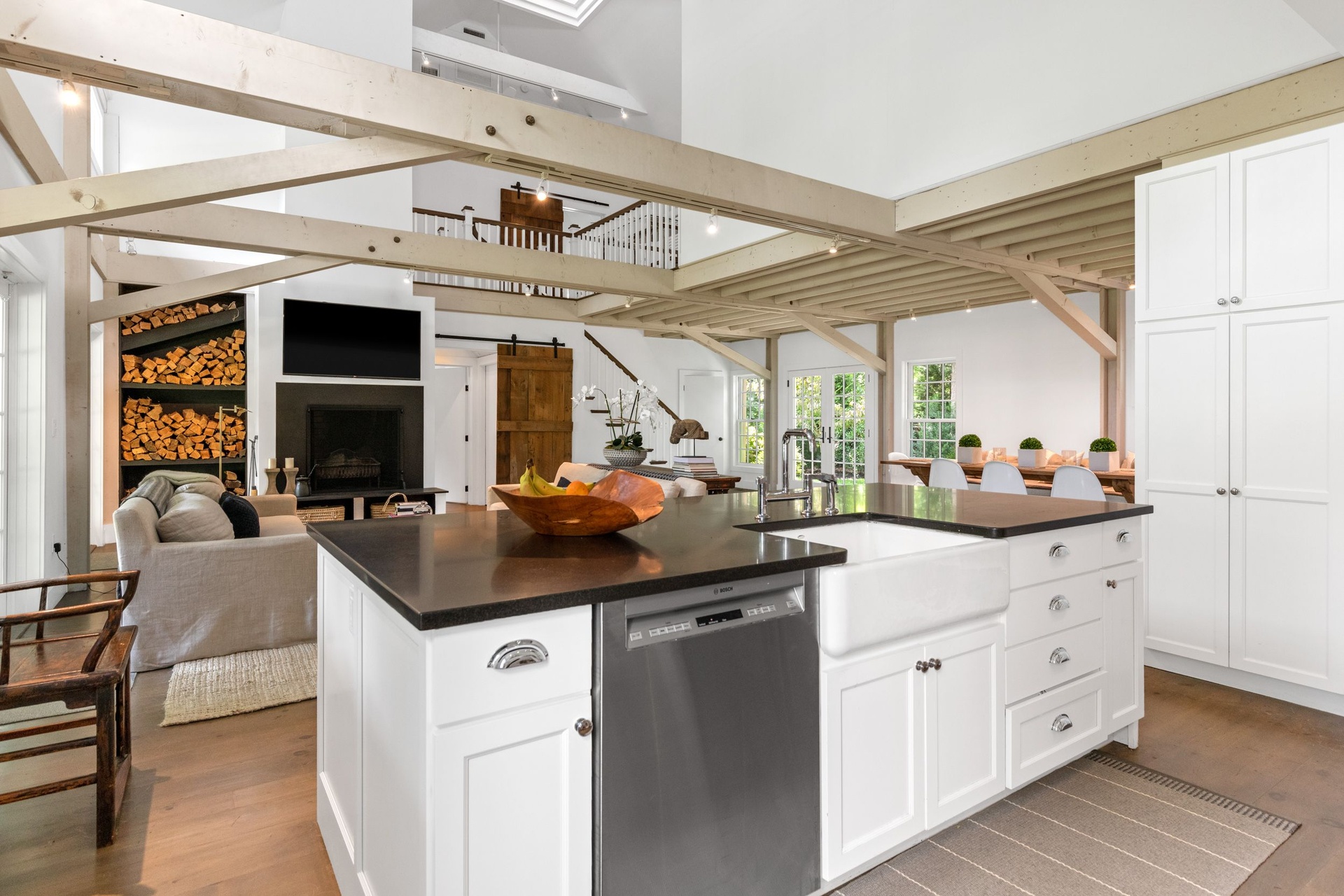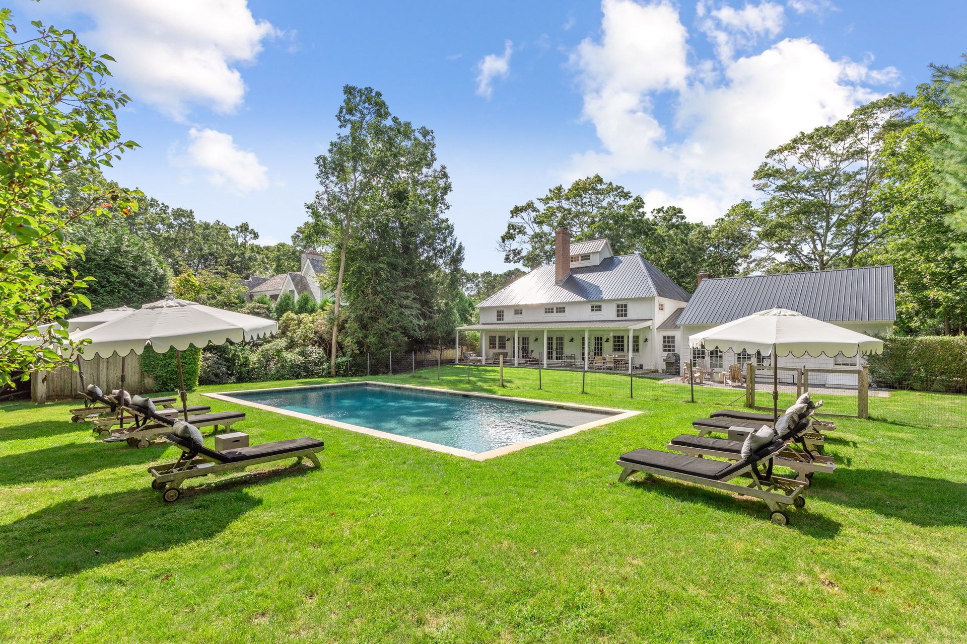 Rental Registration #: 18-15 Gorgeous Vermont style barn 6 bedrooms and 5.5 baths. Dynamic great room with two story vaulted ceilings, 3 fireplaces, 1st floor master, Brand new gourmet kitchen featuring wolf and subzero. Brand new gunite pool and amazing landscaping and view of windmill over the hedge. Perfect location on a quiet cul-de-sac street in Wainscott South - close to shops, restaurants, Georgica Pond , farm stand and Wainscott beaches, and Jitney. Be the envy of your friends and the favorite host of the season!. Ask about pricing in May as well!