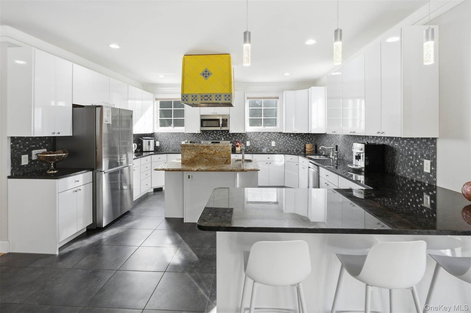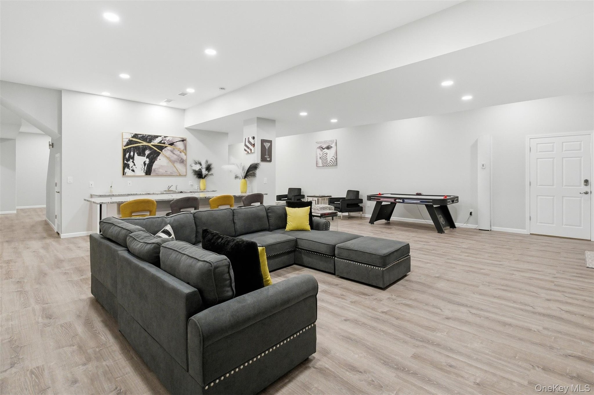 This Residence is perhaps THE LARGEST non-waterfront property in Hampton Bays! Offering over 5,100 Square Feet of Luxurious Living Space, featuring 5 Bedrooms, 6 1/2 Baths, a Fully-Finished Lower Level, and a Spacious Guest Suite above the 3-Car Garage, this home incorporates just about everything you could imagine and desire in a property, within a resort-like setting! The Residence boasts Water Views of the nearby Marina and glistening Peconic Bay, enhancing the natural beauty and setting of the property. From the moment you arrive through the private gated entrance, you will feel a sense of awe and tranquility, and know that this is a very rare and special place indeed! The entrance foyer is both grand and impressive, showcasing a stunning, Architectural double-curved staircase as a centerpiece of the home. On the right side is the Living Room, with a soaring 20 foot ceiling height, captivating your attention with its gorgeous stone fireplace and hearth, making any occasion there one to remember! On the opposite side of the Living Room, there is a Billiard's Room, which may also serve as an alternate formal Dining Room, as well as an adjoining Office/Bonus Room. The tastefully designed Chef's Kitchen, Breakfast Bar and Dining Room are situated toward the rear of the home, enveloped by a wall of glass sliders and windows, allowing for an abundance of natural sunlight, as well as wonderful views of the Pool, Patio, and Private, Landscaped Grounds. The home also features a Laundry Room and Full Bath on the First Floor, for added convenience, as well as Radiant-Heated Floors throughout. On the Second Floor, you will find 4 Guest Ensuite Bedrooms, as well as the Oversized Primary Ensuite, complete with a luxurious, sumptuous Bath and its own Juliet Balcony, overlooking the light-filled Living Room. There is also a convenient Sitting Room perfectly sited between all 5 Bedrooms, ideal for enjoying a morning cup of coffee with your favorite reading material, or simply catching up on your electronic devices. The Fully-Finished Lower Level is a Dream Come True and an Entertainer's Delight, with 3 separate Bonus Rooms, a Recreation Room, Wet Bar, Full Bath and ample Storage. Outdoors, the Beautiful Rear Yard features a Heated Gunite Pool with a stone Fire Pit on the surrounding Patio, a Pool House, and a fully-equipped outdoor Kitchen. Beyond the Pool area, lies another oversized Stone Patio and Bar, ideal for entertaining friends and family alike, while being surrounded by the mature Landscaping and 42 Acres of undeveloped, neighboring Land. Lastly, there is a Covered Breezeway spanning a section of the Patio leading from the Kitchen to the Loft above the 3-Car Garage, which serves well for outdoor dining and protection from inclement weather. The Finished Guest Suite above the Garage is a true bonus, offering over 900 square feet of Living Space! Simply stated, this unique Property offers Style, Space and a Lifestyle very difficult to find in today's market. The Residence is within close proximity to all that makes Hampton Bays so special: Wonderful Waterfront Restaurants, Unparalleled Ocean and Bay Beaches, World-Class Marinas, Plentiful Shops, as well as easy access to points further out east in the Hamptons, and the charming, laid-back atmosphere of the North Fork. Live the lifestyle you so richly deserve! Must See!