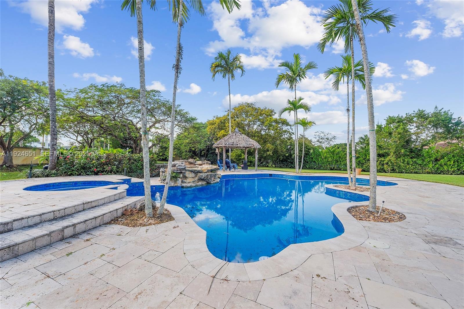 Set within the gated enclave of Emerald Springs Estates, this modern elegance is on the community’s largest lot with 1.5 acres of beautifully designed grounds, complete with a private sports court and resort-style outdoor living. Fully remodeled in 2021, the home offers 4 bedrooms and 4 bathrooms, each updated with new showers, designer fixtures, custom closets, and sleek white porcelain flooring that carries throughout the residence. The primary suite is a true retreat, with an oversized room highlighted by a Chanel-influenced walk-in closet with luxury designer flooring. The kitchen is equally impressive, reimagined with top-tier finishes and a complete collection of Fulgor Milano Italian appliances, including two refrigerators, a wine fridge, double oven, drawer microwave, built-in espresso machine, and an island beverage fridge. Bosch dishwasher, and new washer and dryer further enhance convenience. Three A/C units, a new water heater, and accordion shutters offer comfort and peace of mind. The pool and spa were fully renovated in 2021. Expansive outdoor space and room to personalize with an outdoor kitchen or additional amenities, this rare Davie estate blends luxury, privacy, and scale in a way few homes can match.