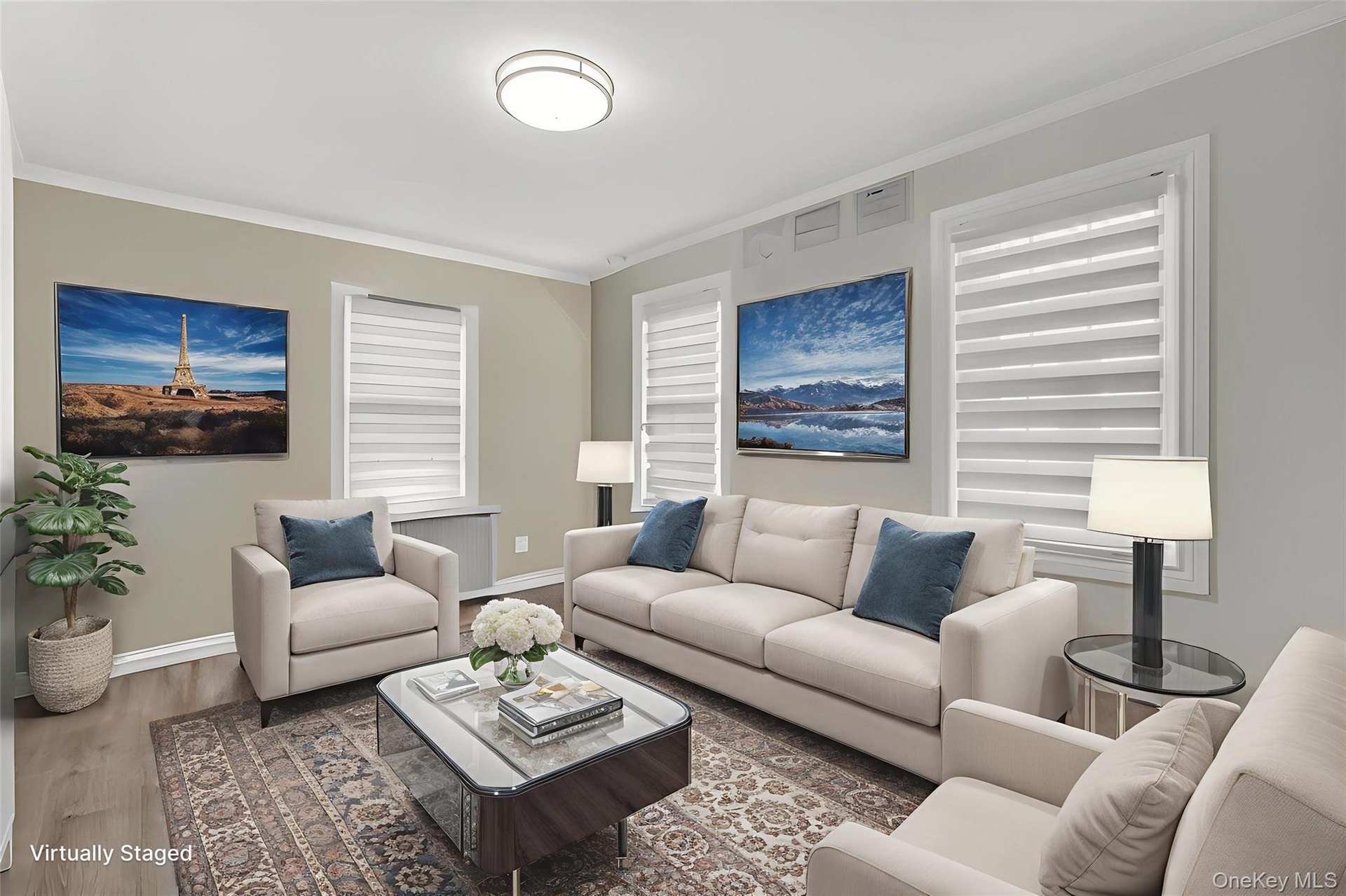 Step into a warm and inviting living room/dining room combo that flows seamlessly into a beautiful eat-in kitchen. This level also includes two spacious bedrooms and a modern full bathroom.