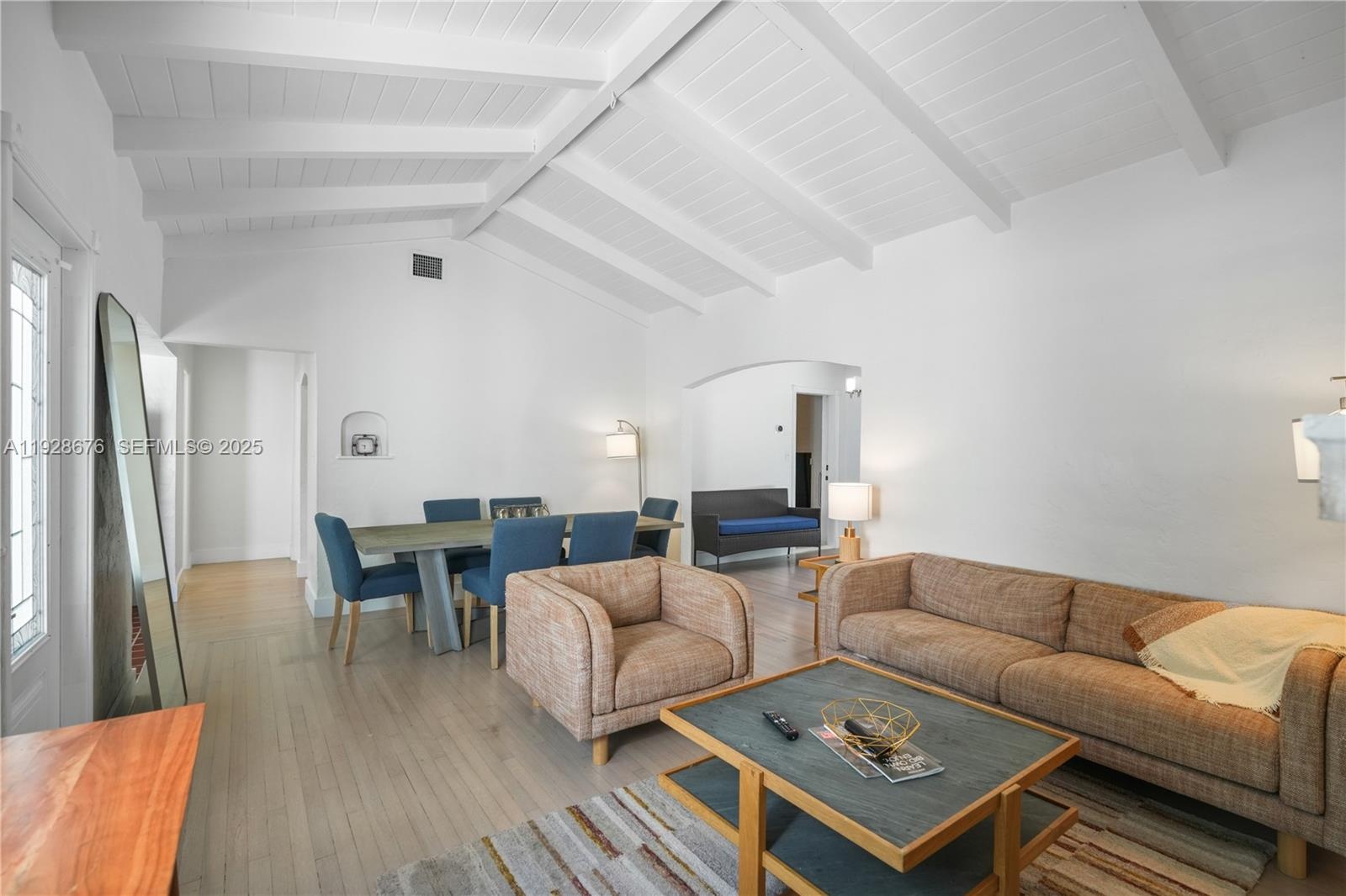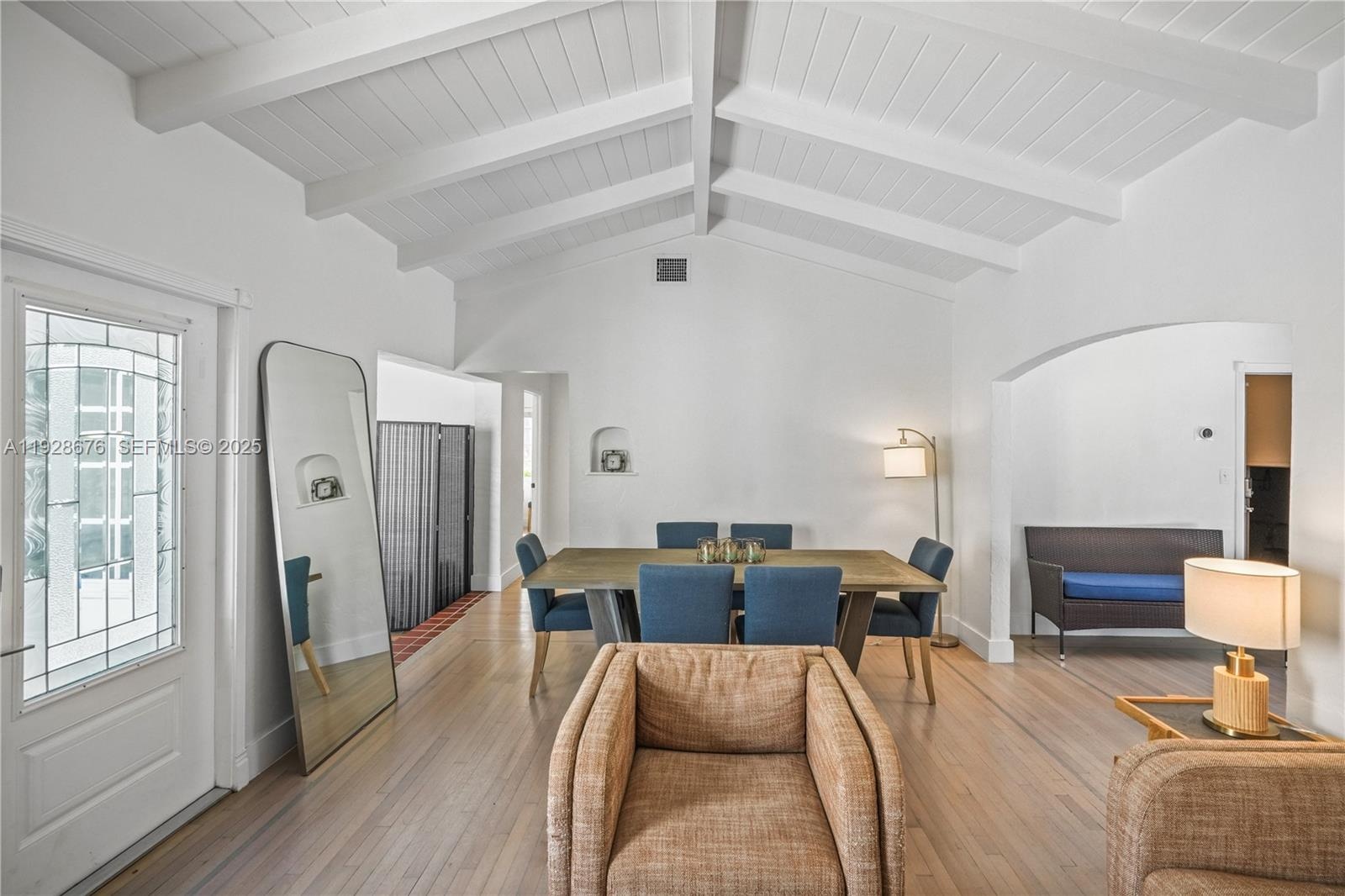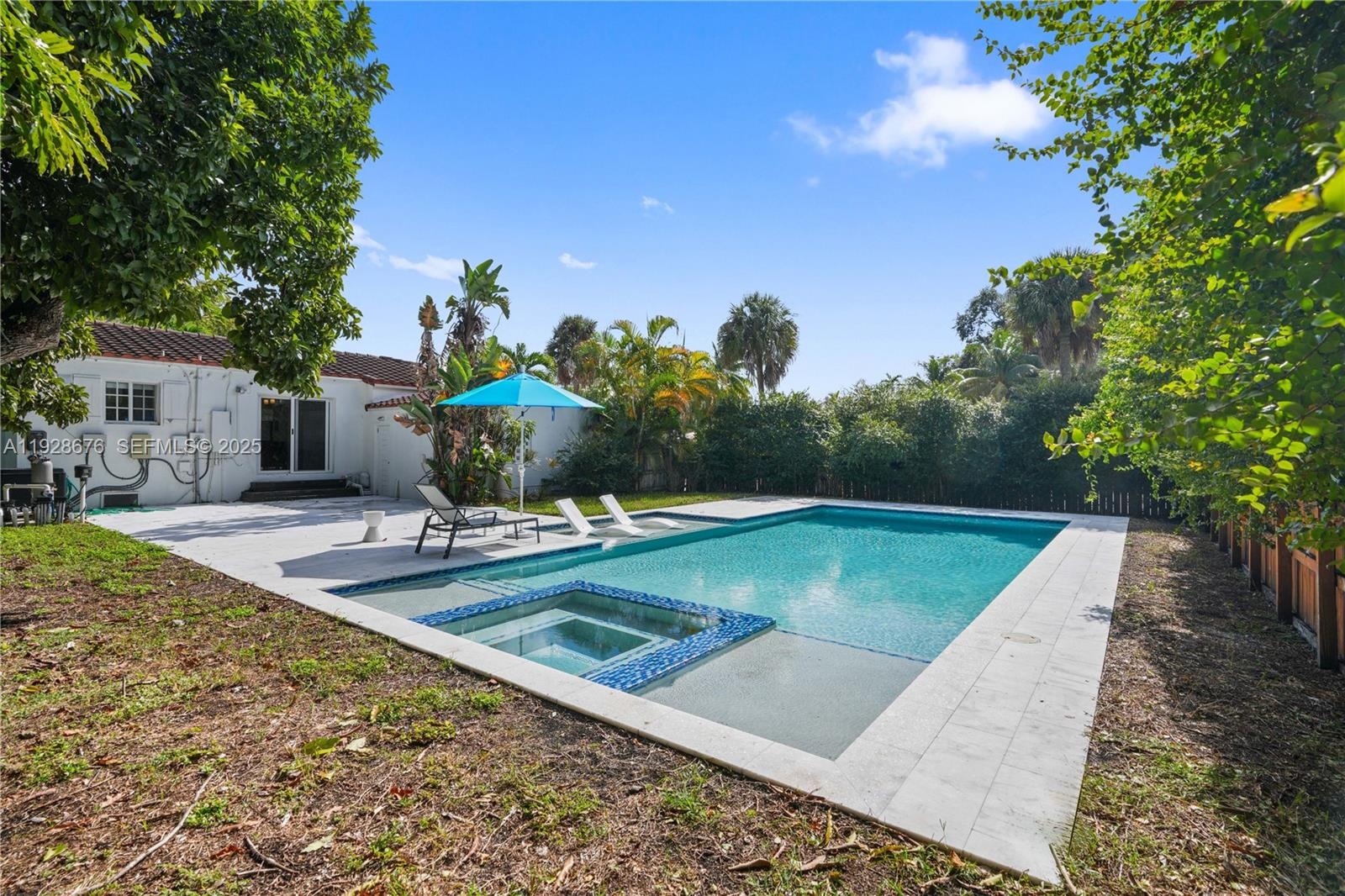 This Mediterranean-style corner home features full hurricane-impact windows and doors, including a new impact sliding glass door off the kitchen. Totaling approximately 1,875 sq. ft. including the garage, the property offers a newly built 20x40 heated pool with a digitally controlled Wi-Fi hot spa and a freshly painted exterior. Inside, the home showcases cathedral ceilings, abundant natural light, updated finishes, stainless steel appliances, and turnkey furnishings that may remain. The layout includes three spacious bedrooms—two with queen beds and one with a king—along with two modern full bathrooms with jet showers. Additional features include a dining area with seating for eight, an alcove currently used as an office and daybed space, and a decorative mantel-style fireplace. A two-car garage, an enclosed backyard, and a front yard complete this well-maintained property.