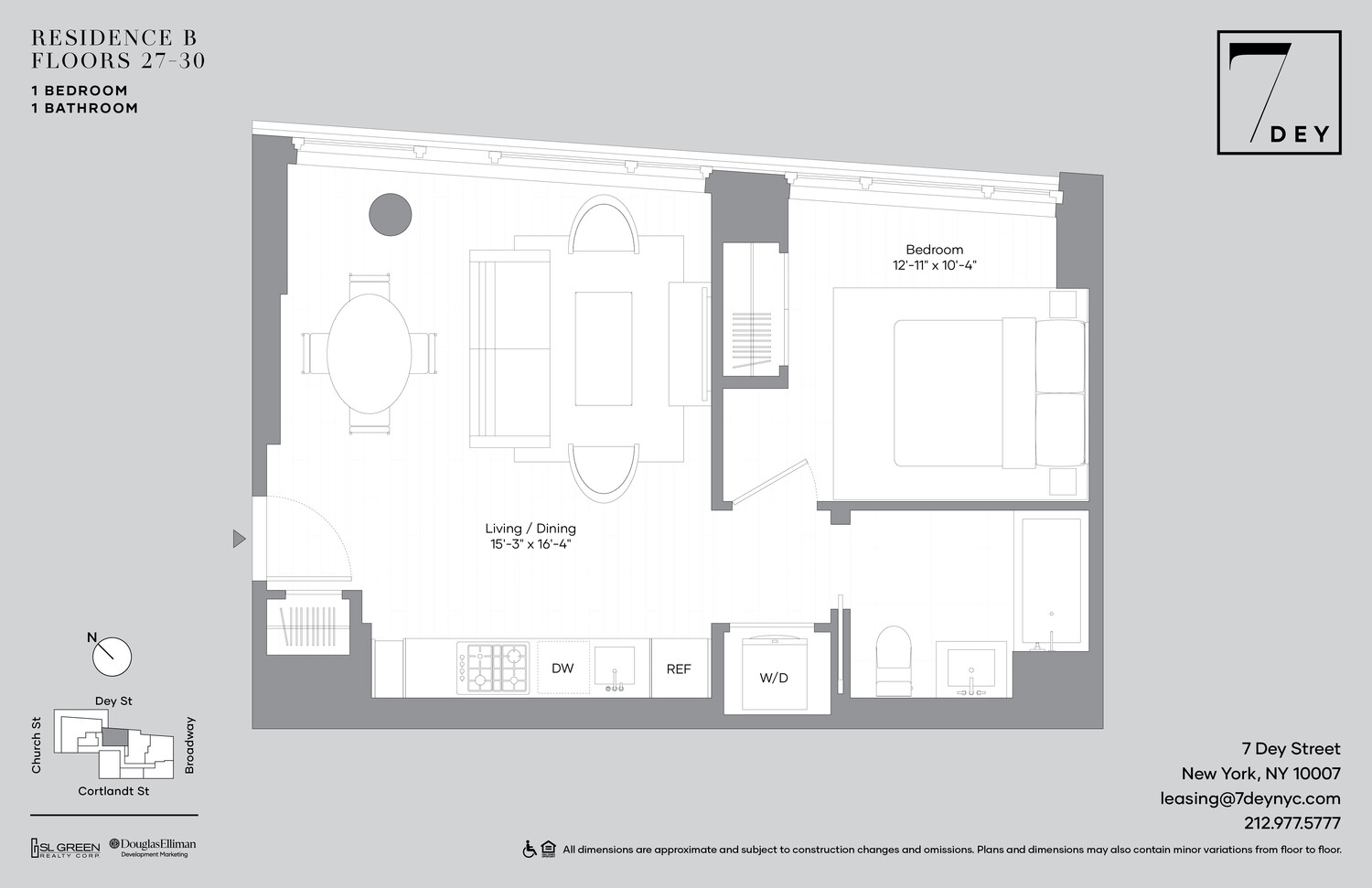 Perfectly positioned in the center of Downtown, 7 Dey offers stunning studio, one, two, and three bedroom luxury rental apartments with a select number of units featuring private terraces.
