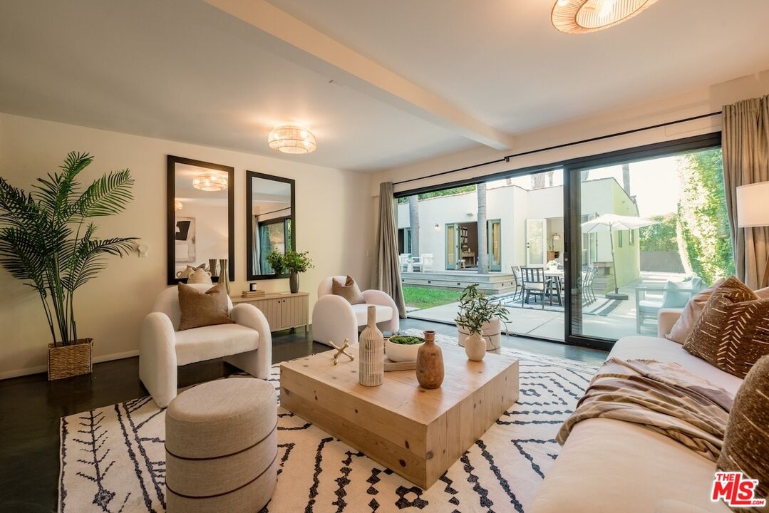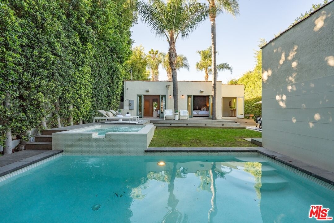 Welcome to 430 N Flores Street--"Flores," meaning flowers a fitting name for this exquisitely reimagined Spanish-modern retreat in the heart of Beverly Grove. Hidden behind a gated entry and soaring hedges, this serene haven instantly transports you to Montecito, where timeless 1930s architecture meets refined contemporary living. Coved and beamed ceilings, a sweeping picture window, and a classic fireplace anchor the home's romantic character, enhanced by a Crestron smart system offering centralized control of lighting, temperature, video security, and sound. The expansive chef's kitchen--complete with Thermador paneled appliances, an inviting eat-in island, and a wine fridge--flows effortlessly into a formal dining room ideal for intimate dinners or lively celebrations. Three spacious bedrooms, three beautifully appointed bathrooms, and a one-bedroom ADU embrace the quintessential indoor-outdoor California lifestyle. Off the living room, a private courtyard with a rare outdoor wood-burning fireplace creates a magical extension of the home--perfect for evenings under the stars. The enchanting backyard continues with lush landscaping, a sparkling pool and a wrapping Ipe deck designed for sun-soaked afternoons, al fresco dining, or unwinding in one of the many tranquil nooks. Situated on a quiet, tree-lined street, the property feels like a secluded oasis while offering exceptional walkability. You're moments from Melrose Place, West Hollywood, The Grove, the Farmers Market, the Beverly Center, and premier dining and boutique shopping. Whole Foods, Erewhon, and Trader Joe's are close by, and top local schools--including The Center for Early Education and Rosewood STEM Magnet--are just a short stroll away. 430 N Flores Street is more than a home--it's a lifestyle, a statement, and a muv toward everyday luxury in one of Los Angeles' most sought-after neighborhoods.