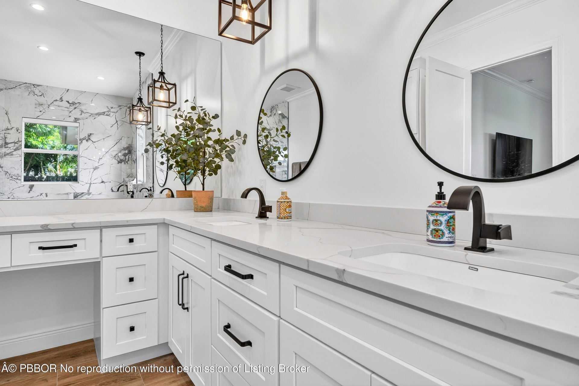 The gorgeous primary suite overlooks the pool and offers a custom walk-in dressing closet and a spa-inspired bathroom with dual sinks, a beauty bar, and an oversized shower-tub wet room. A dedicated laundry room adds everyday convenience, while three additional bedrooms and two beautifully finished full bathrooms provide flexibility for guests, family, or office needs.